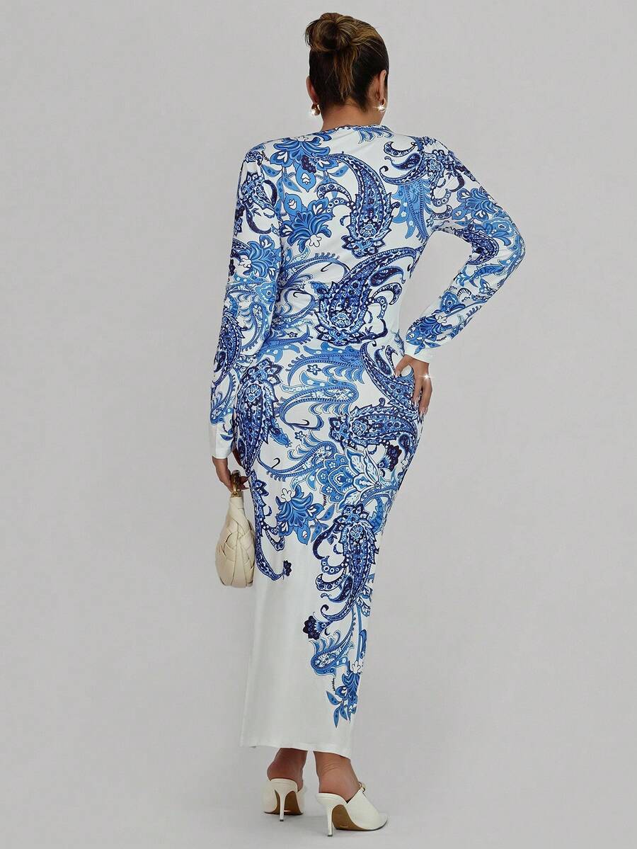 Xyvia vestido largo de manga larga con estampado elegante para mujer