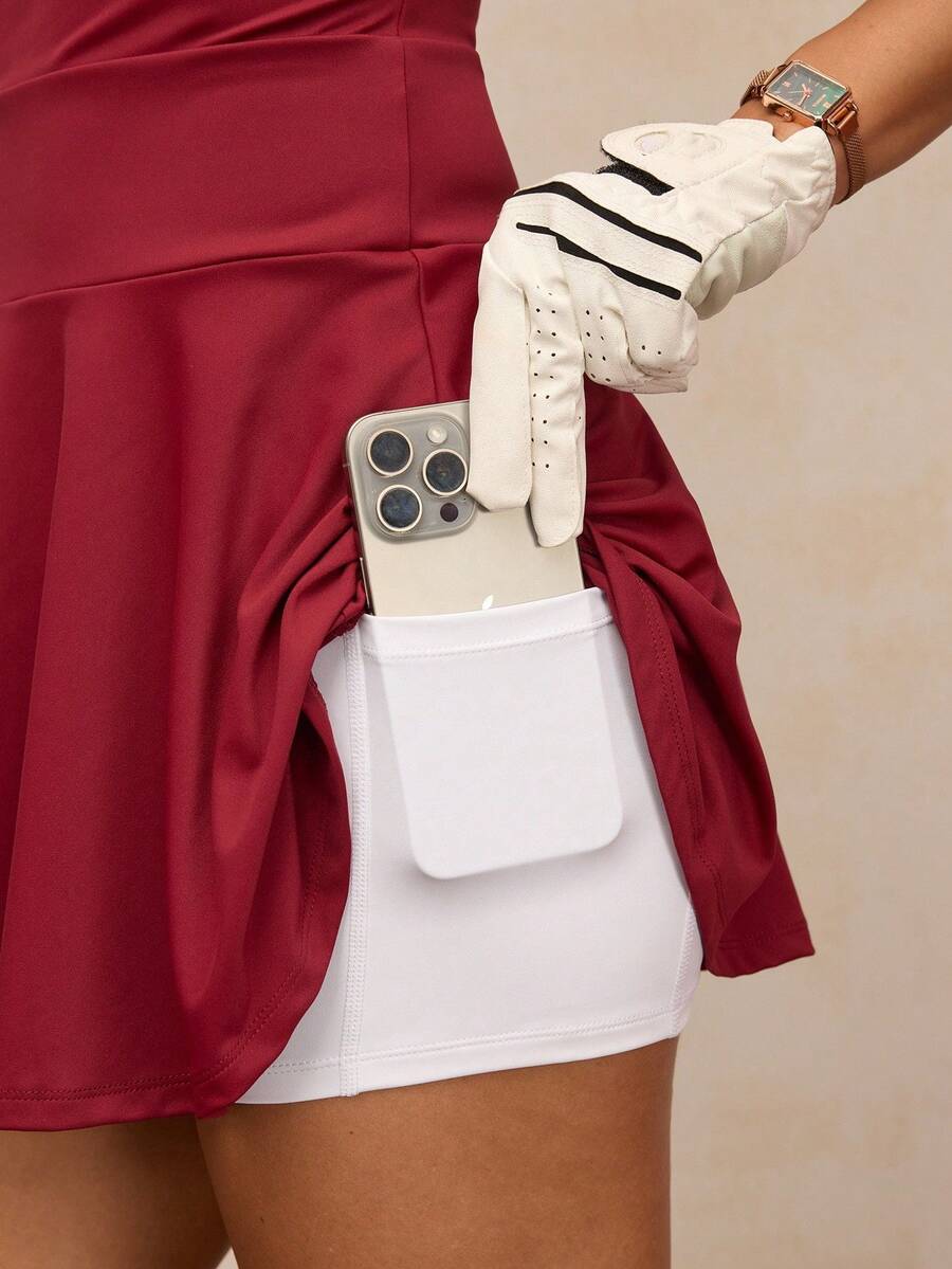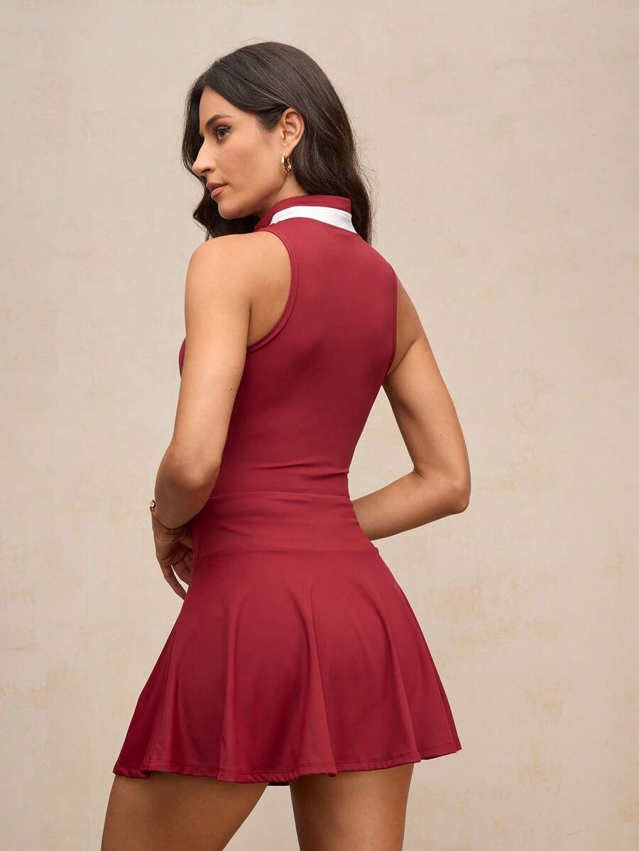Activina vestido deportivo de mujer con media cartera con cremallera, sin mangas, con bolsillos y de color contrastante