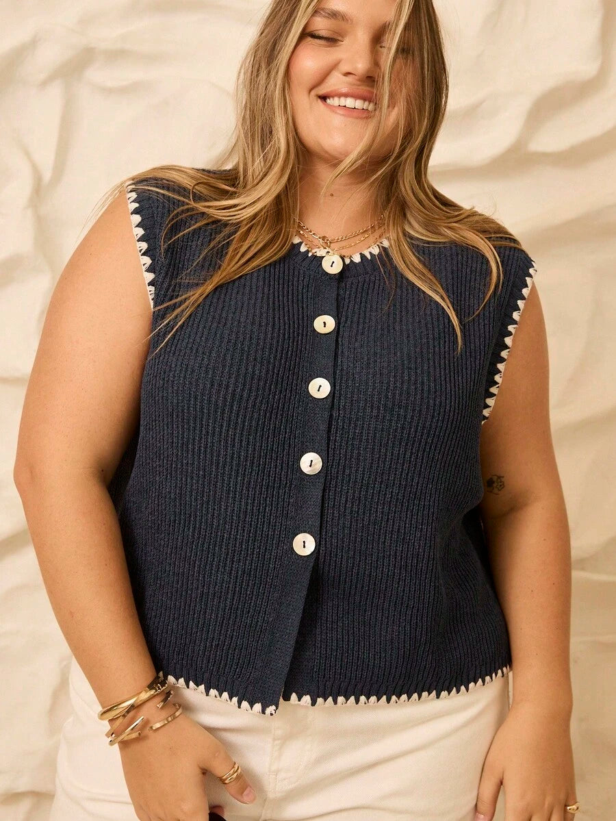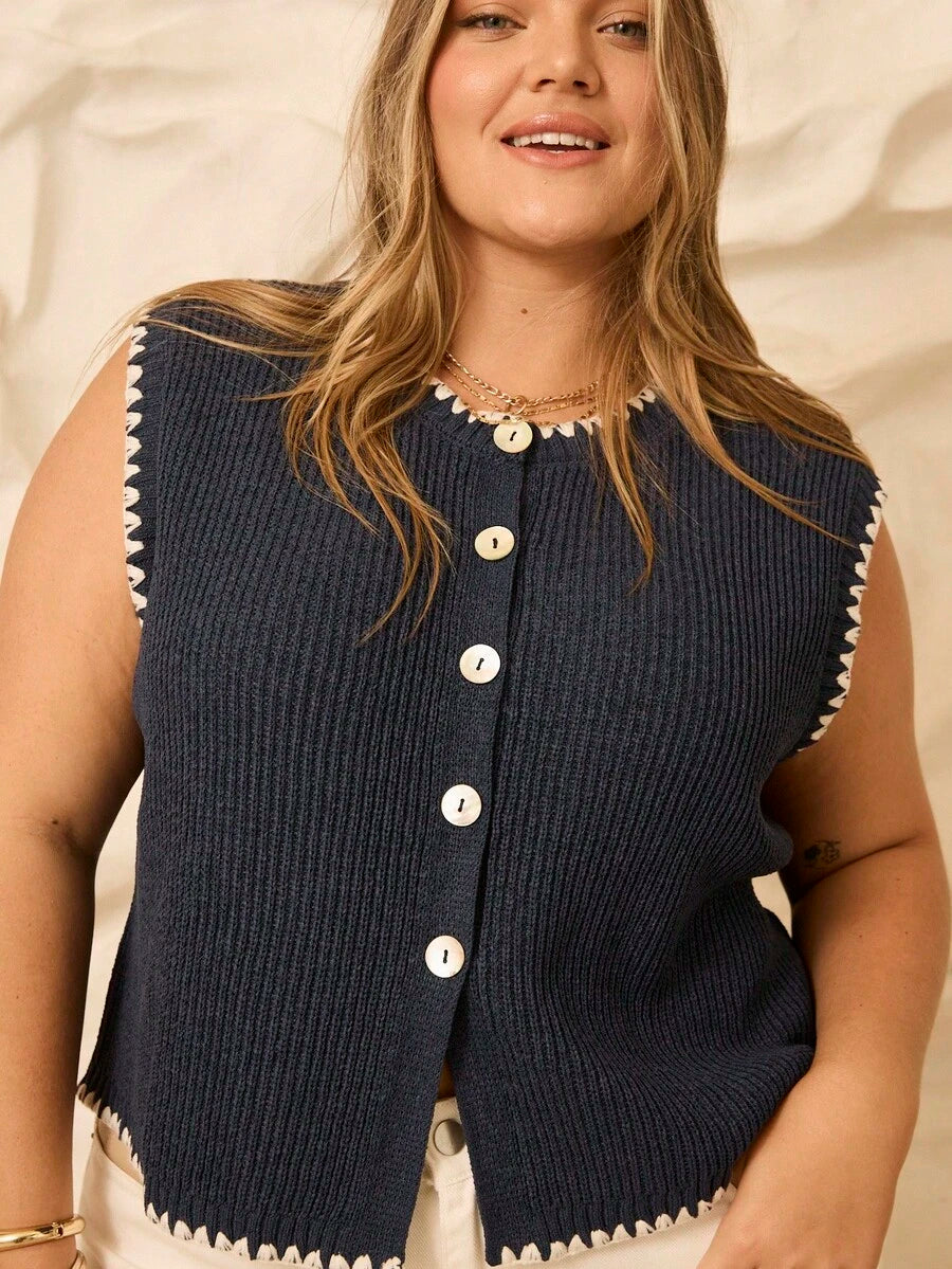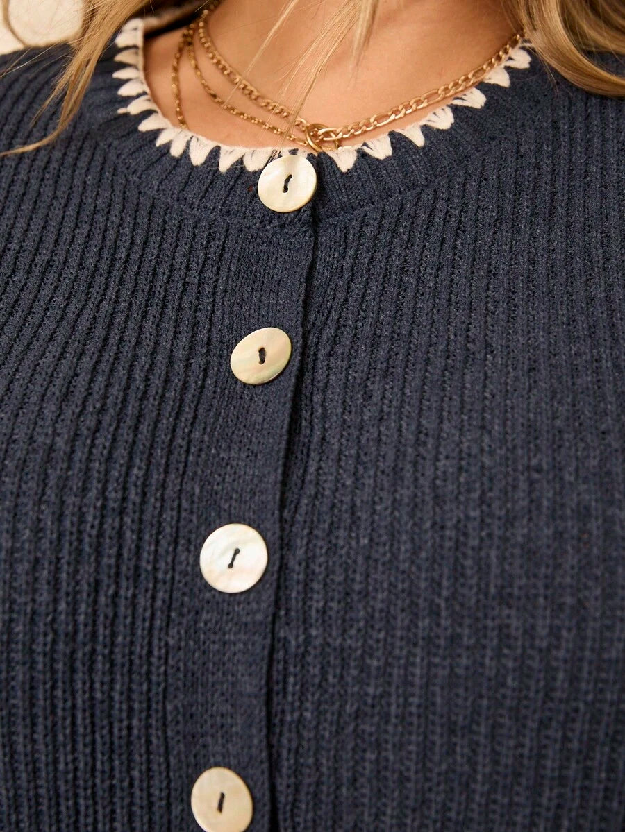 Aralina top casual de punto con botones y detalle de puntada de manta, estilo ribeteado stolkhom para otono e invierno