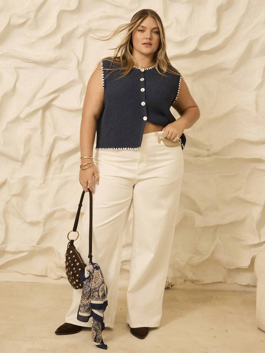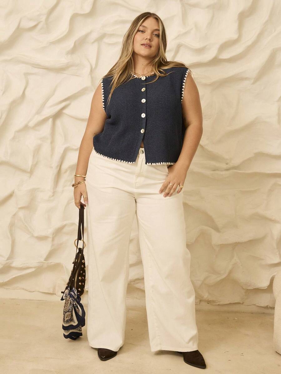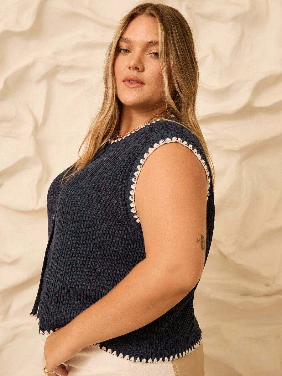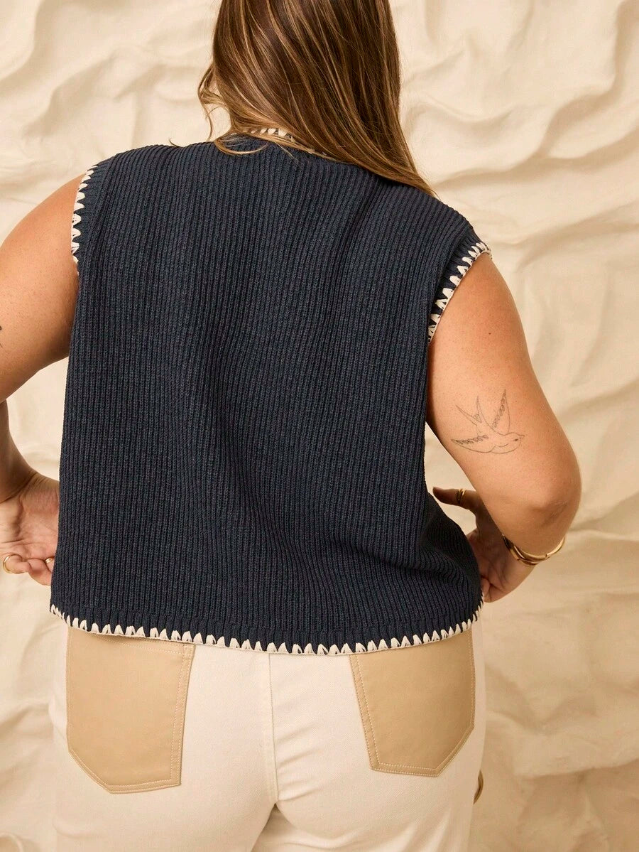 Aralina top casual de punto con botones y detalle de puntada de manta, estilo ribeteado stolkhom para otono e invierno