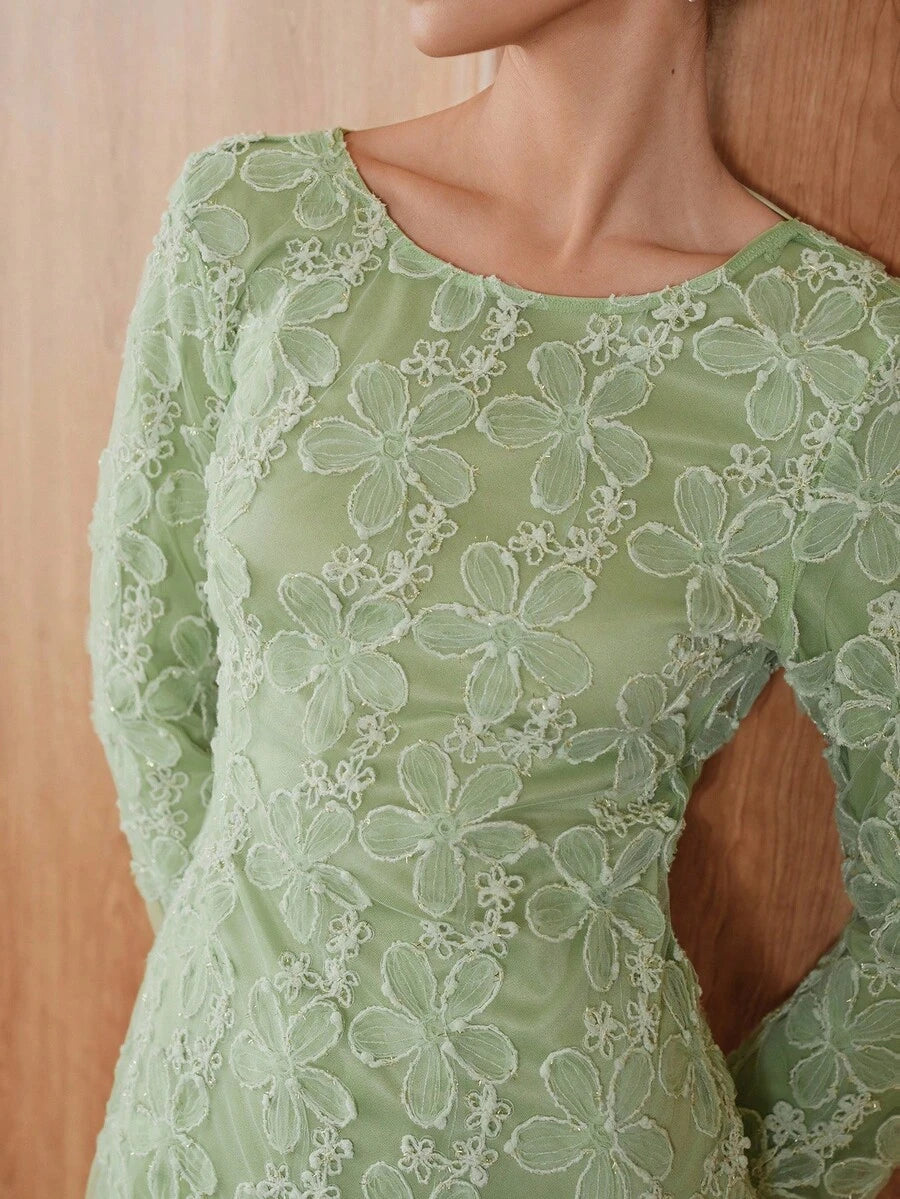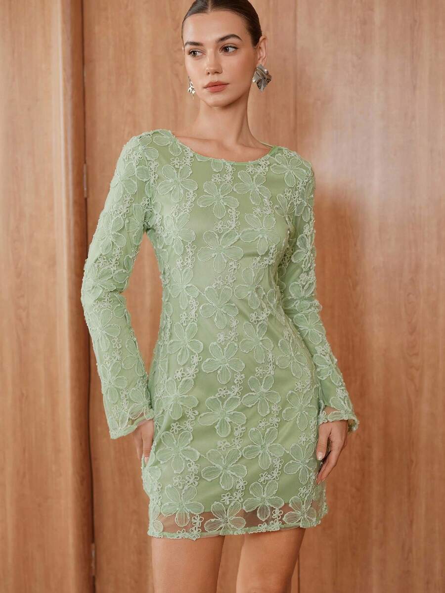 Vestido mini con espalda descubierta y mangas largas de encaje para mujer