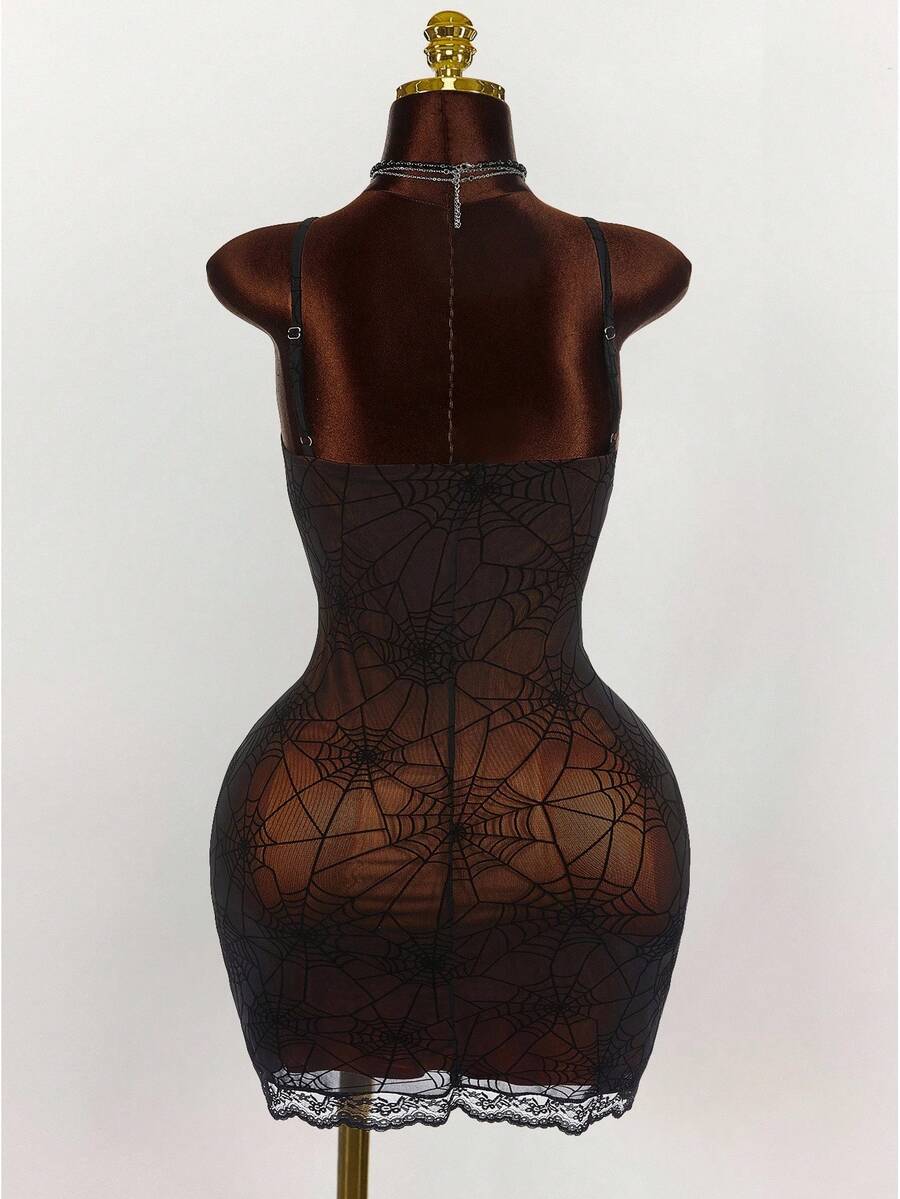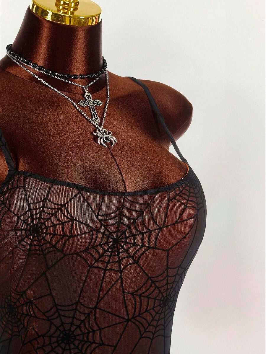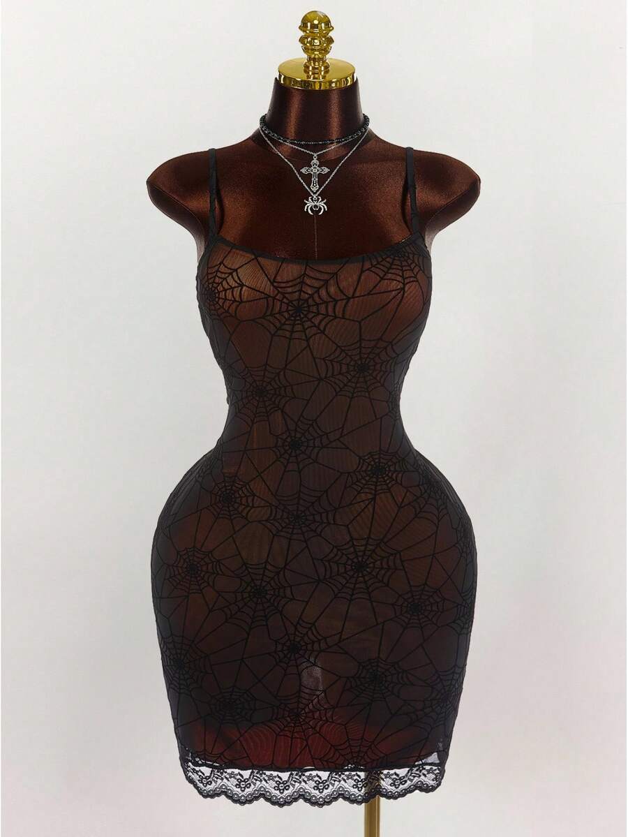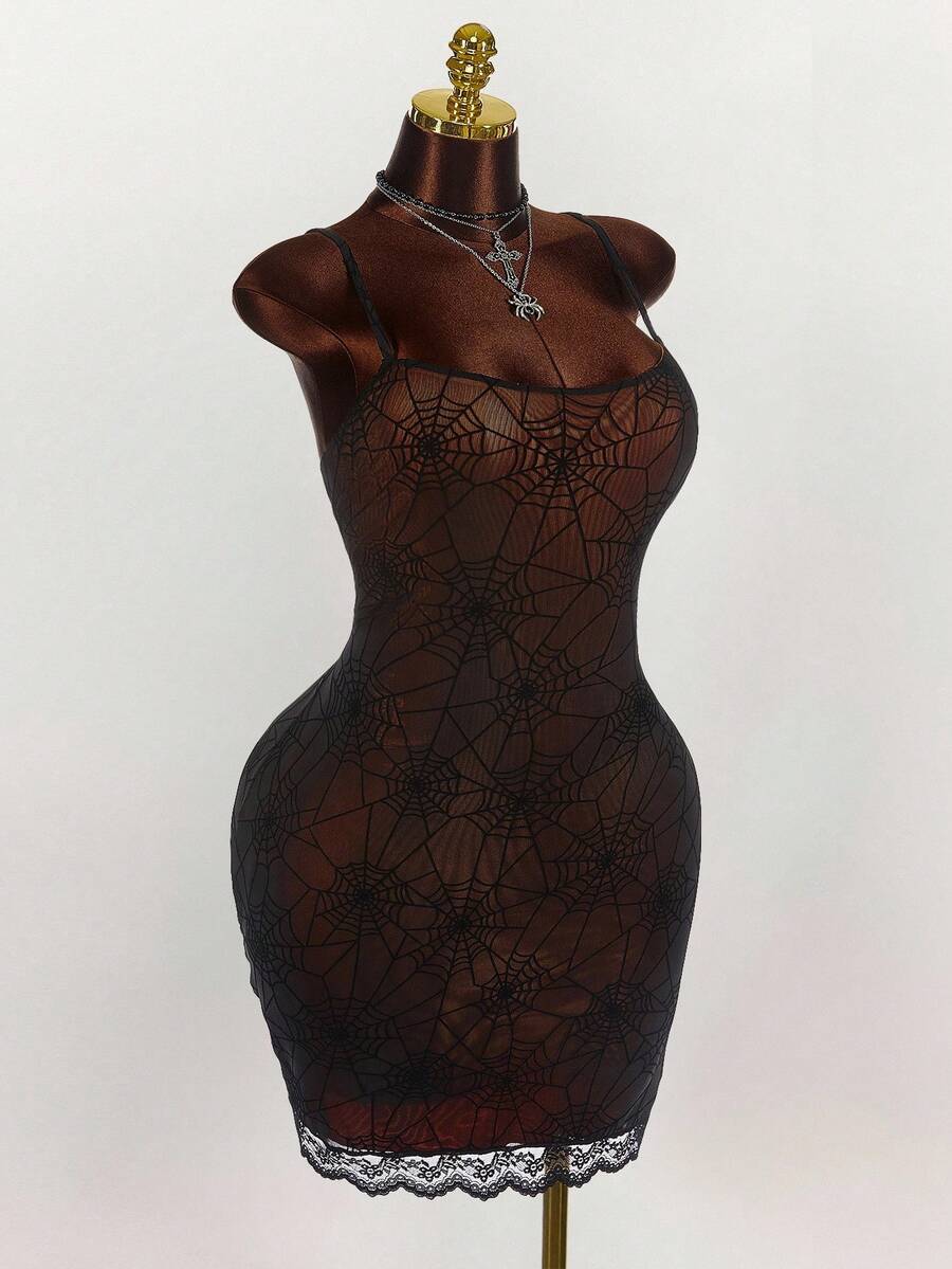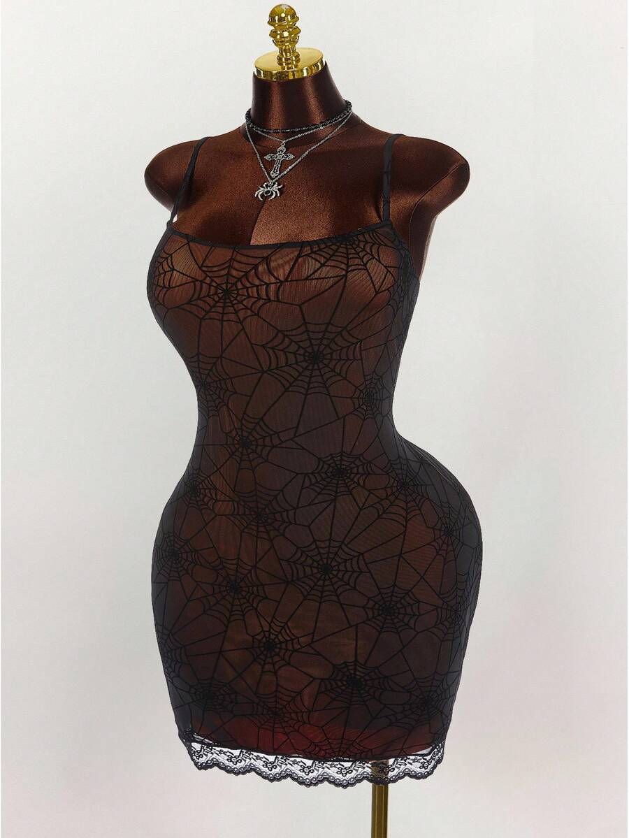 Amplova vestido de tirantes casual con estampado de telarana de encaje para mujer de talla grande