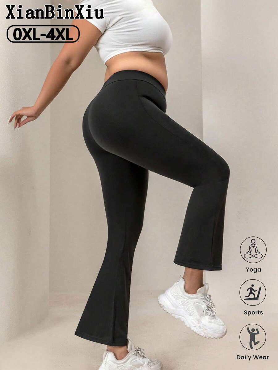 Xianbinxiu 1 pieza pantalones de yoga de talle alto y pierna acampanada para mujer de talla grande, de gran elasticidad, color negro, para otono/invierno