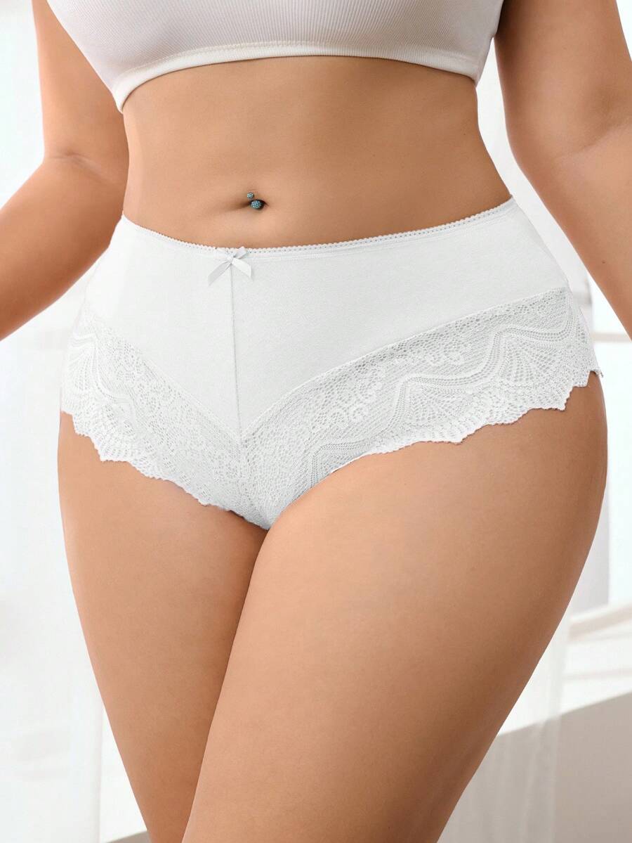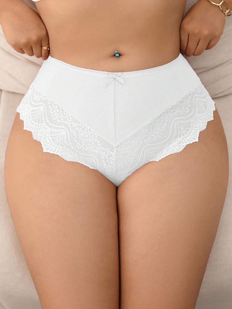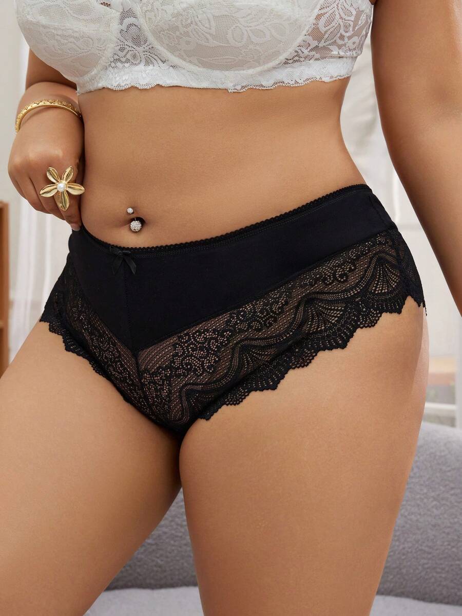 1 pieza panty elegante de talla grande con parches de encaje de unicolor