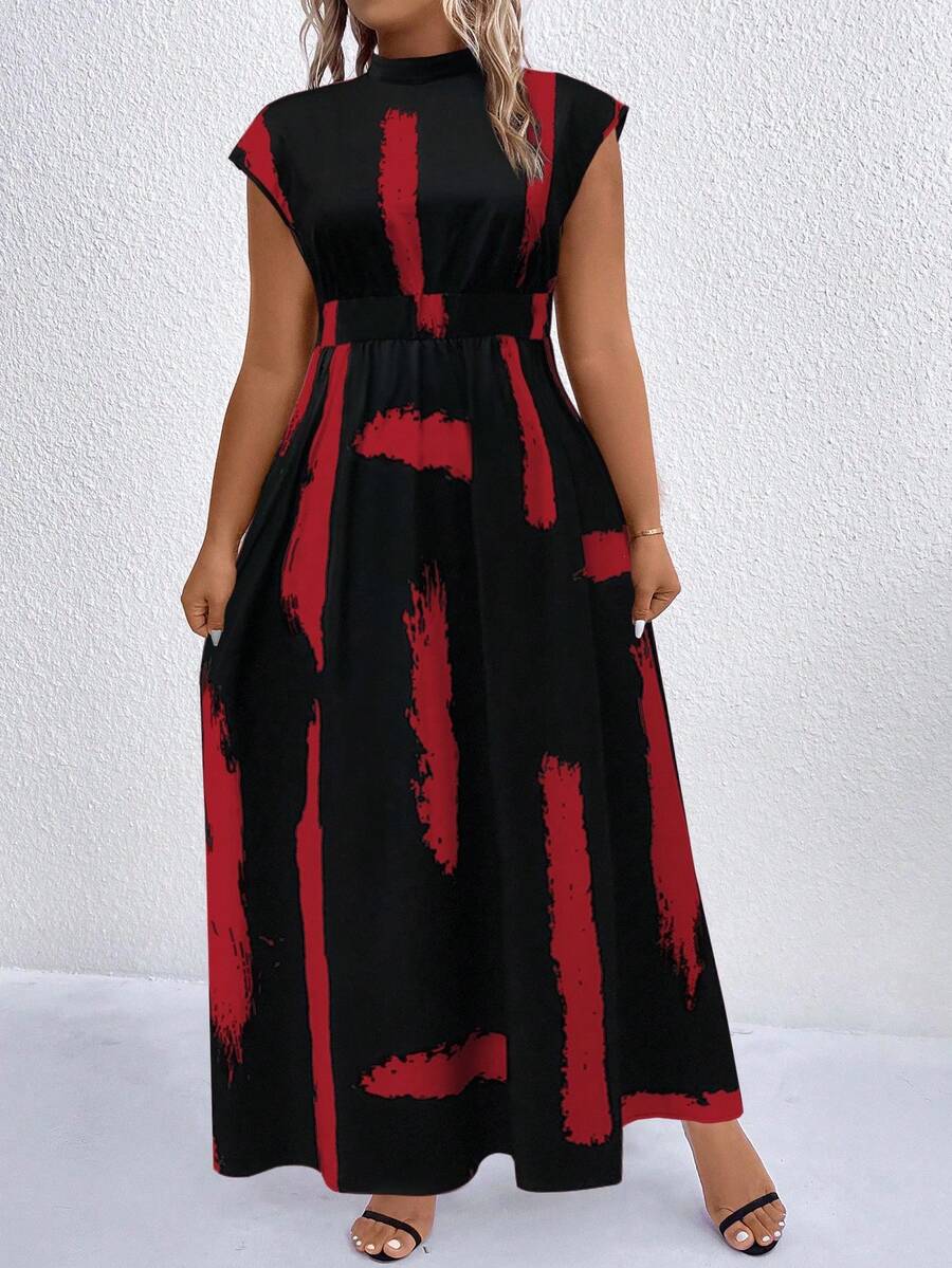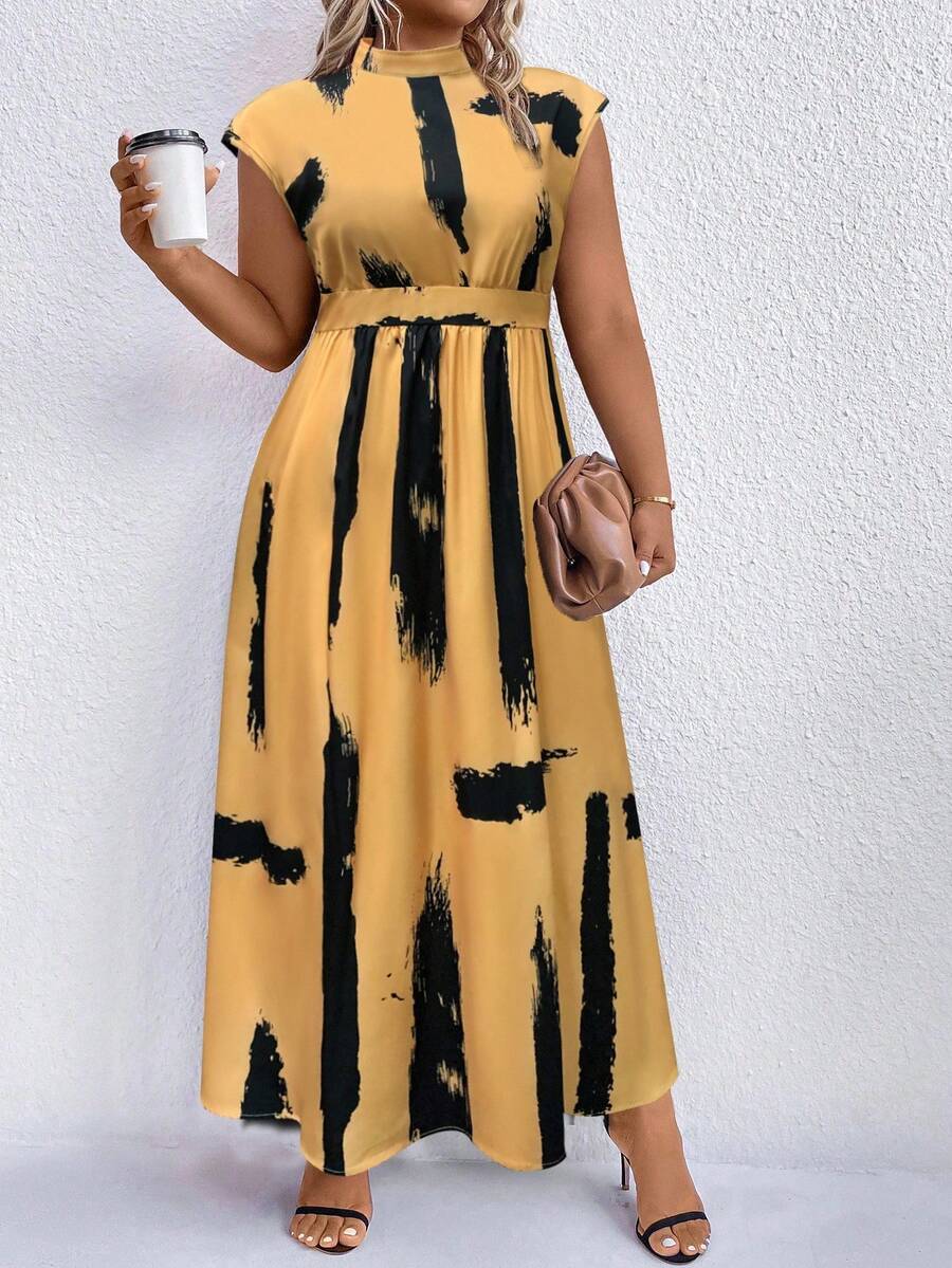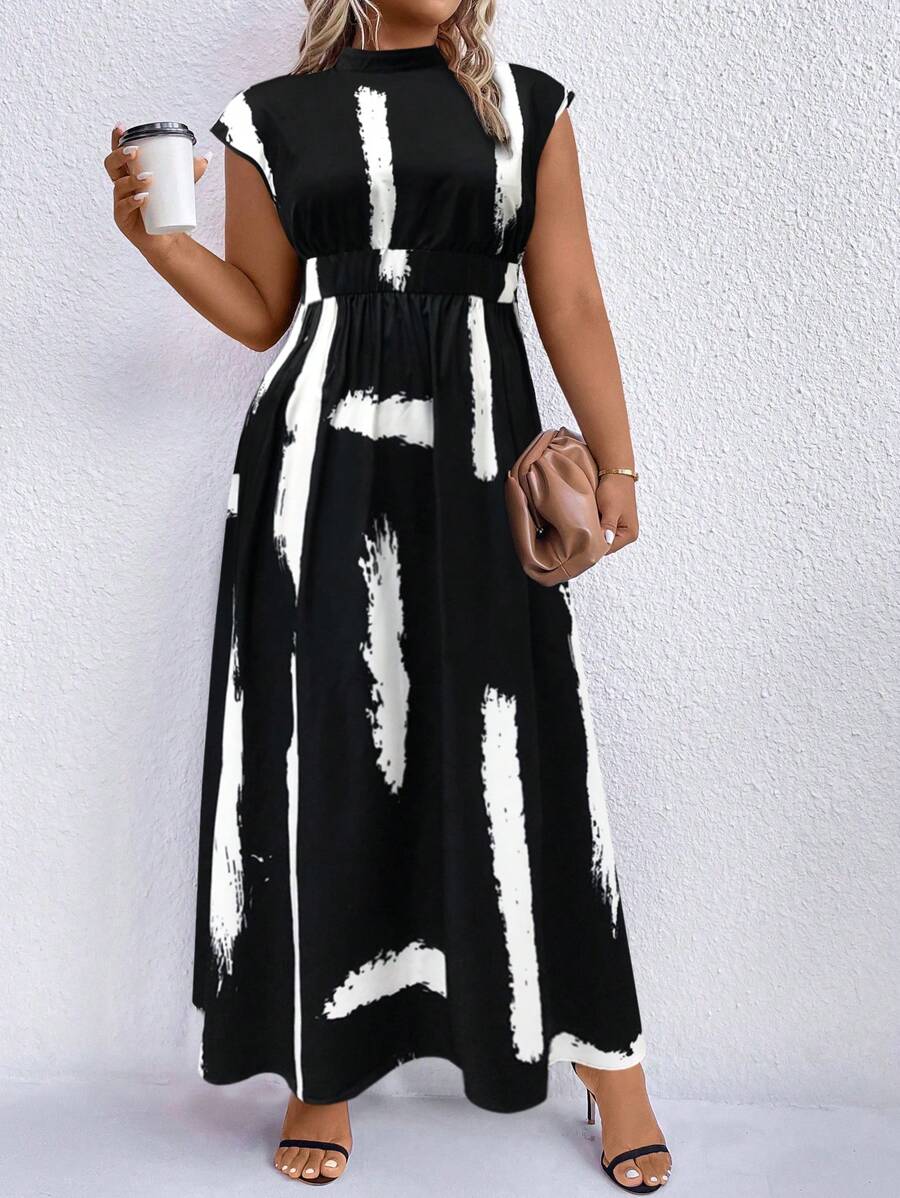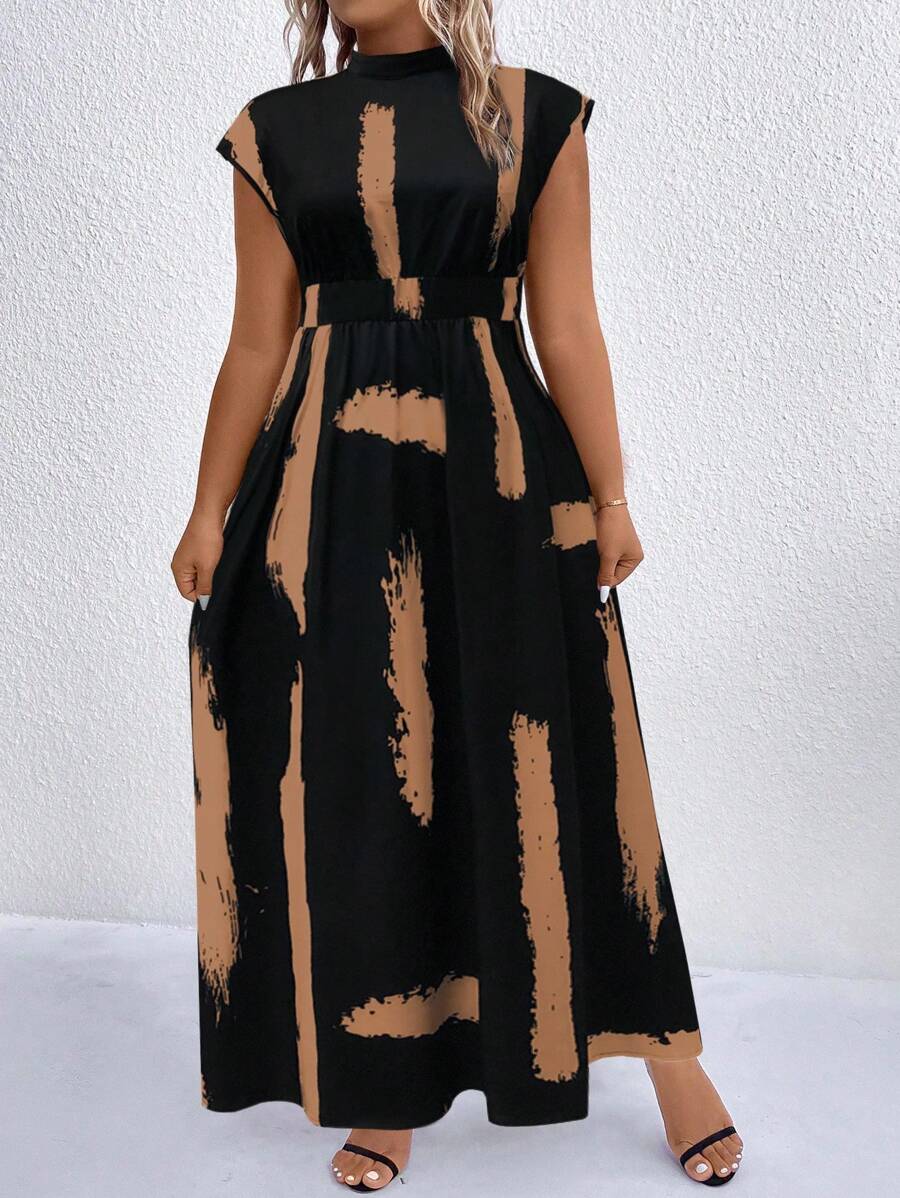 Vestido maxi con cuello alto y estampado de lunares para mujer de talla grande