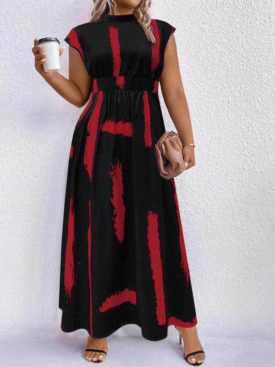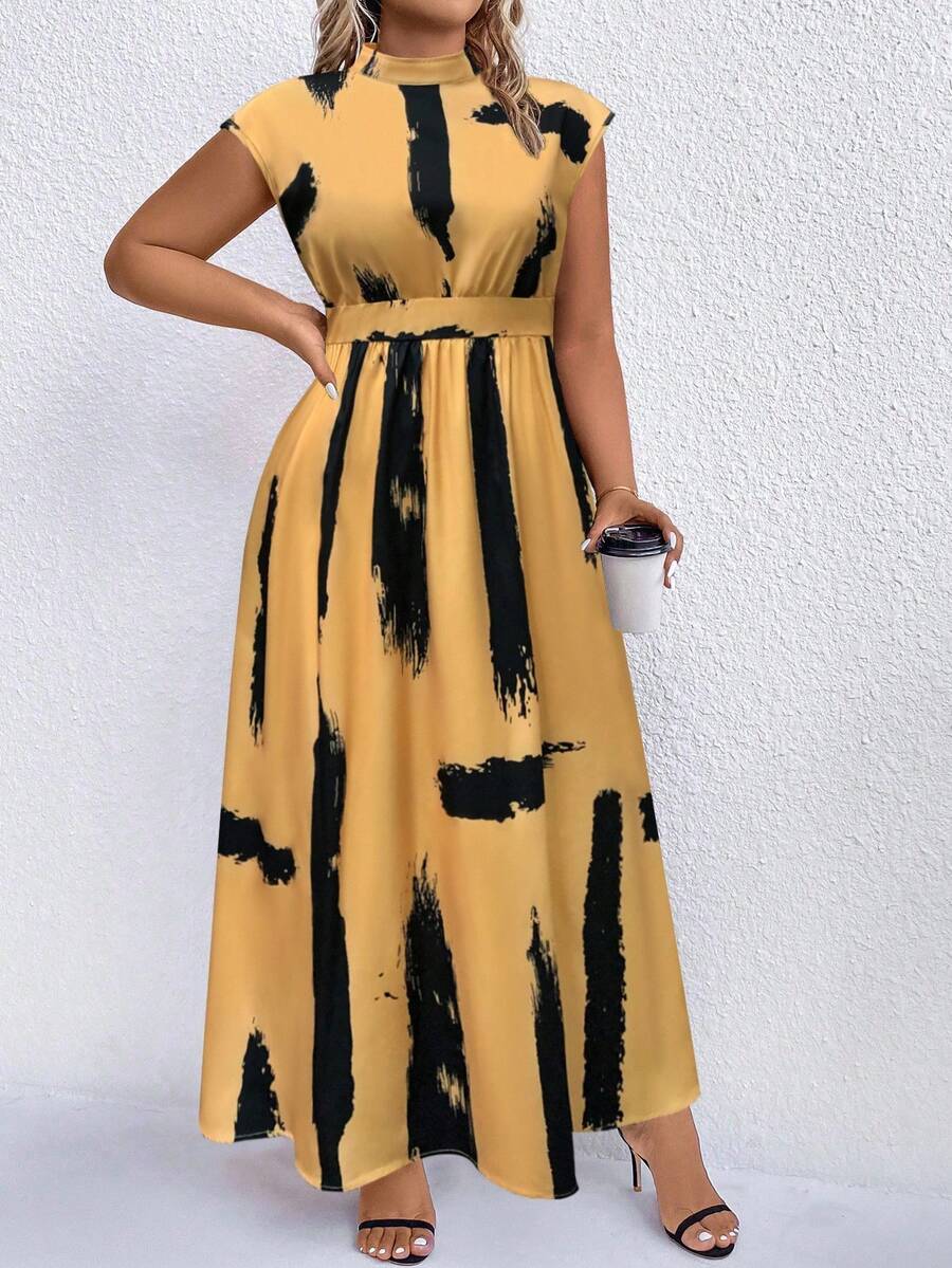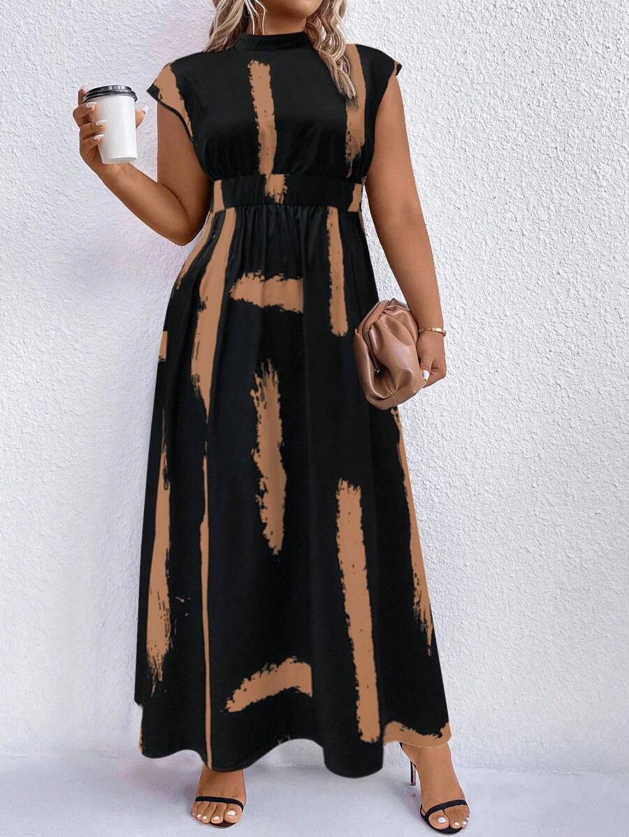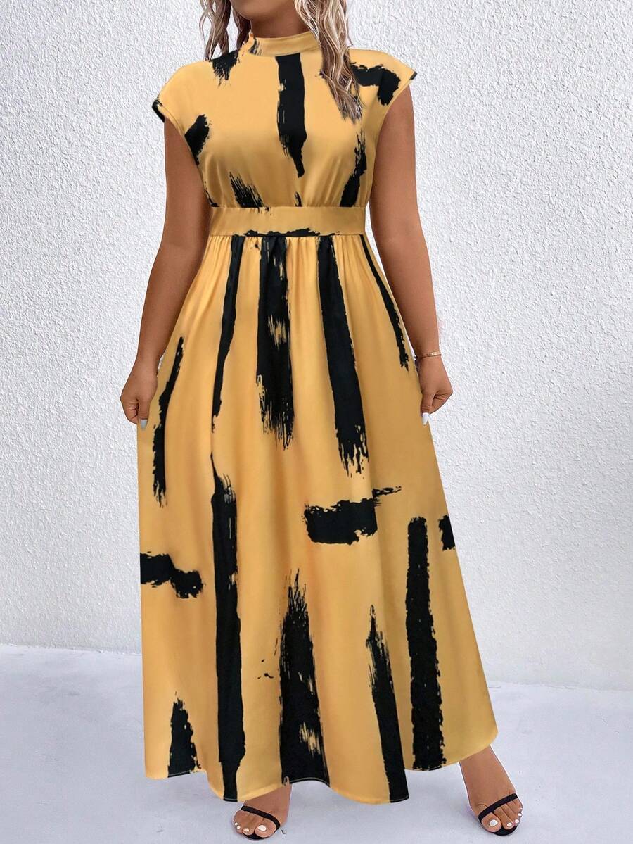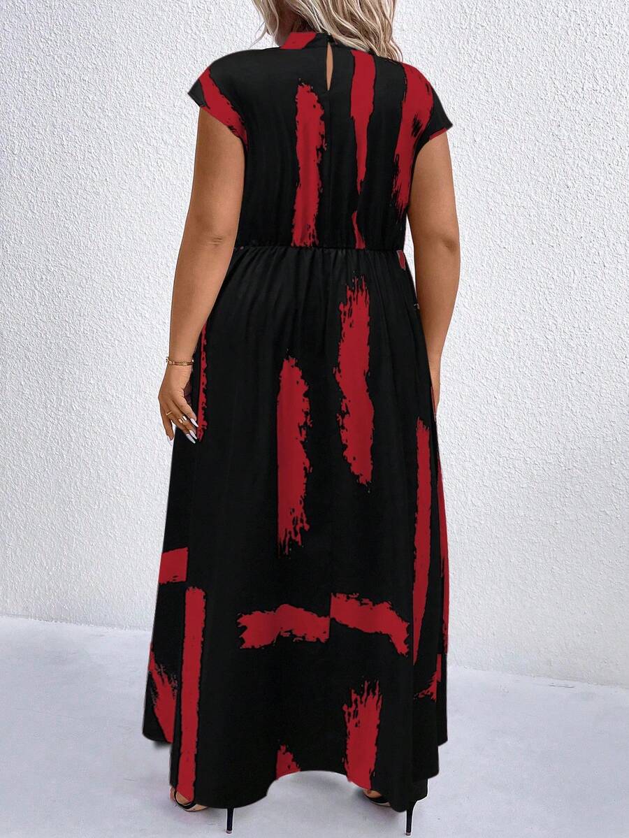 Vestido maxi con cuello alto y estampado de lunares para mujer de talla grande