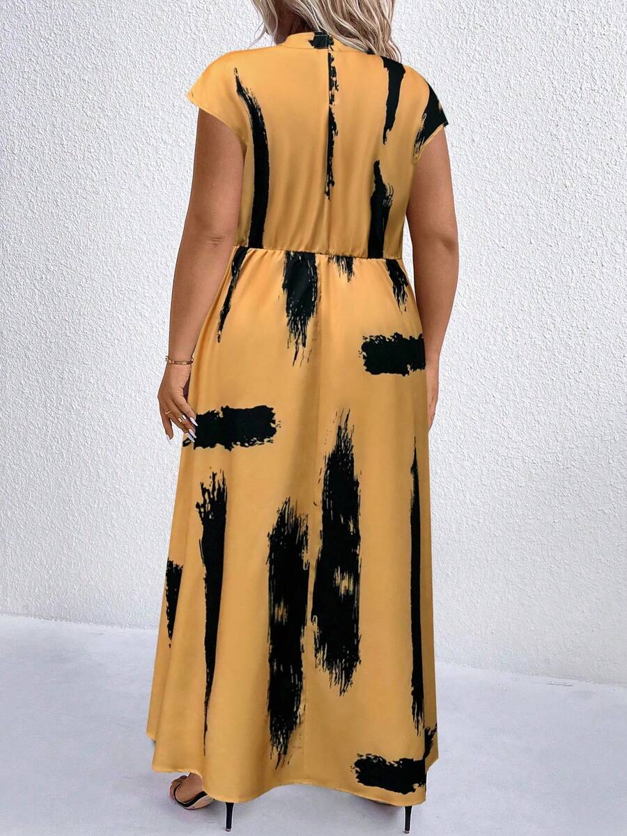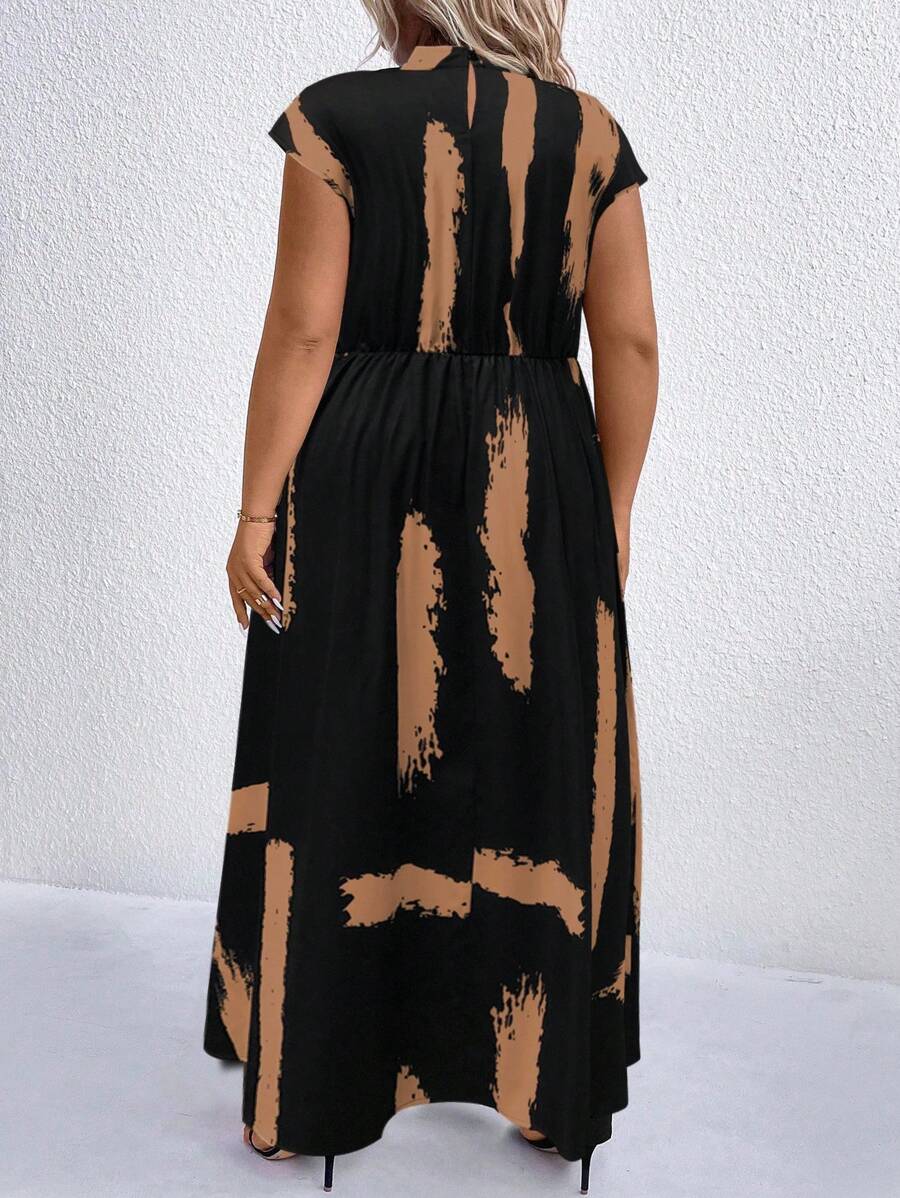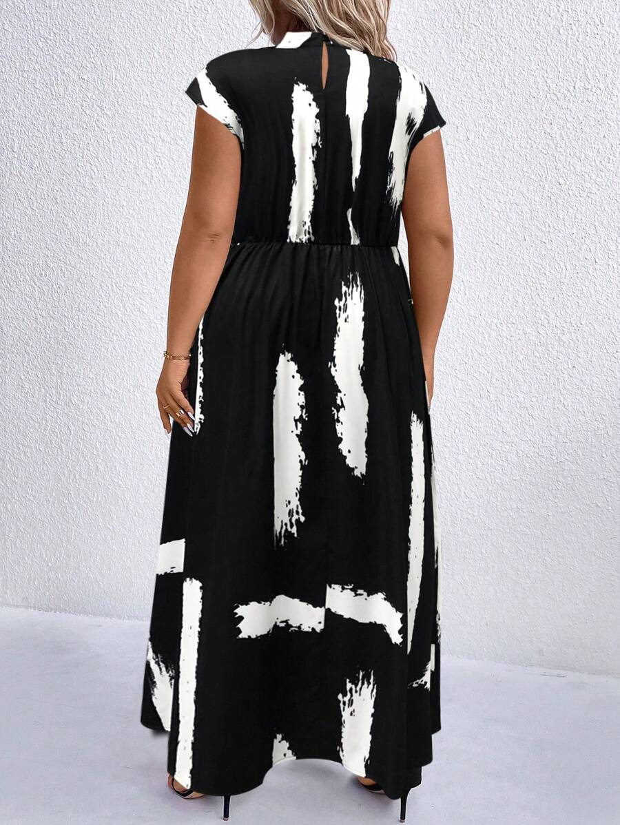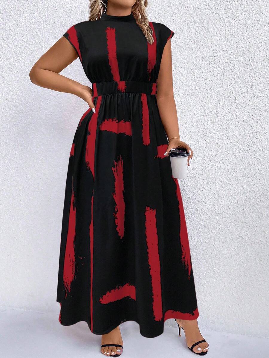 Vestido maxi con cuello alto y estampado de lunares para mujer de talla grande