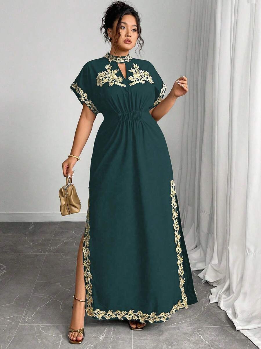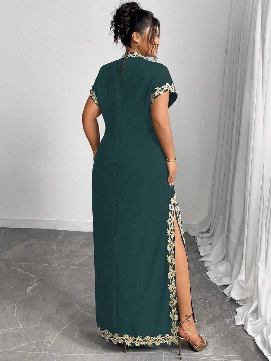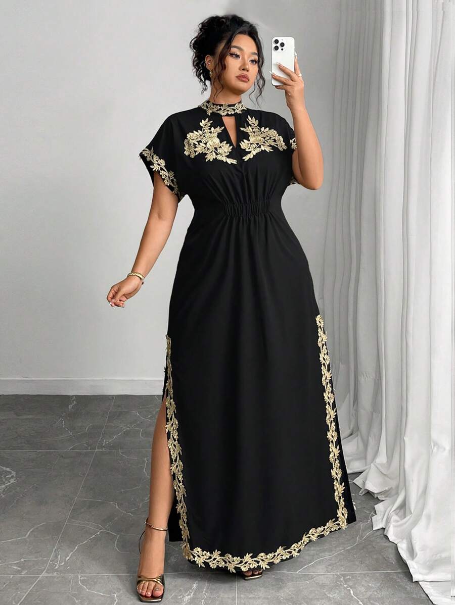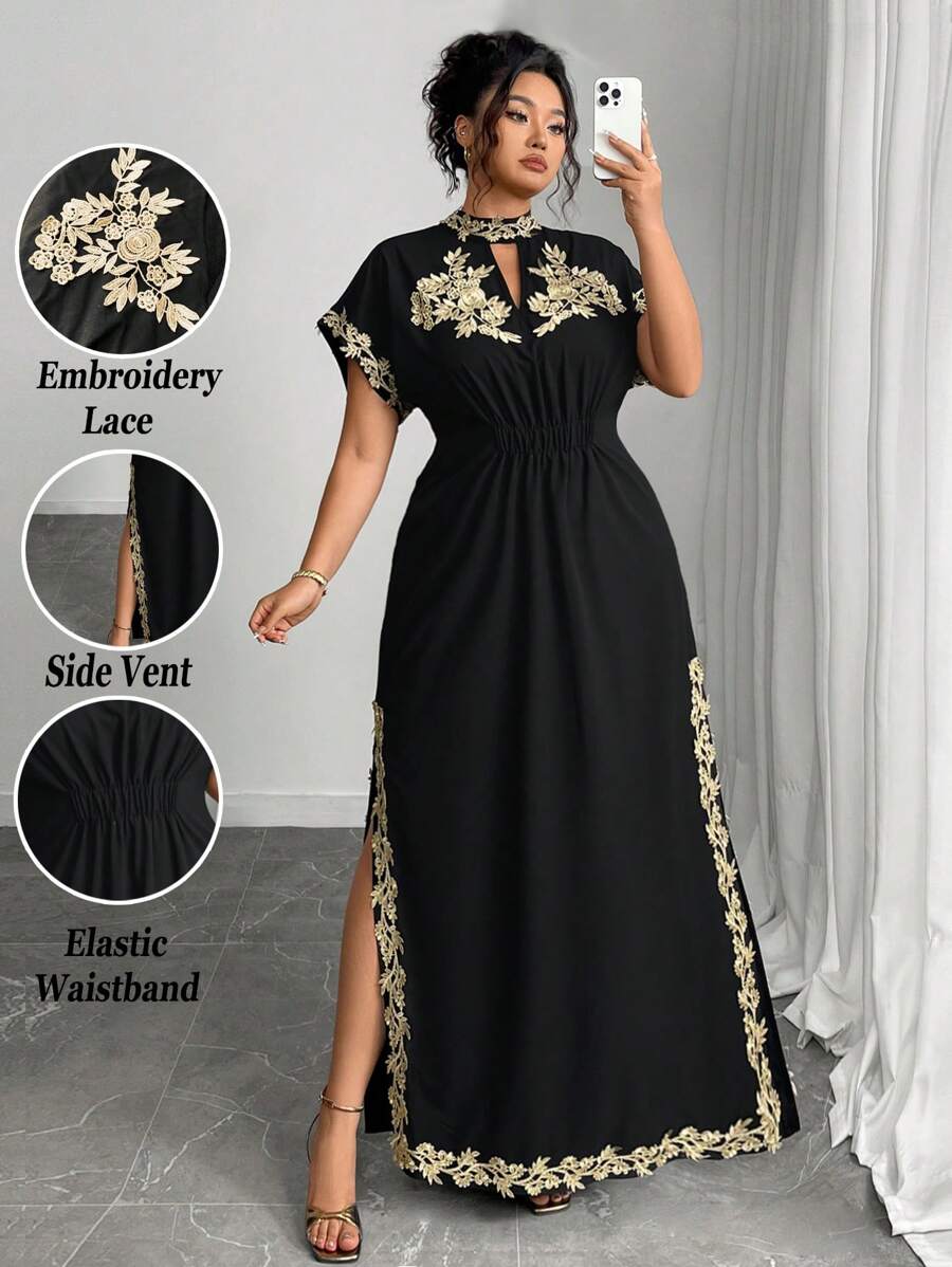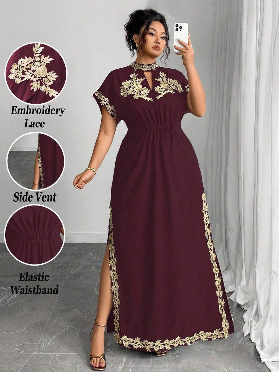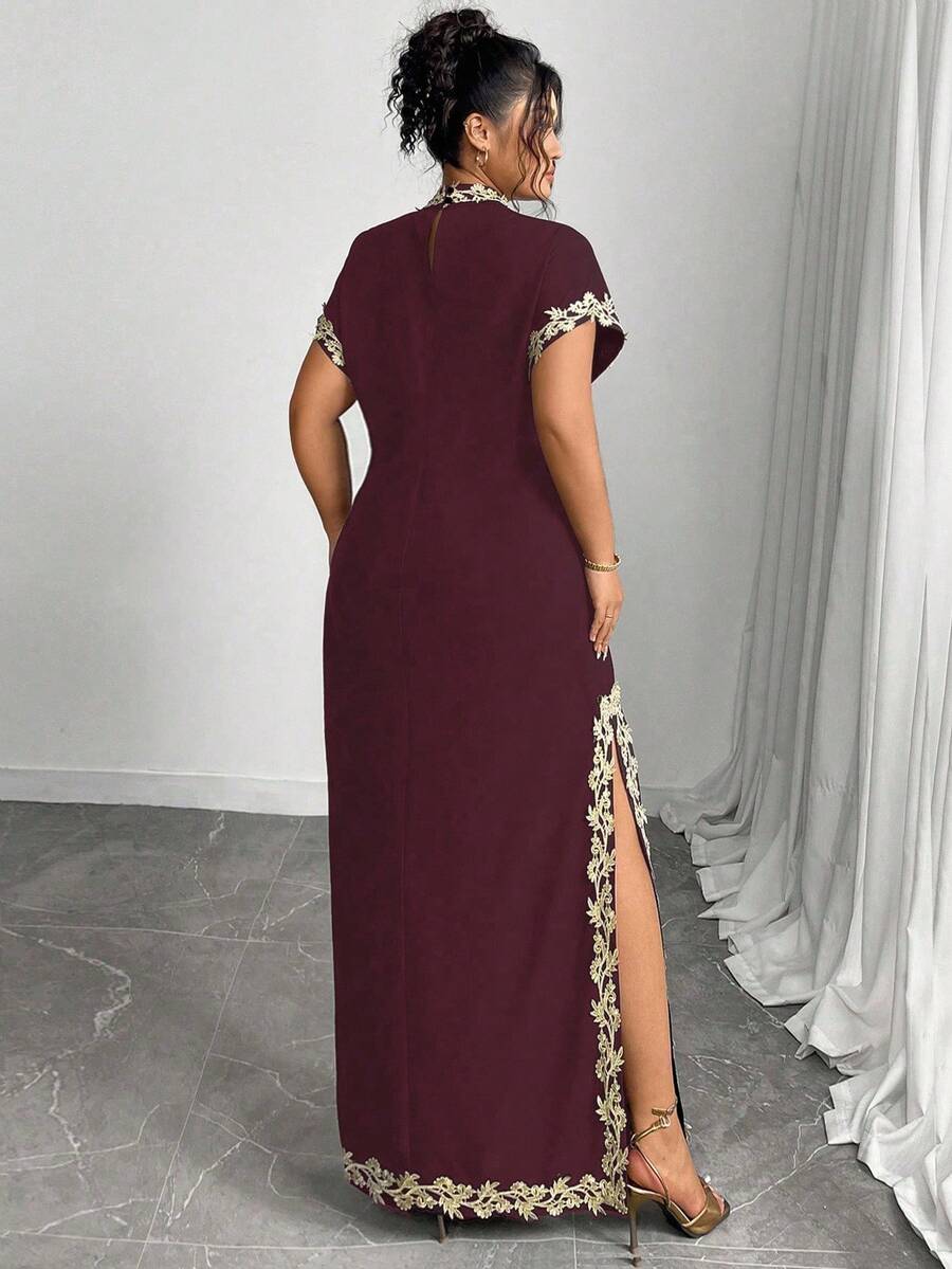 Vestido maxi de manga larga de diseno versatil para mujer de talla grande, elegante, de unicolor, con bordado romantico y aplicaciones, para fiesta, coctel, cita, concierto, vacaciones, primavera/verano