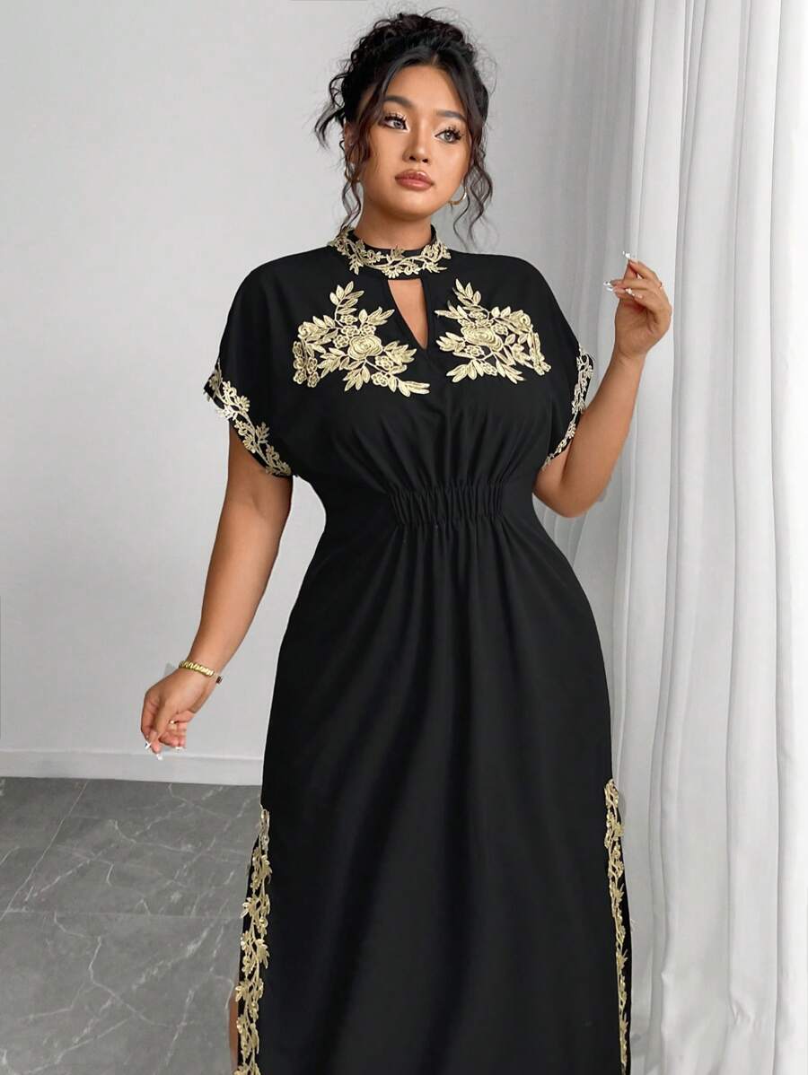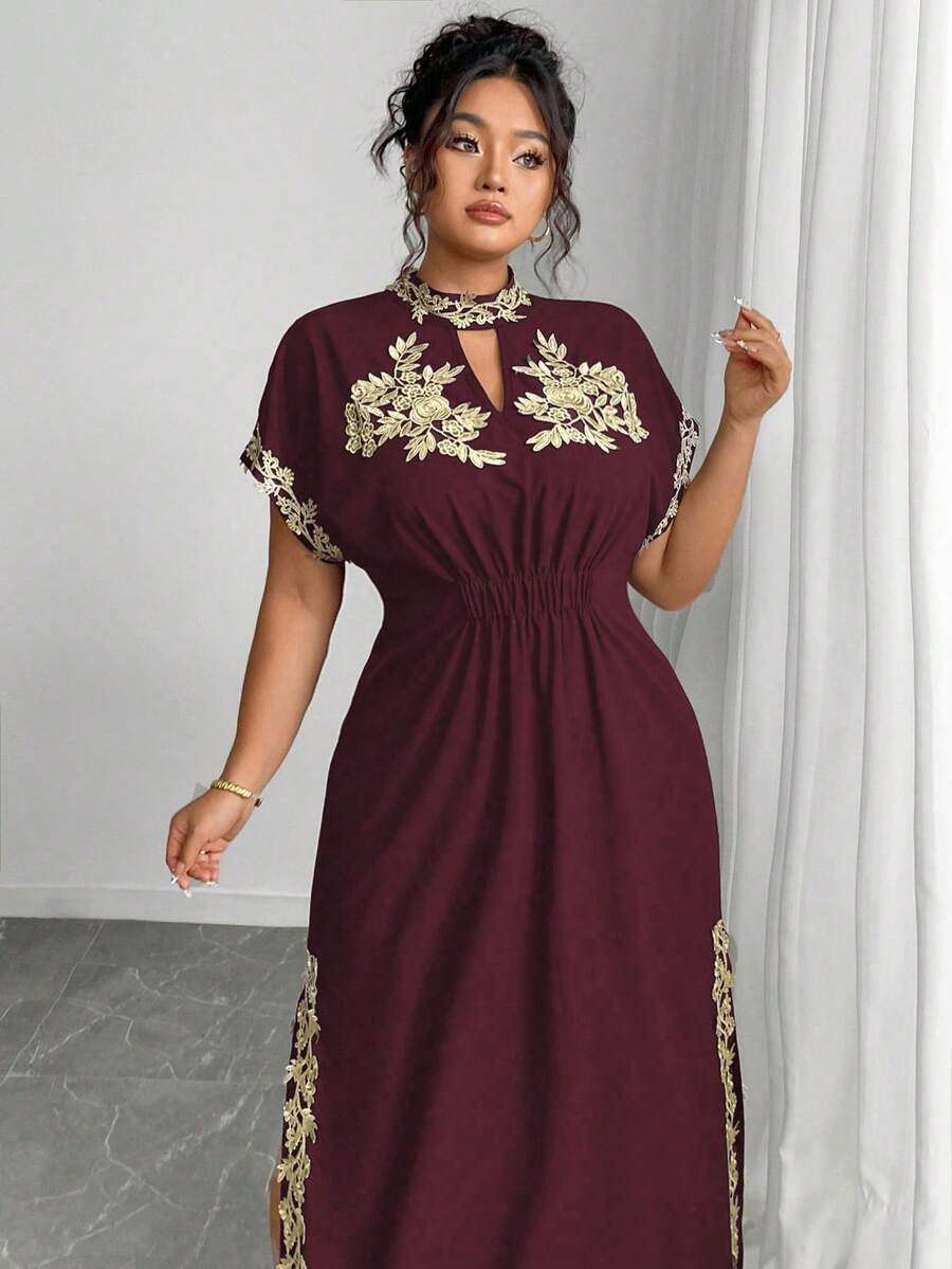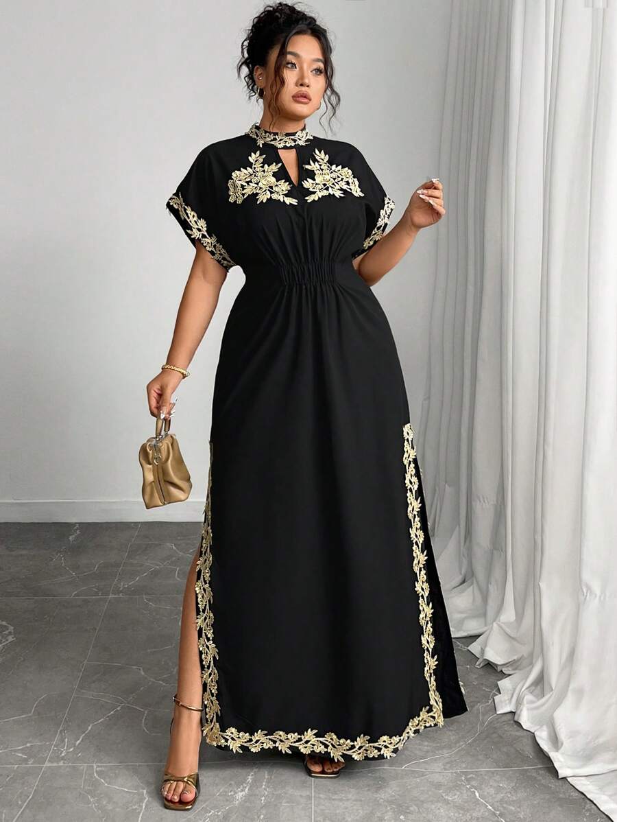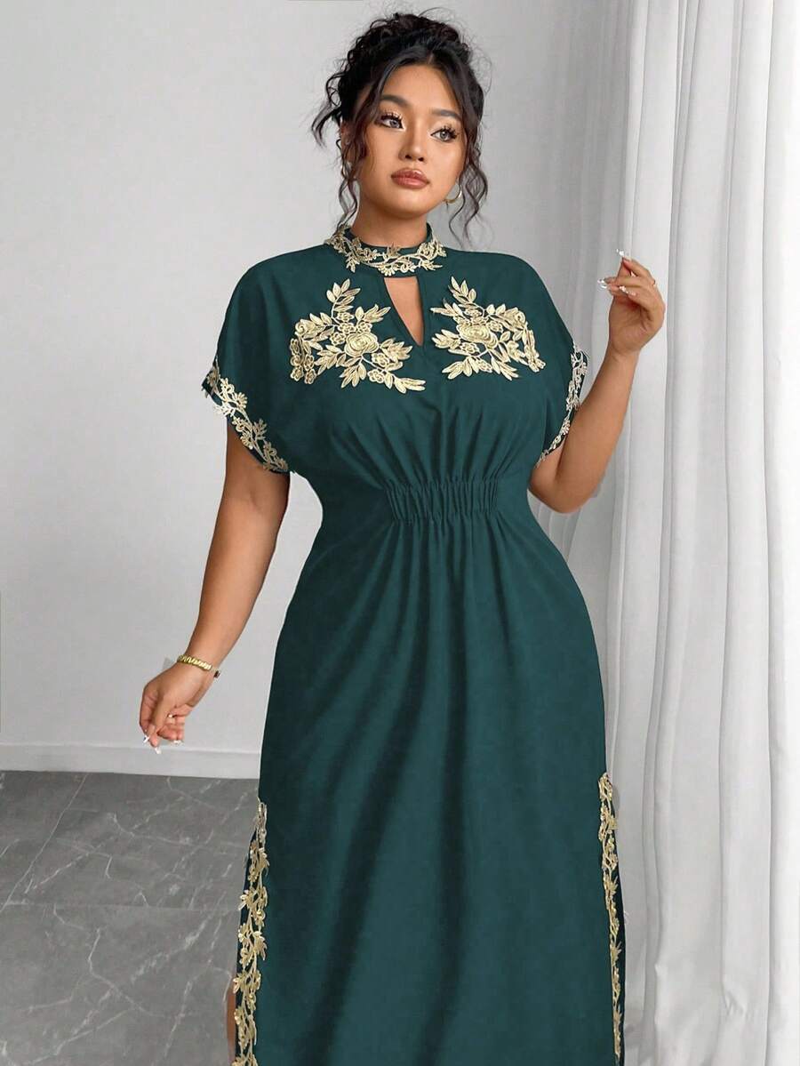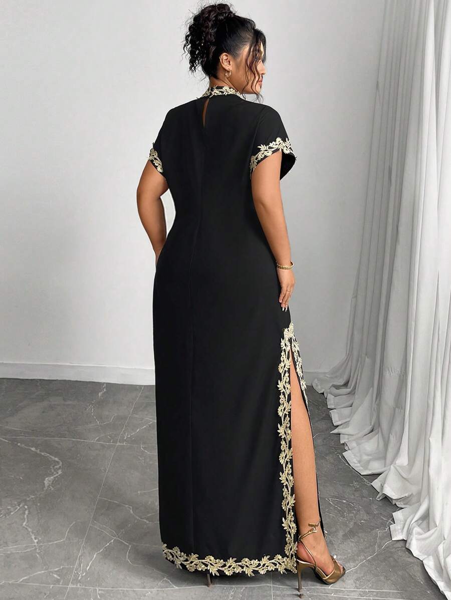 Vestido maxi de manga larga de diseno versatil para mujer de talla grande, elegante, de unicolor, con bordado romantico y aplicaciones, para fiesta, coctel, cita, concierto, vacaciones, primavera/verano