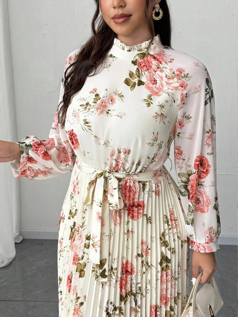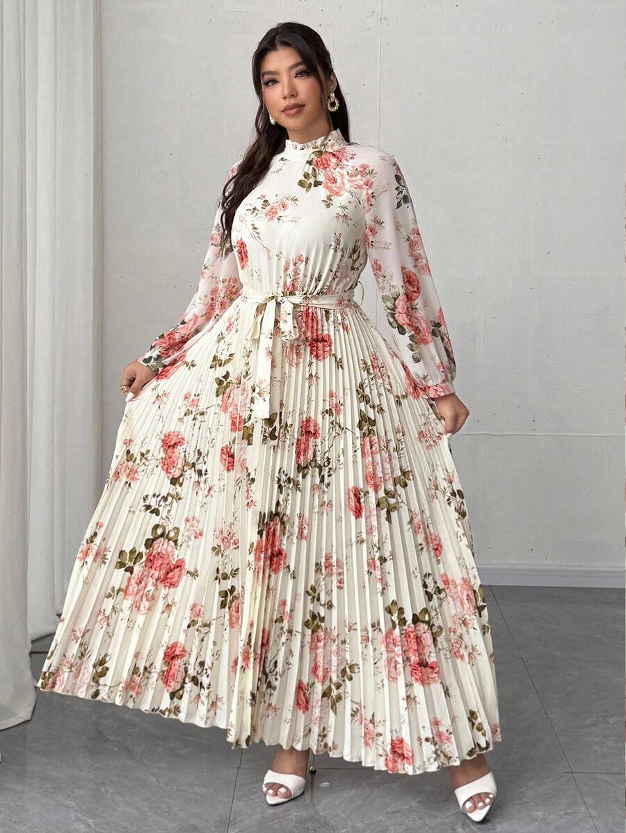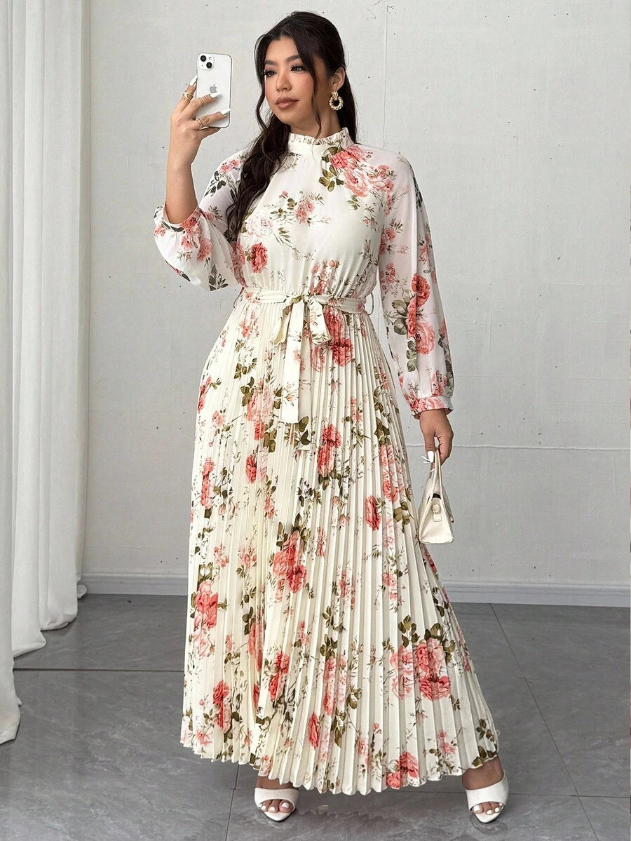 Viva relle vestido largo de manga larga con pliegues de gasa con estampado floral romantico y elegante para mujer de talla grande