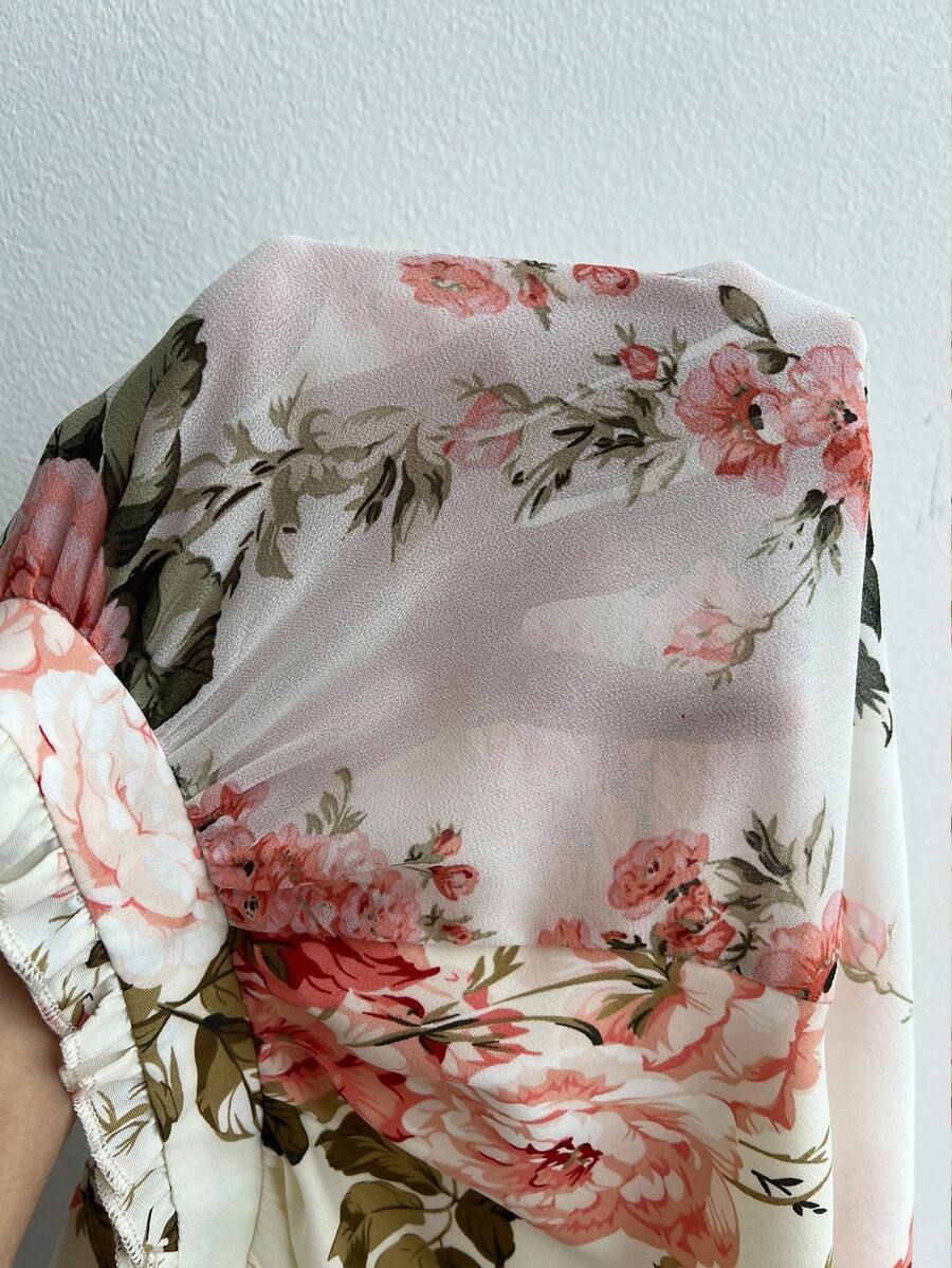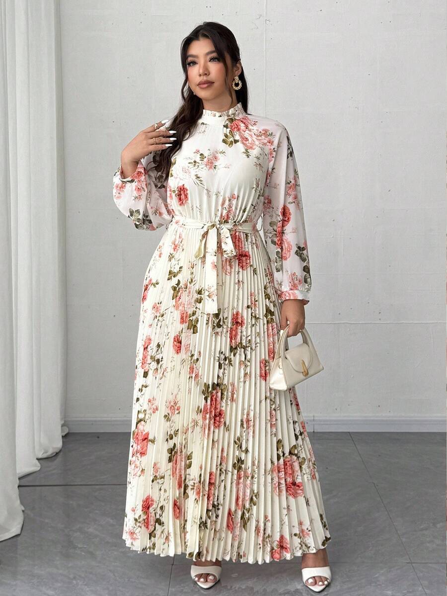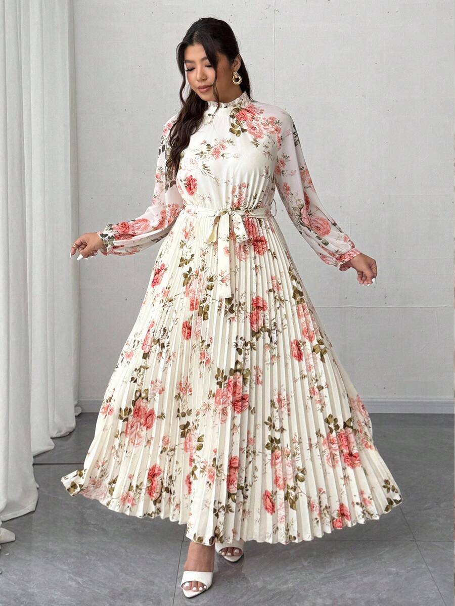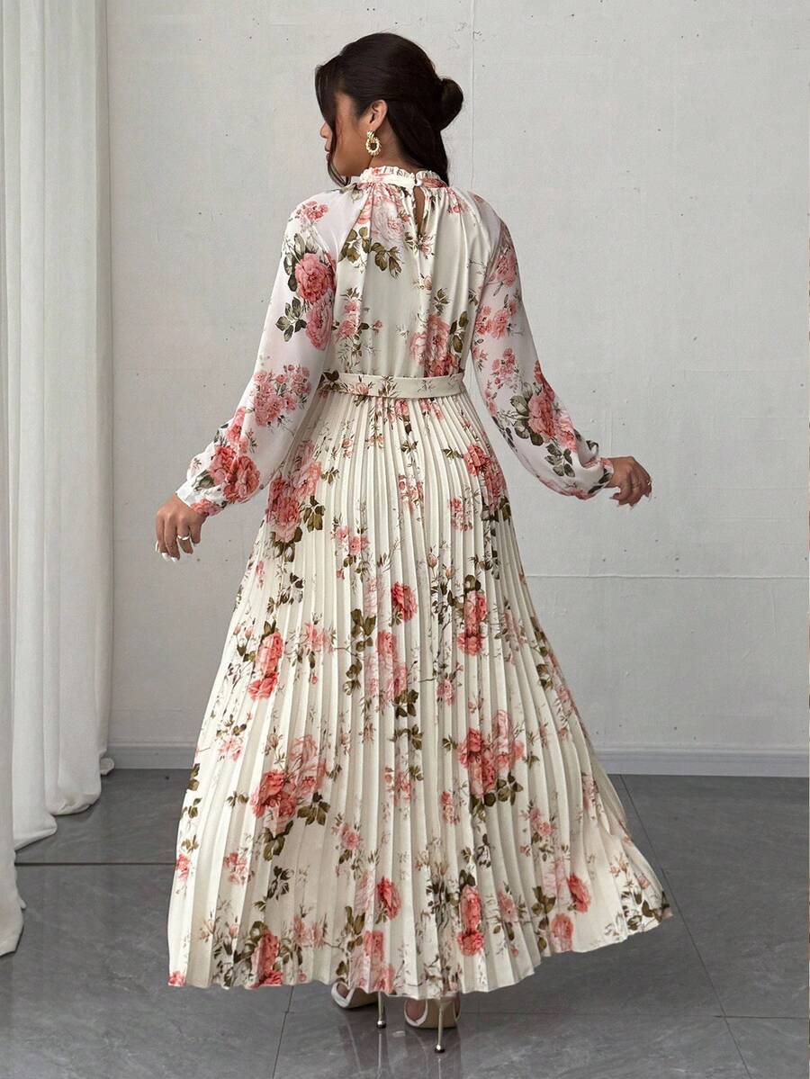 Viva relle vestido largo de manga larga con pliegues de gasa con estampado floral romantico y elegante para mujer de talla grande