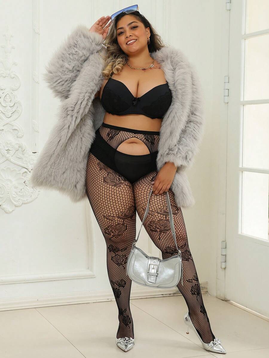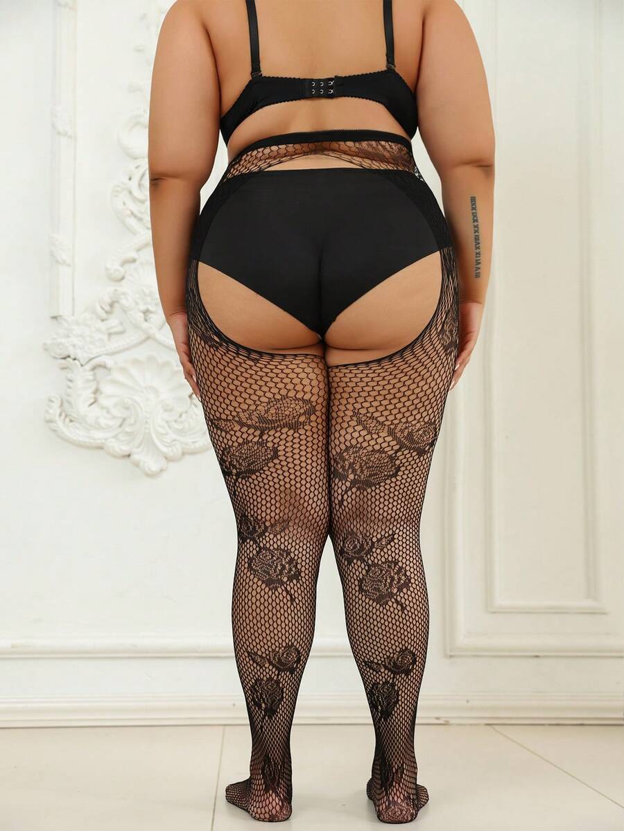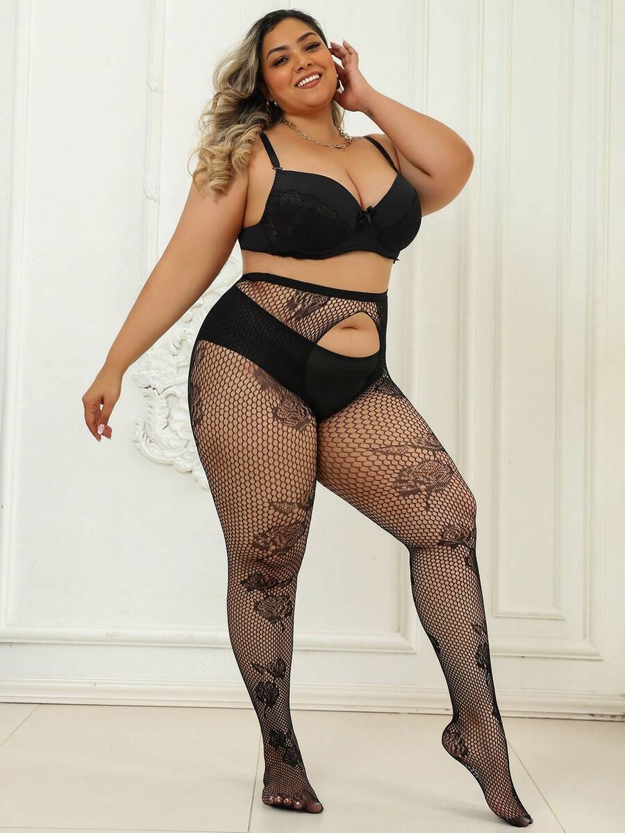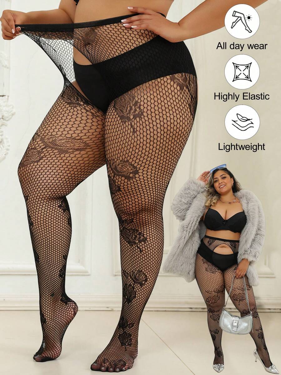 1 pieza mallas curvas para mujer, pantalones ajustados de gran elasticidad con jacquard de rosas, medias de red caladas sexy, delgadas para primavera/verano, color negro, de moda y versatiles para vacaciones