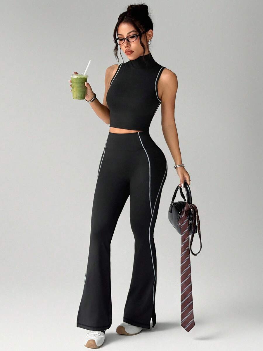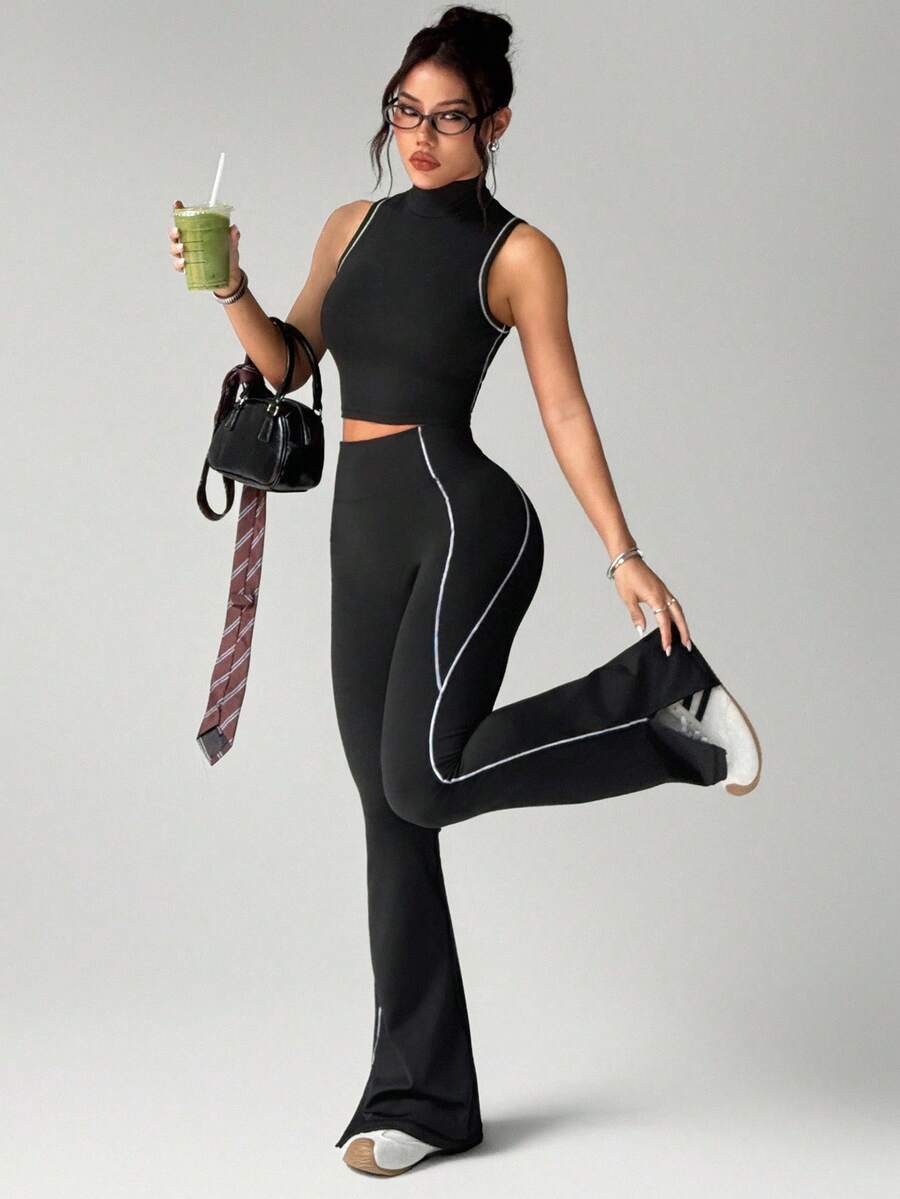With my calm pantalones acampanados de yoga de cintura alta para mujeres, a prueba de sentadillas, control de abdomen, sin costuras, elasticos