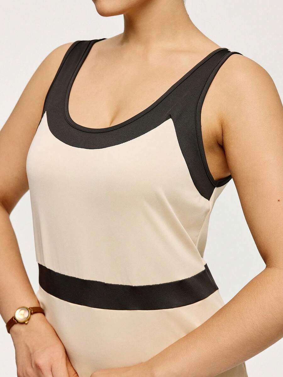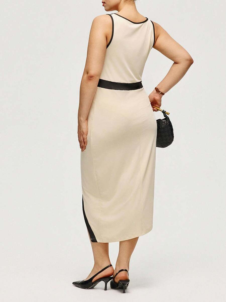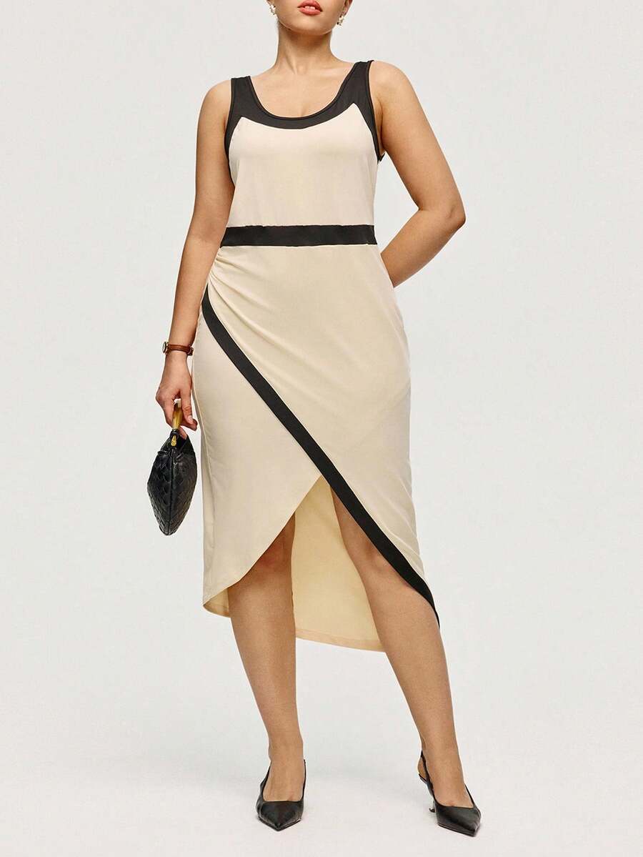 Vestido de cuello redondo sin mangas con bloques de color talla grande