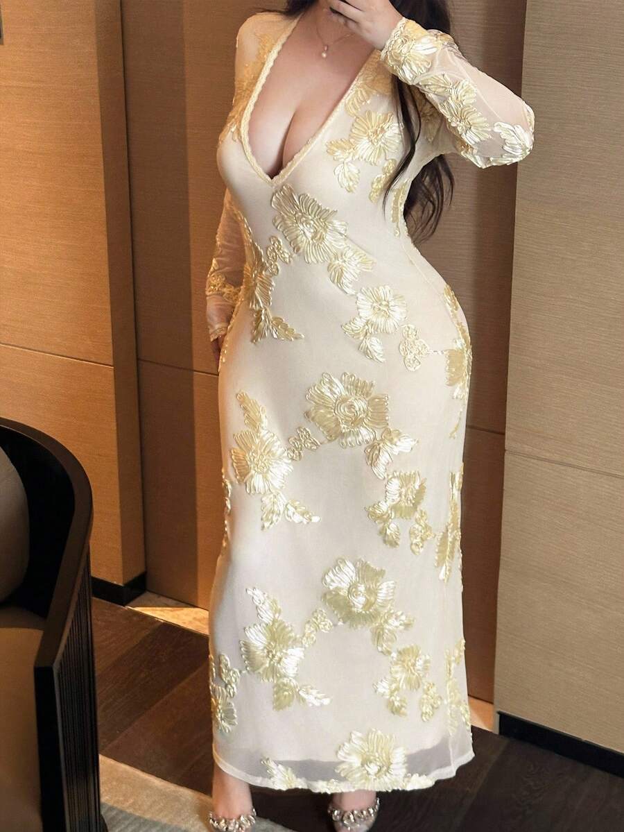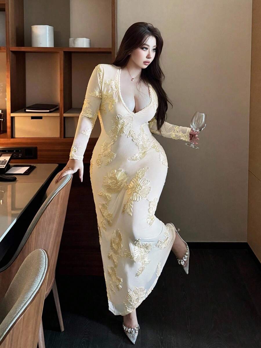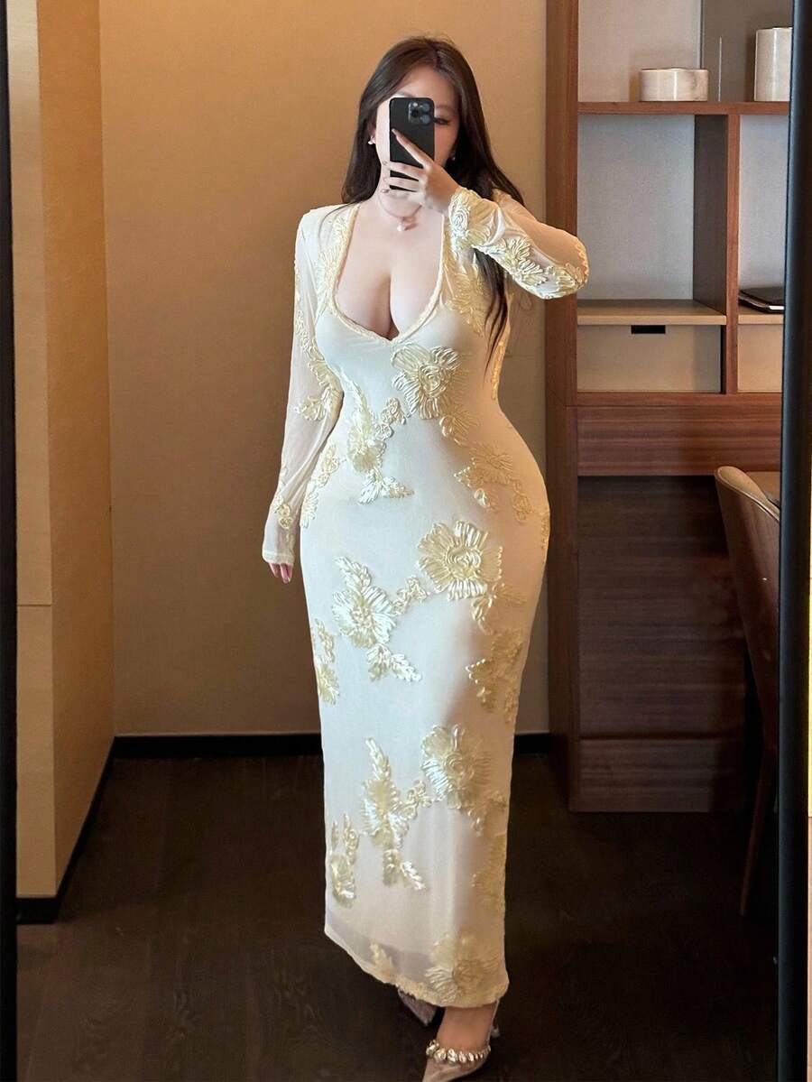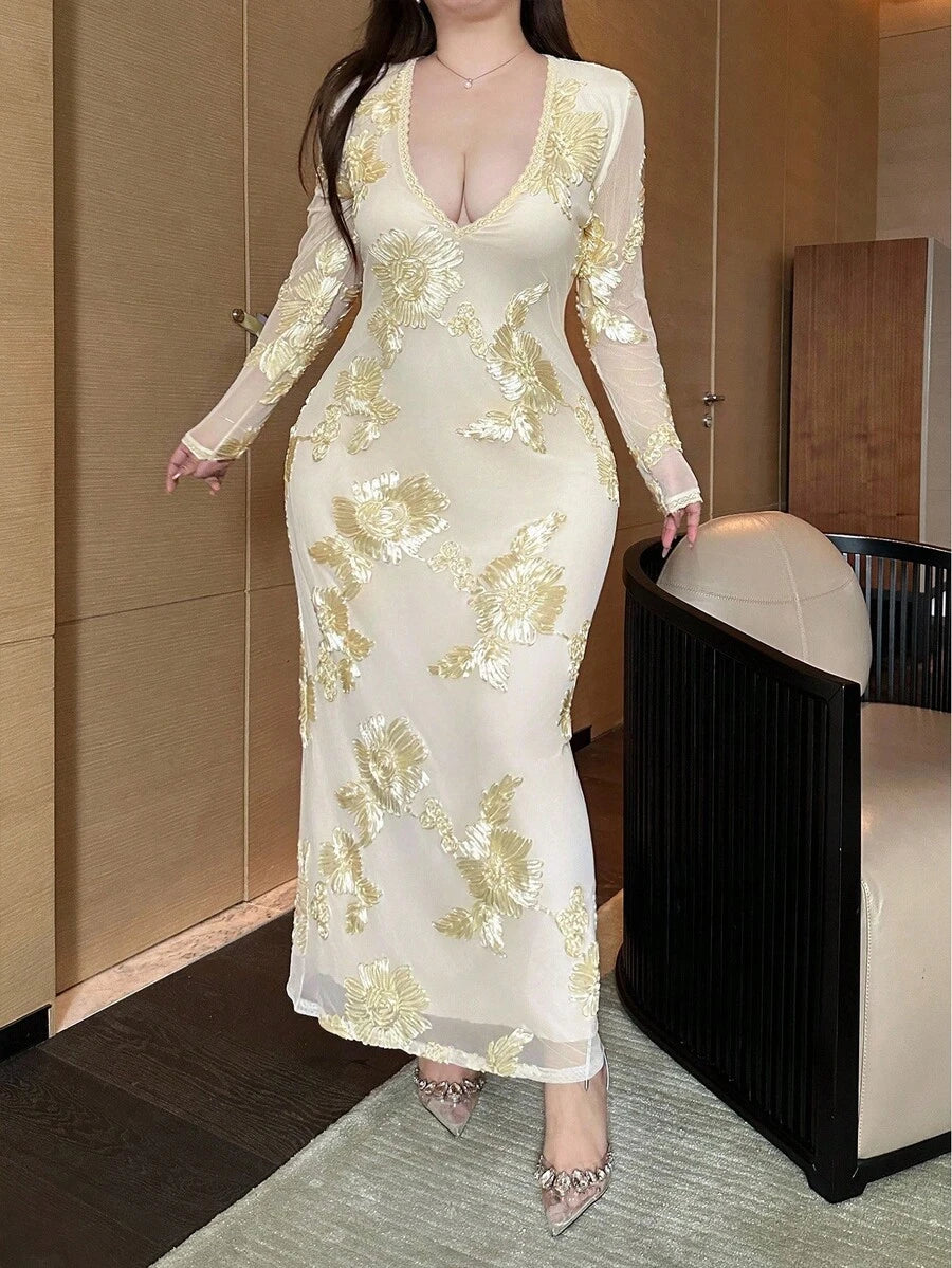 Vibekara vestido de punto bordado de encaje elegante y sexy para mujer de talla grande, adecuado para usar en otono/invierno, atuendo para viajes en avion, fiesta de cumpleanos, fiesta en club, ocasion formal, vestido de invitada de boda, vestido