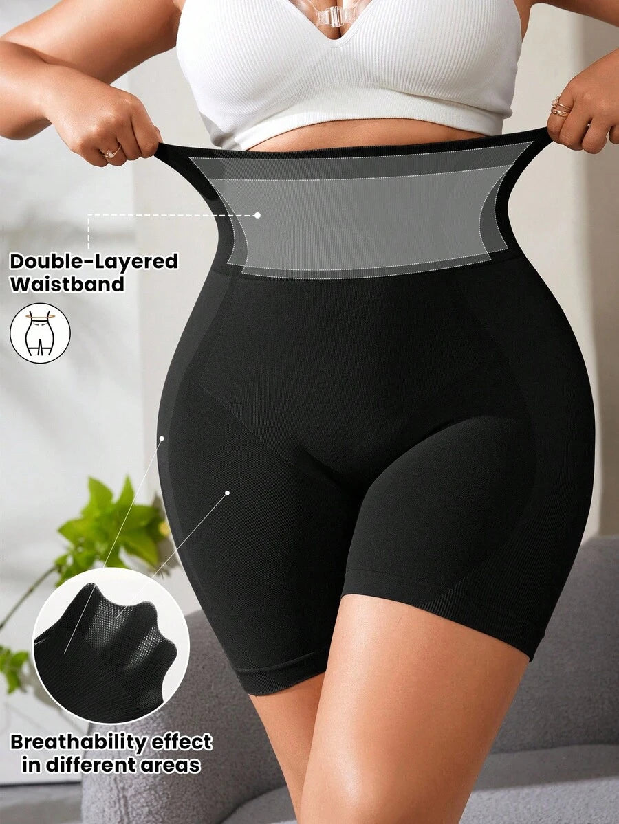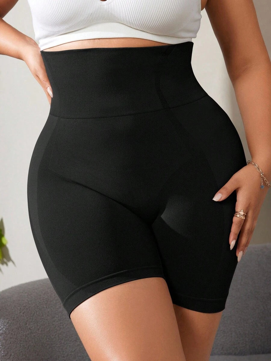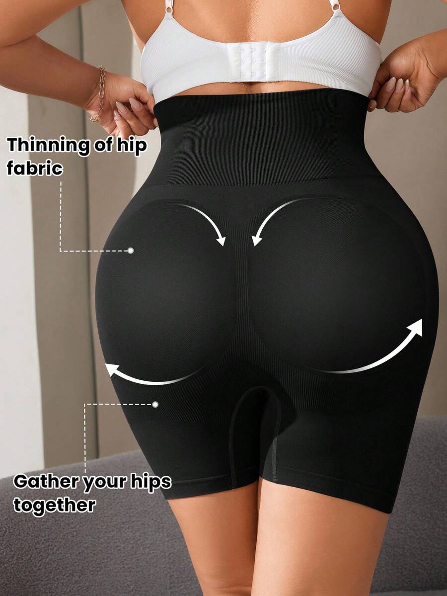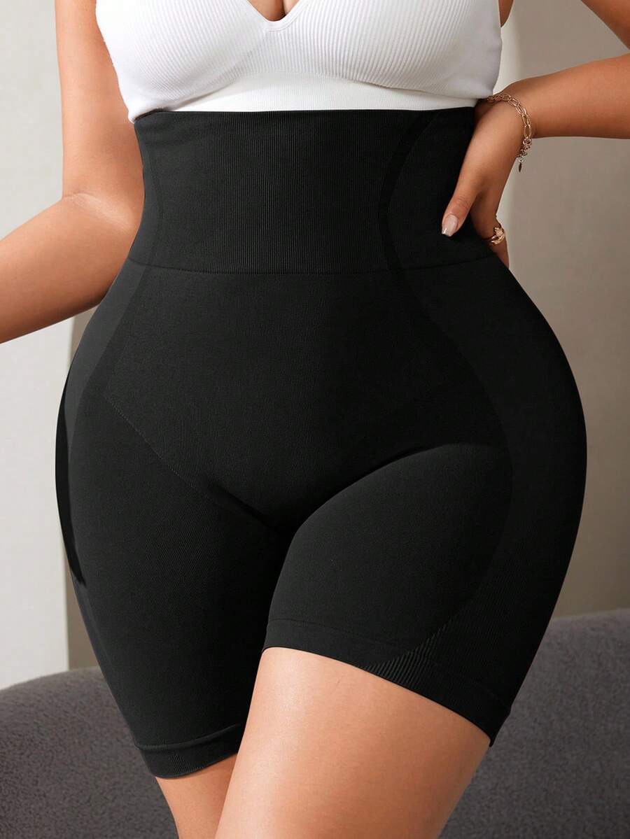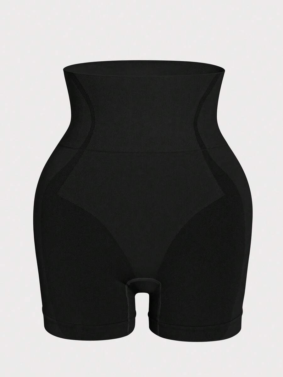 1 pieza pantalon corto moldeador de cintura alta sin costuras para mujer, panty moldeador minimalista negro