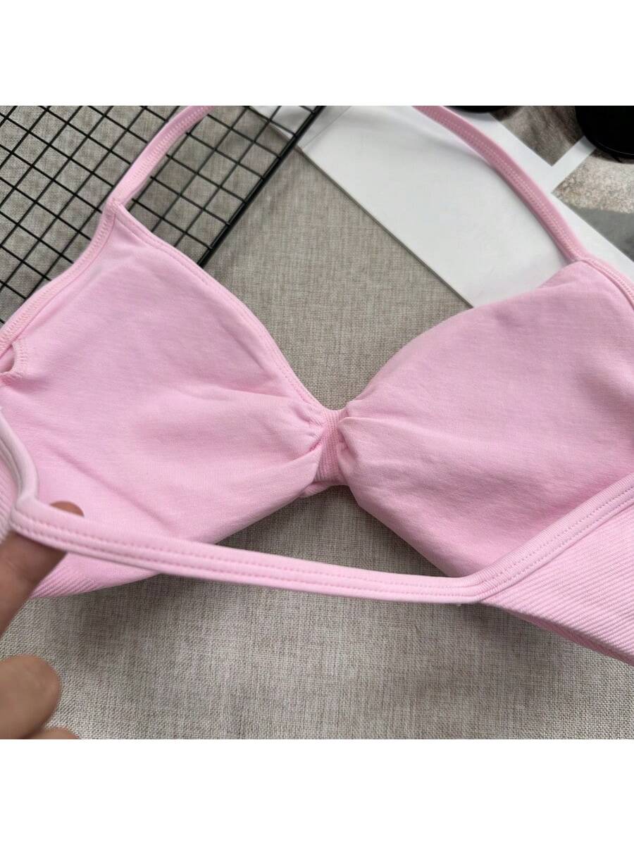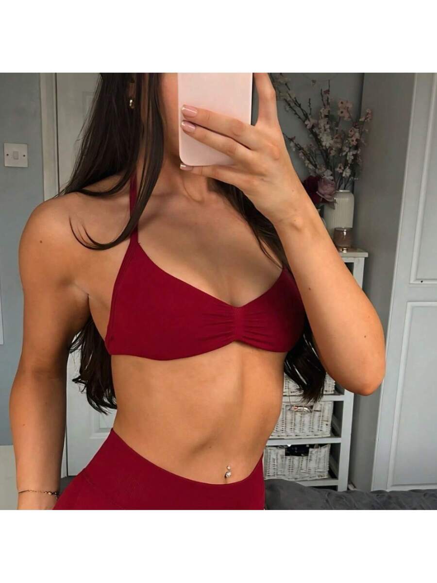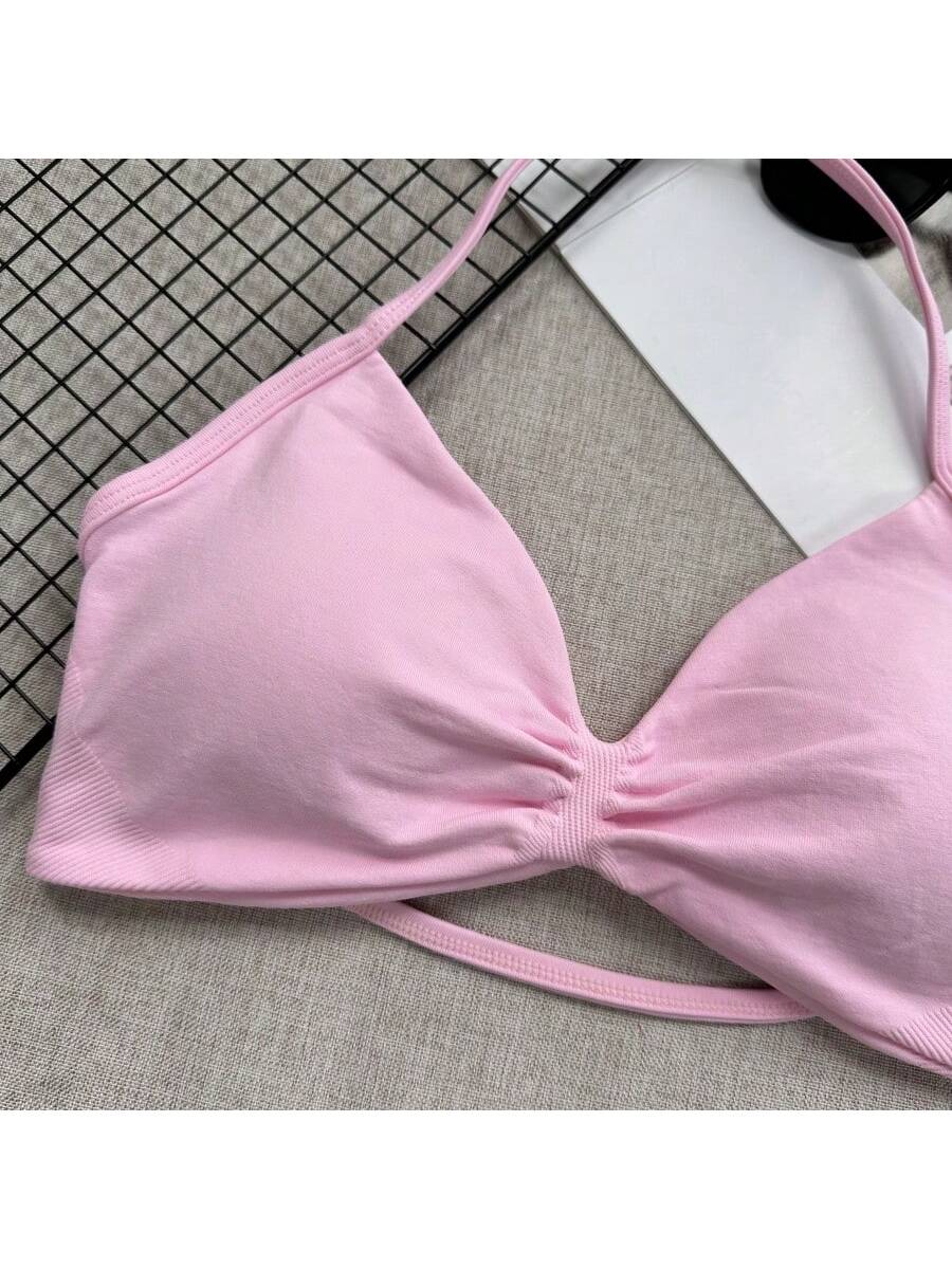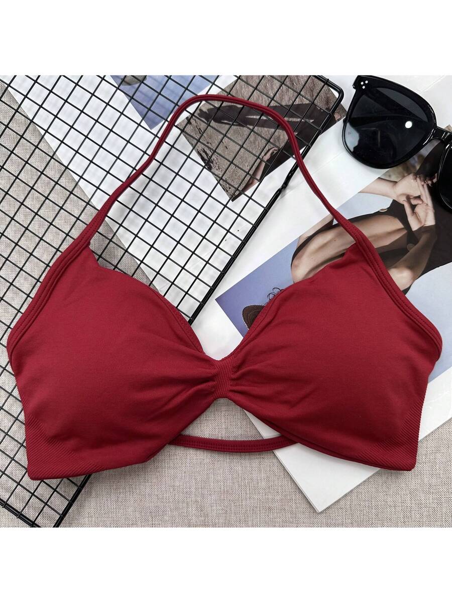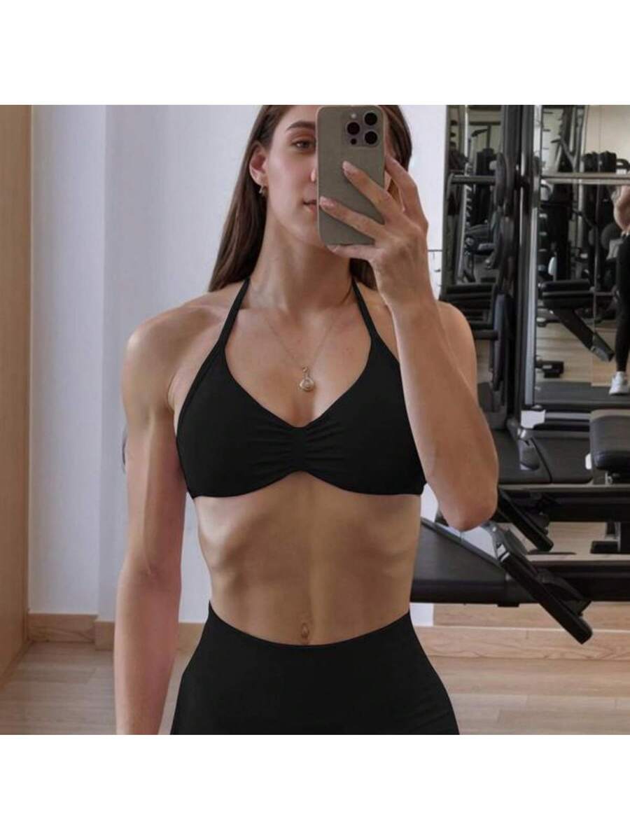 Brasier deportivo popular con tirantes para mujer, con espalda abierta, tipo halter, de soporte ligero, top corto sin costuras para gimnasio, con acolchado para yoga