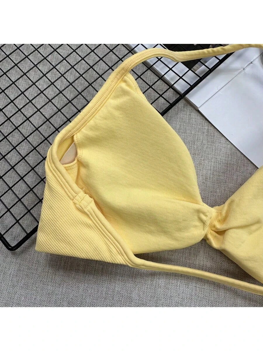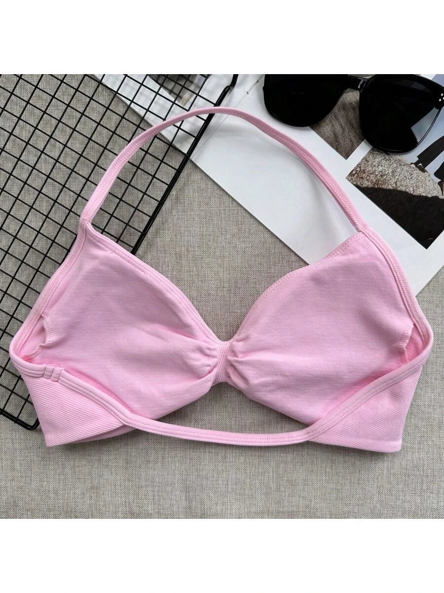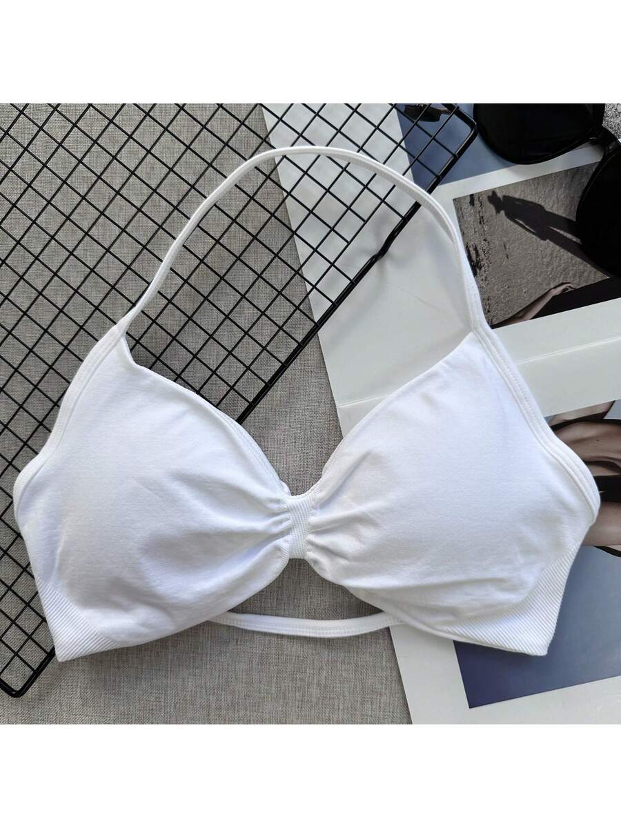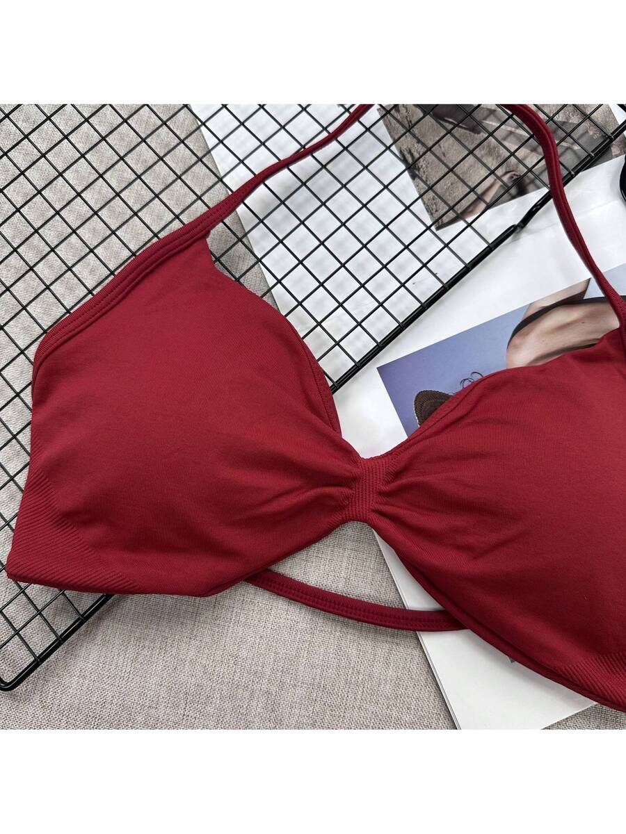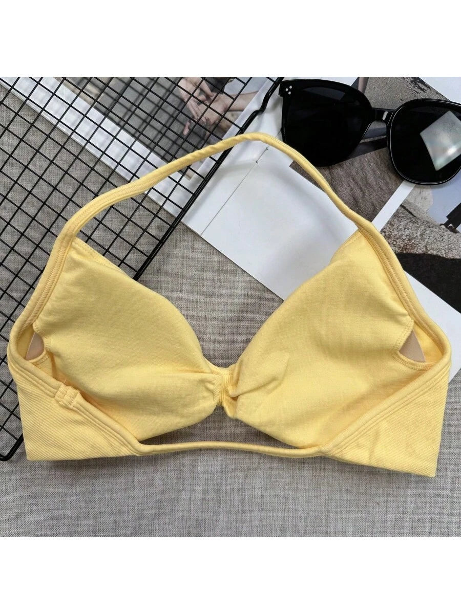 Brasier deportivo popular con tirantes para mujer, con espalda abierta, tipo halter, de soporte ligero, top corto sin costuras para gimnasio, con acolchado para yoga
