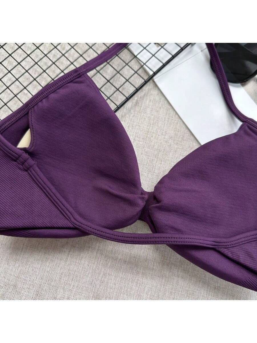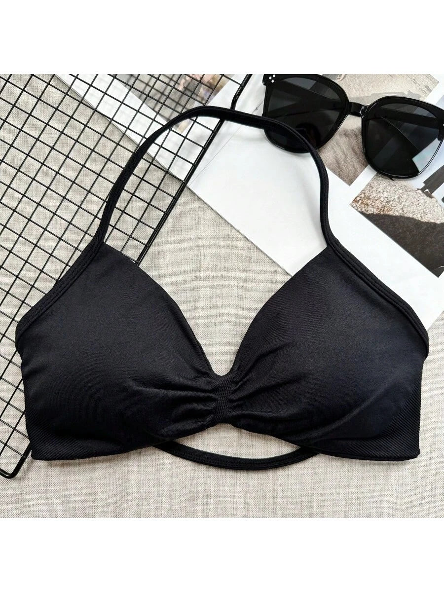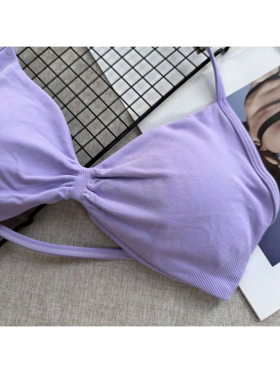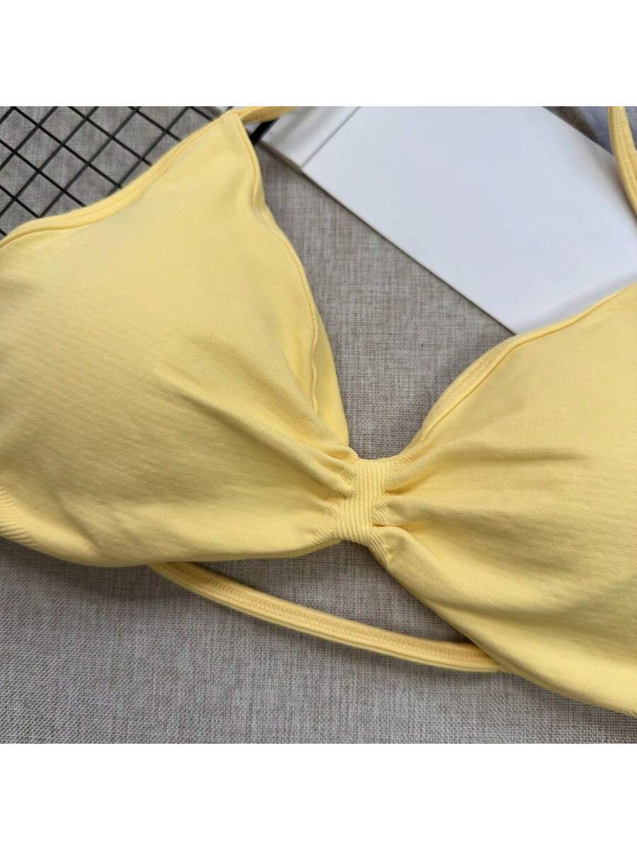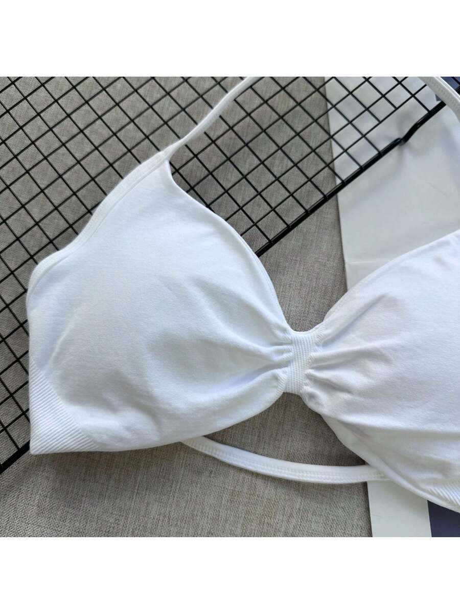 Brasier deportivo popular con tirantes para mujer, con espalda abierta, tipo halter, de soporte ligero, top corto sin costuras para gimnasio, con acolchado para yoga