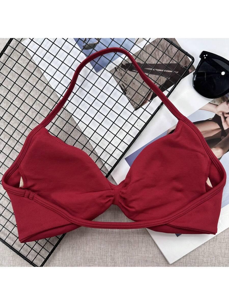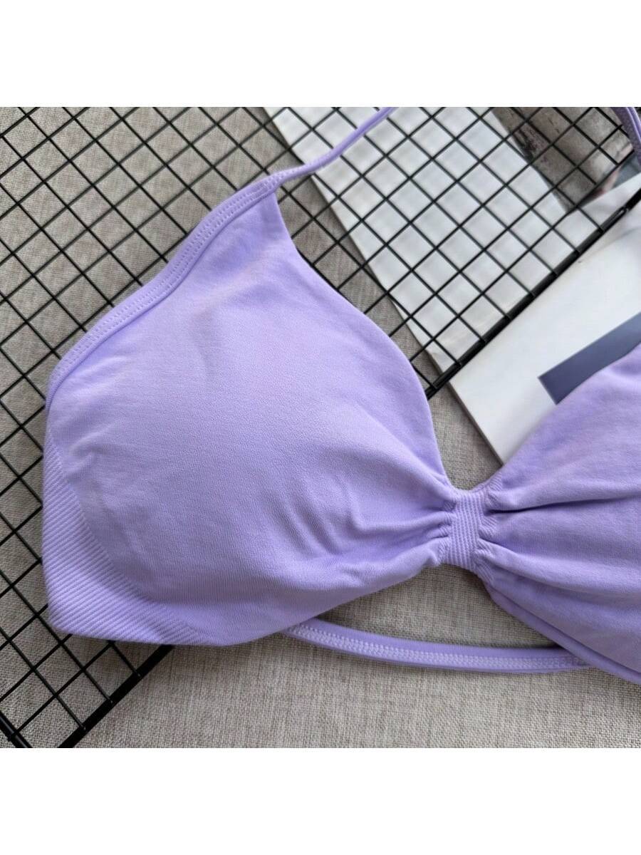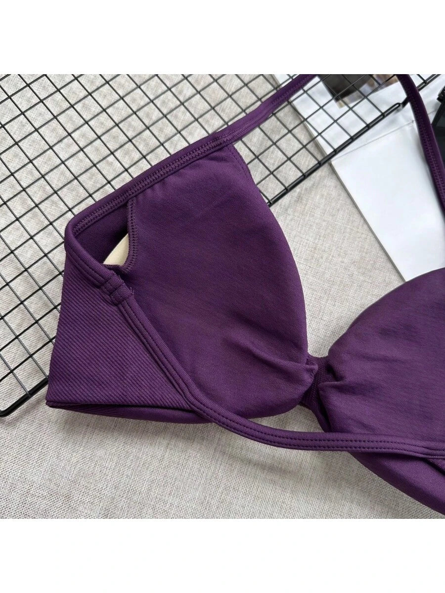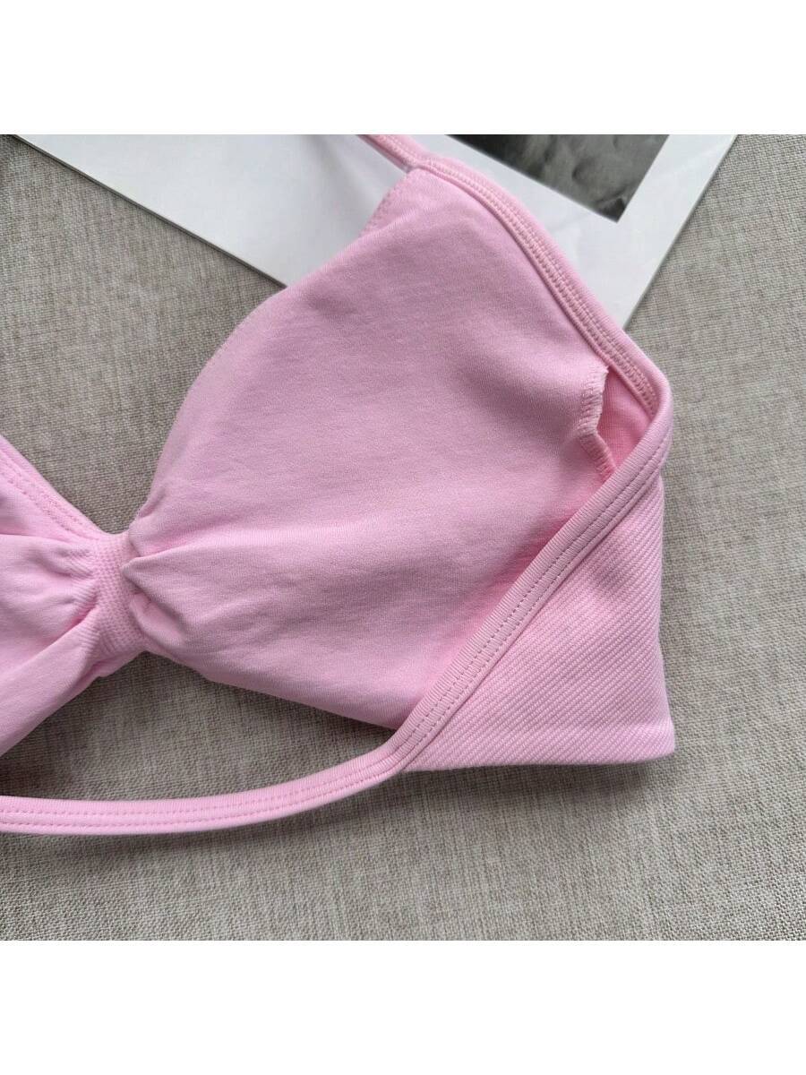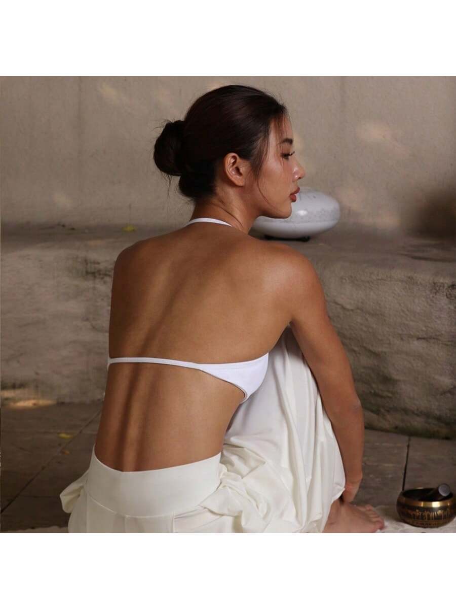 Brasier deportivo popular con tirantes para mujer, con espalda abierta, tipo halter, de soporte ligero, top corto sin costuras para gimnasio, con acolchado para yoga