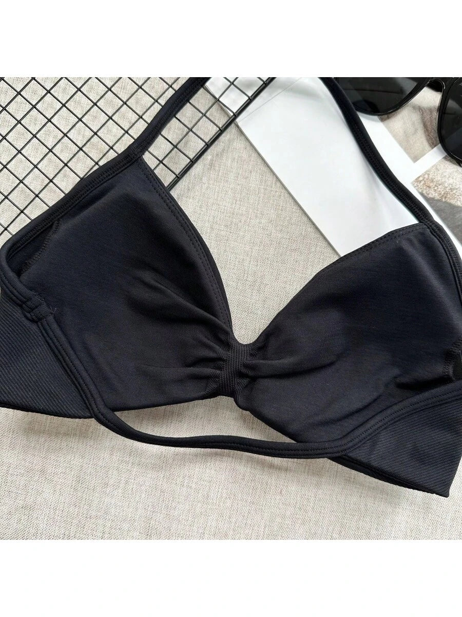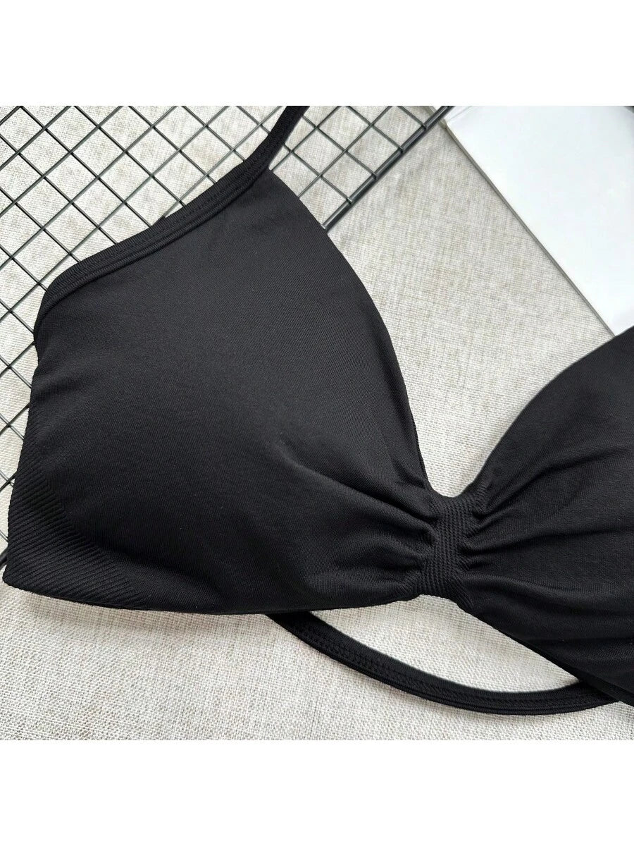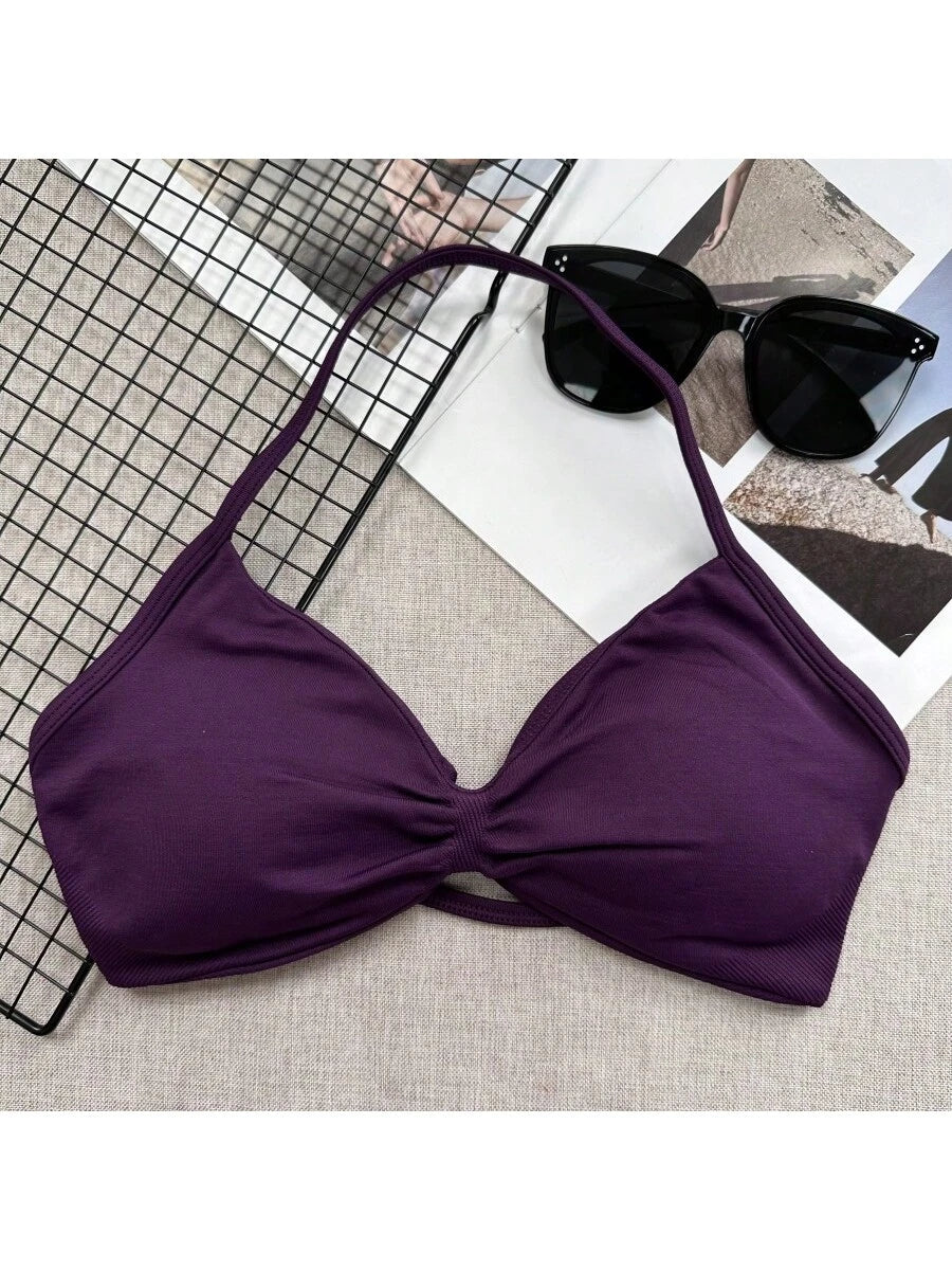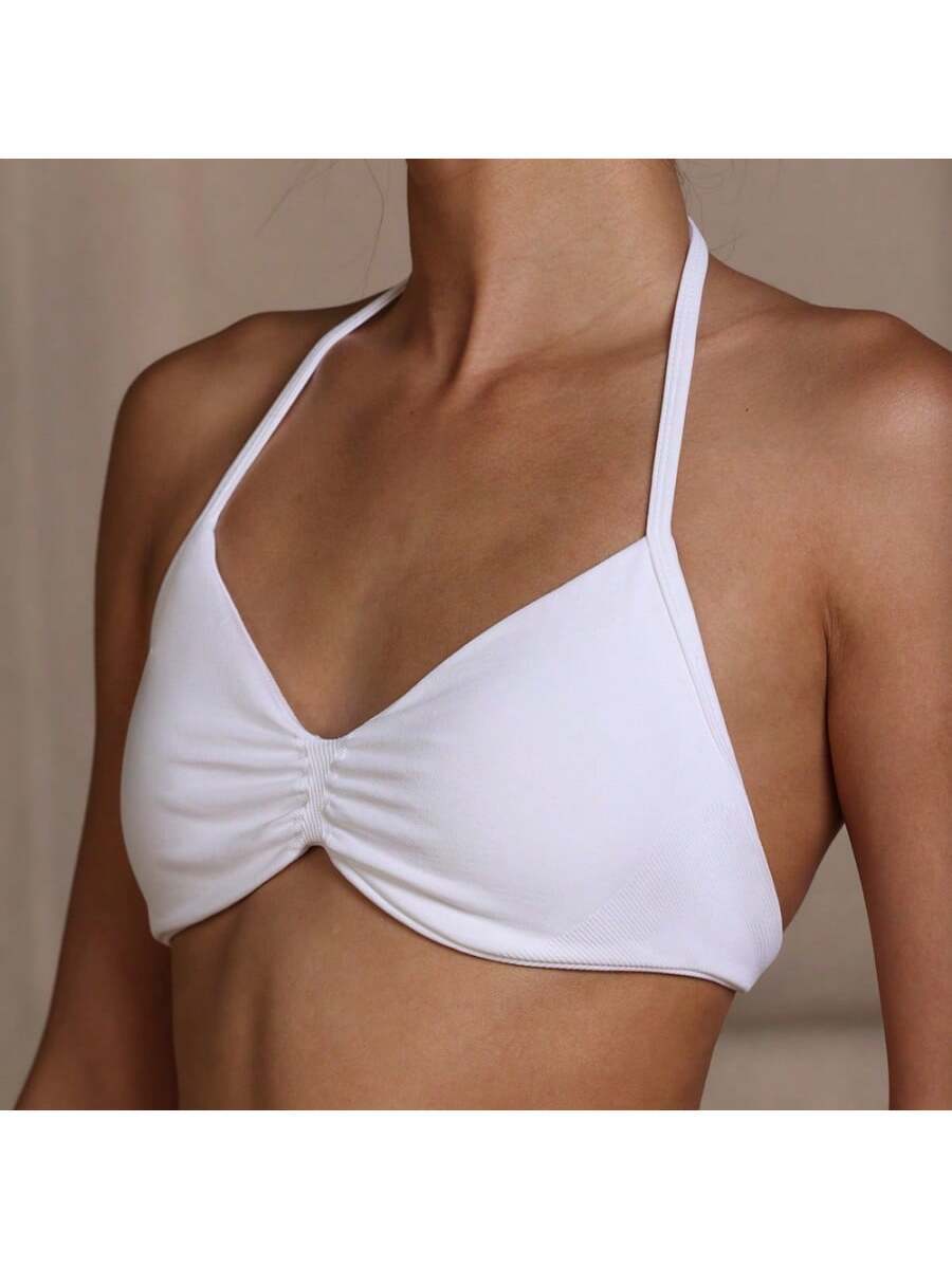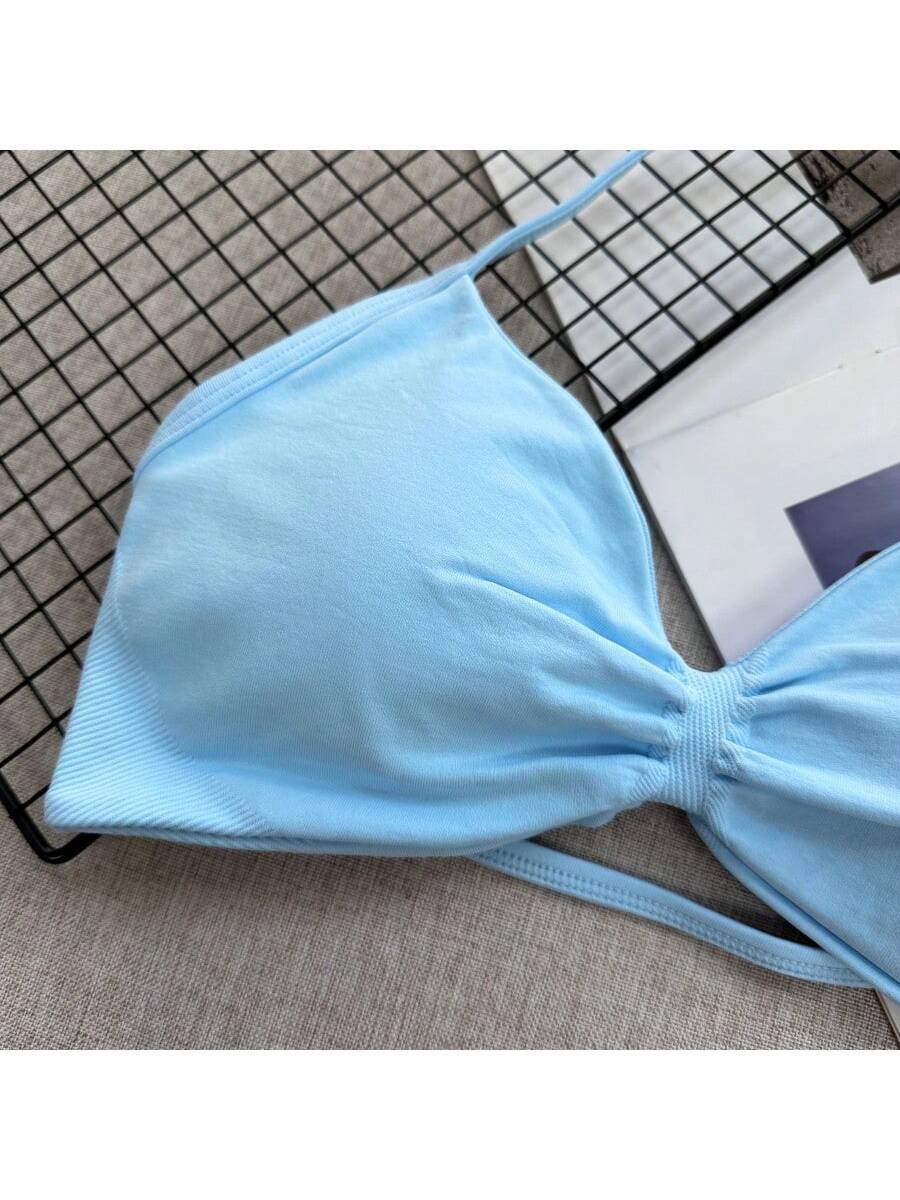 Brasier deportivo popular con tirantes para mujer, con espalda abierta, tipo halter, de soporte ligero, top corto sin costuras para gimnasio, con acolchado para yoga