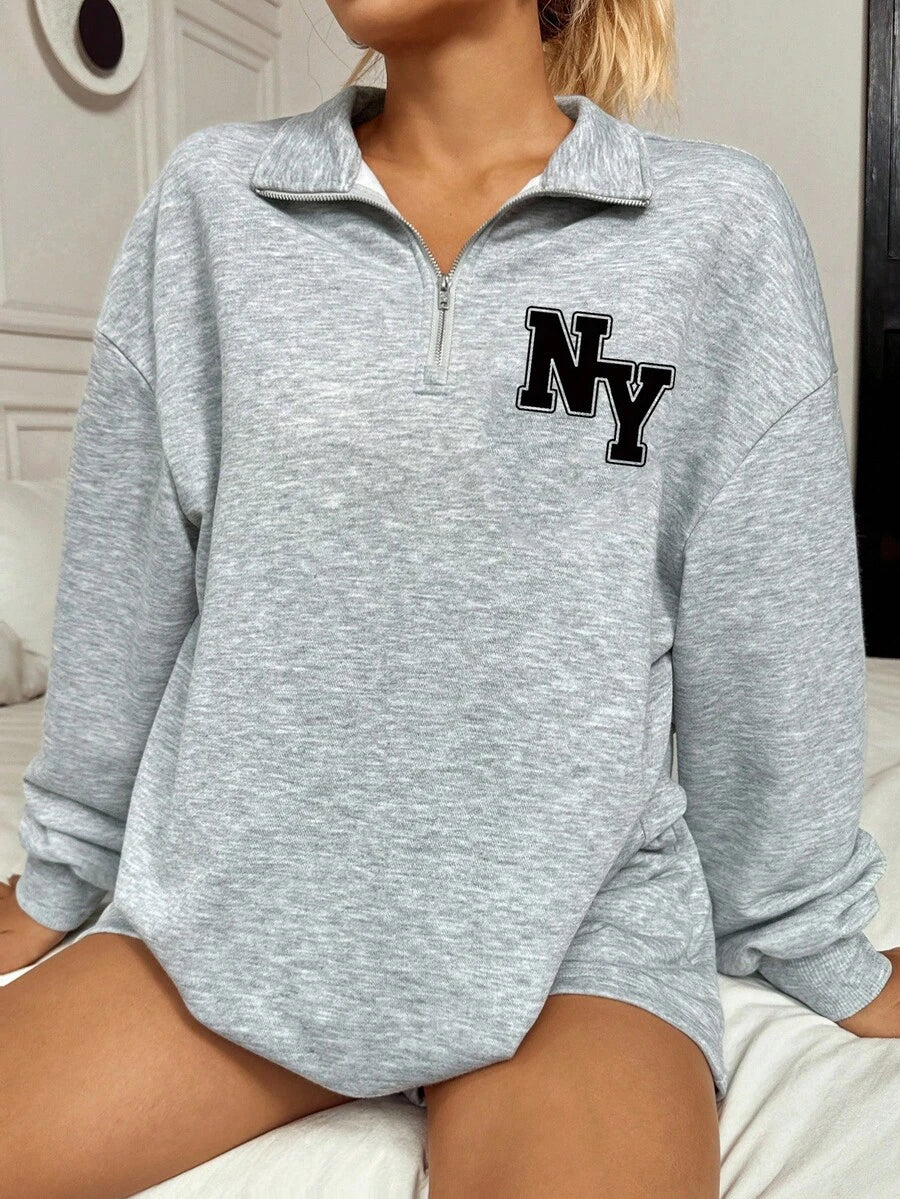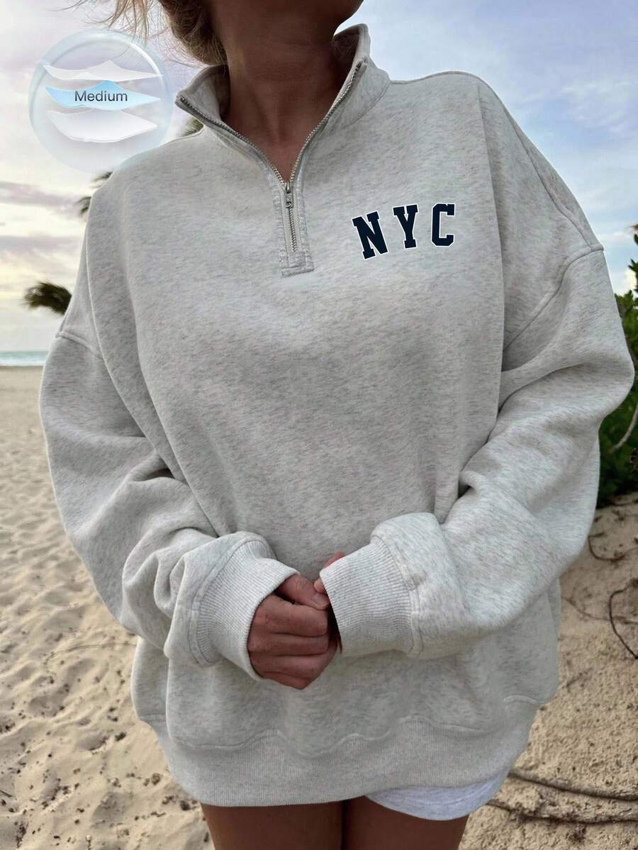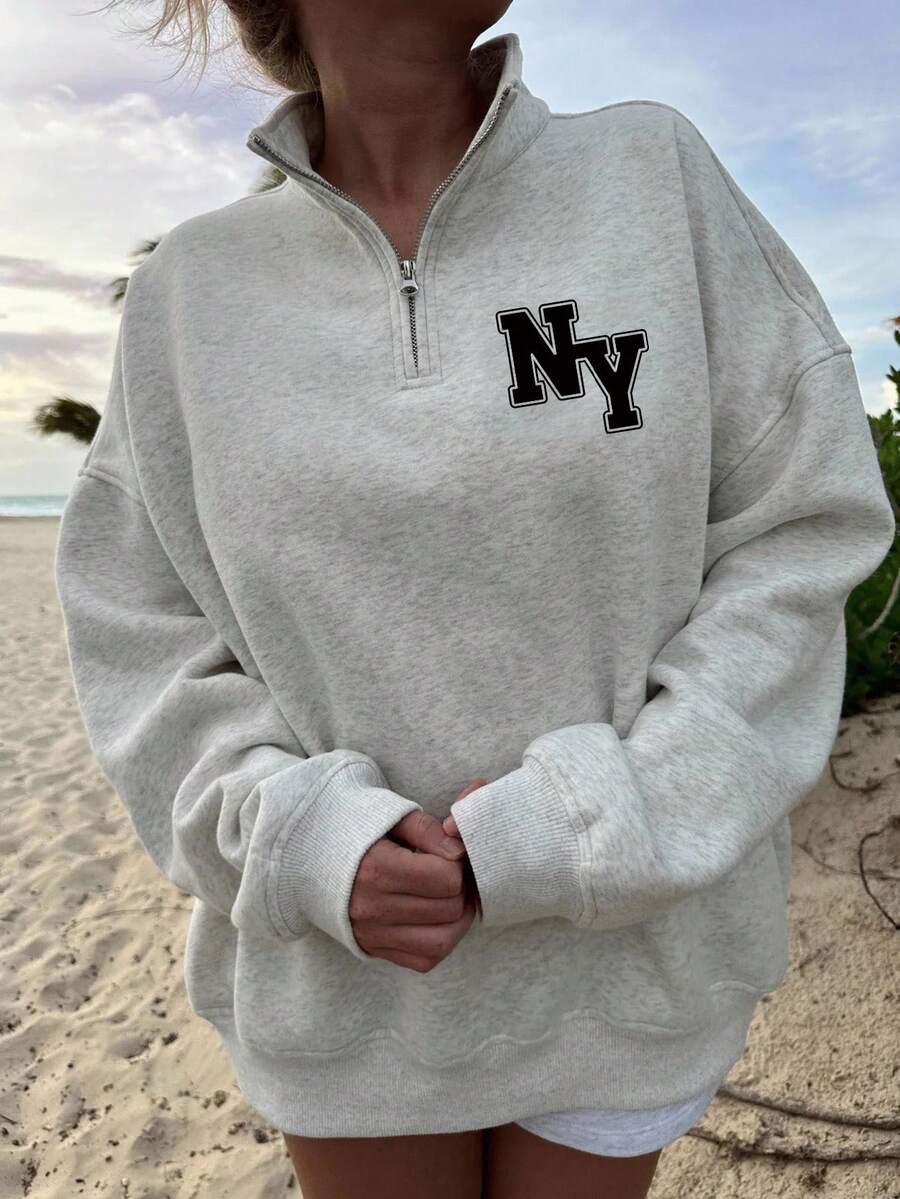 Veykashi sudadera holgada de cuello alto con media cremallera, estilo universitario retro con letra ny, estilo vintage americano, adecuada para otono/invierno, con estilo vintage, sexy, linda, y2k, bohemia, hippie, festival de musica, punk, y2k, sexy,
