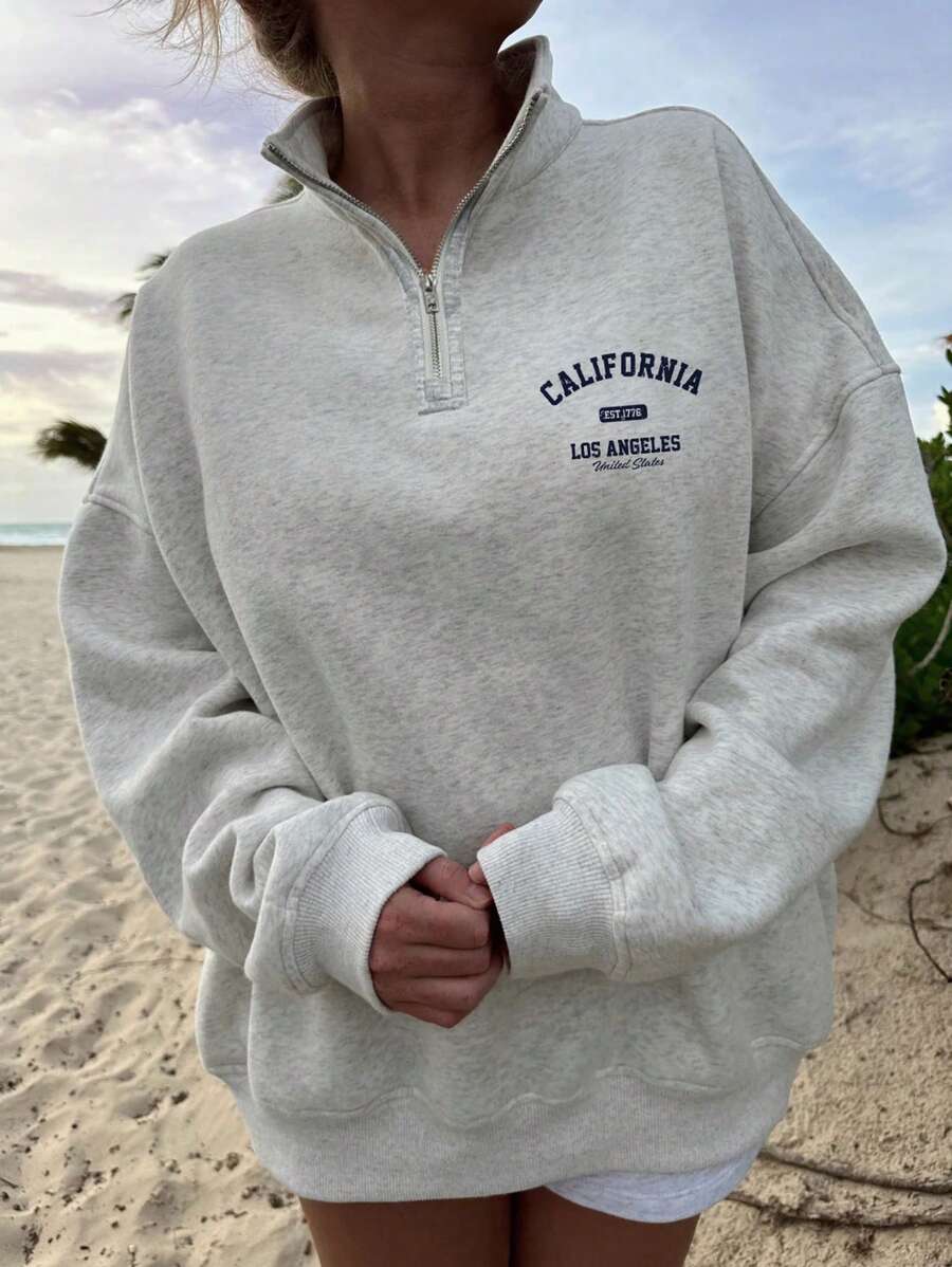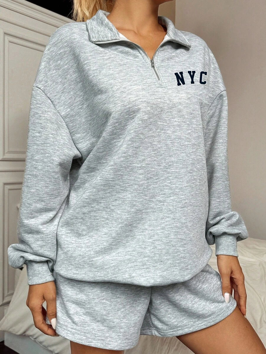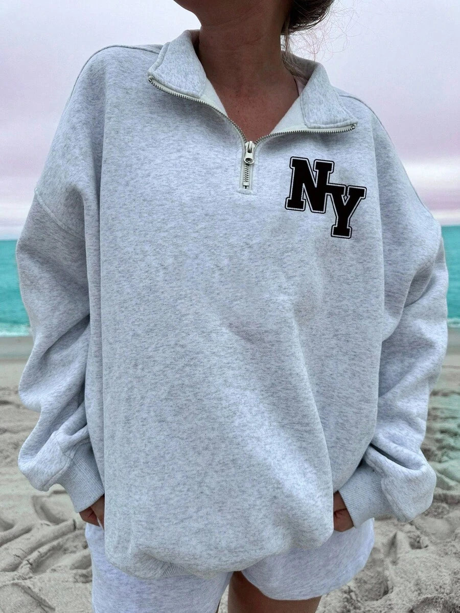 Veykashi sudadera holgada de cuello alto con media cremallera, estilo universitario retro con letra ny, estilo vintage americano, adecuada para otono/invierno, con estilo vintage, sexy, linda, y2k, bohemia, hippie, festival de musica, punk, y2k, sexy,