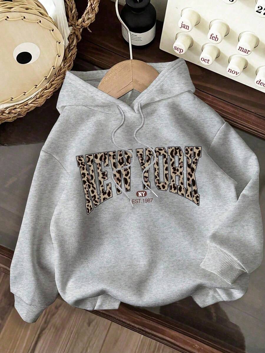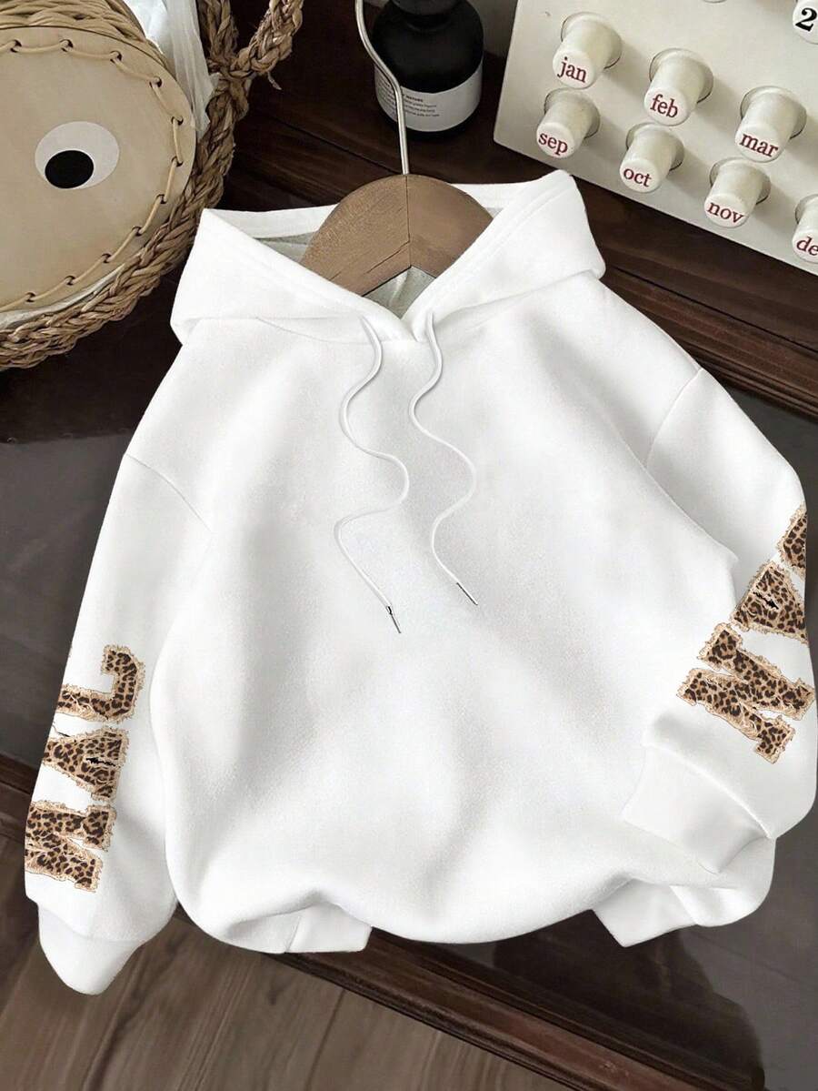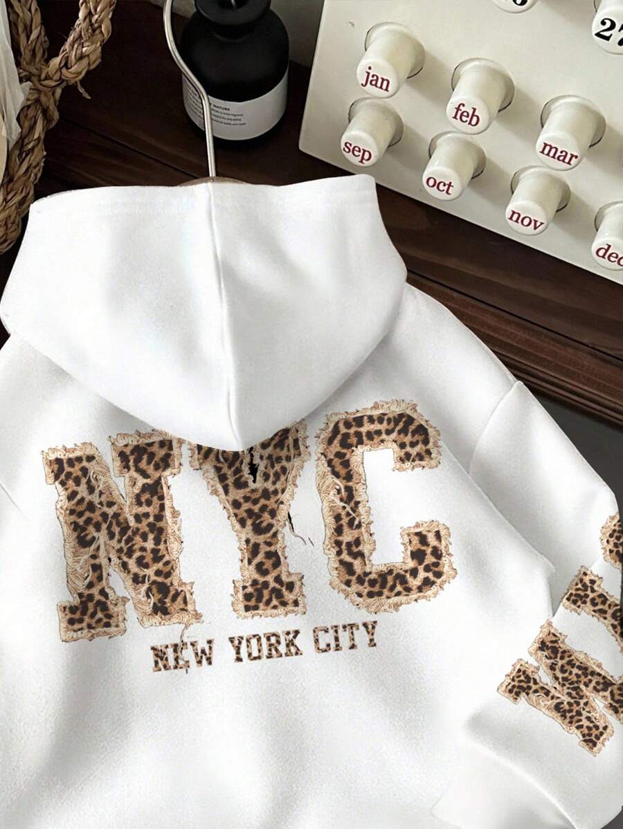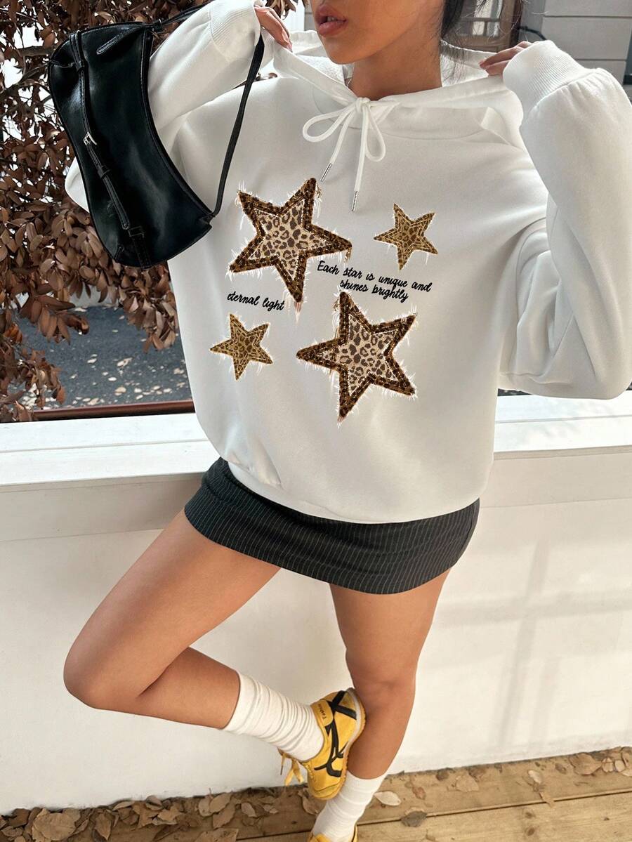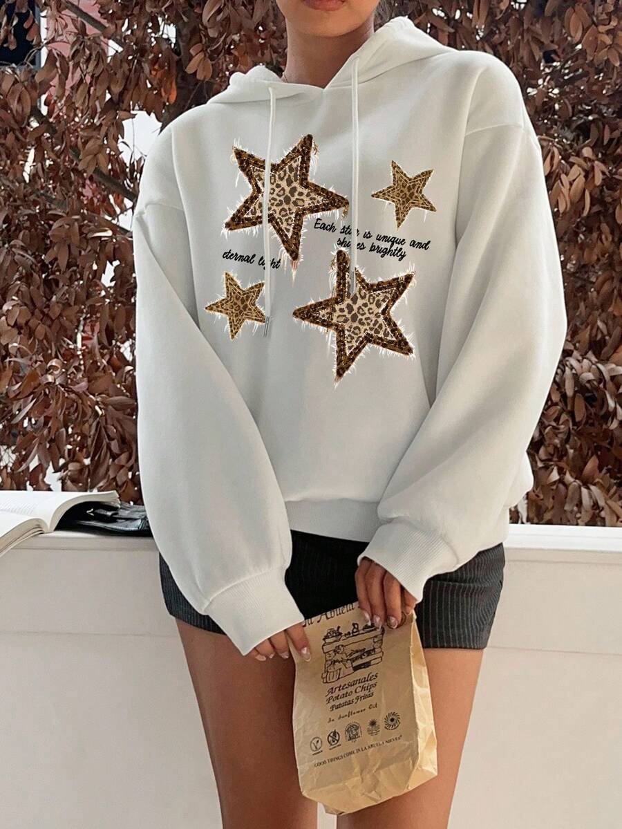 Attitoon sudadera con buzos con capucha de forro polar grueso y ajuste holgado con estampado de leopardo y estrella en blanco para mujer, talla grande
