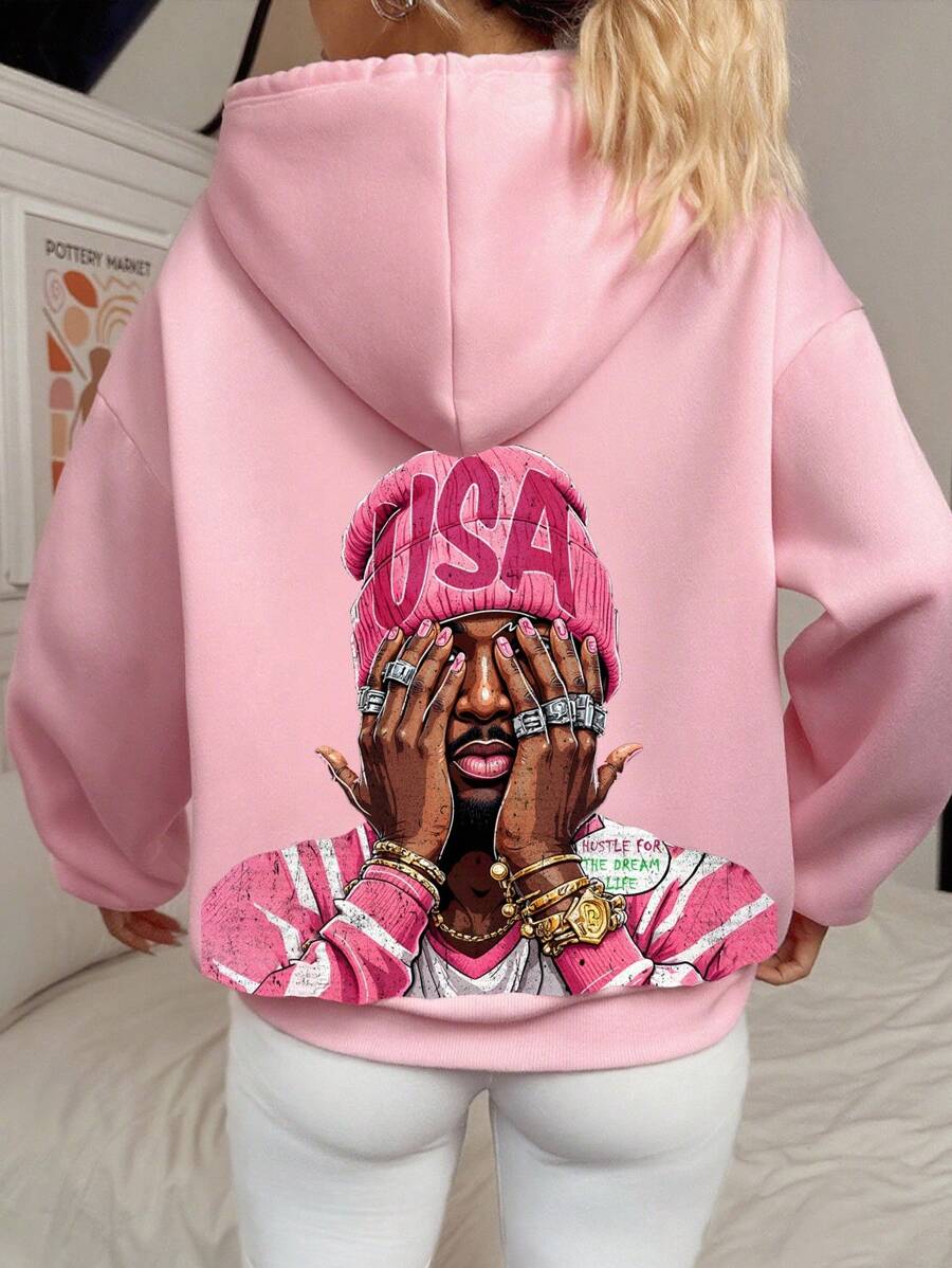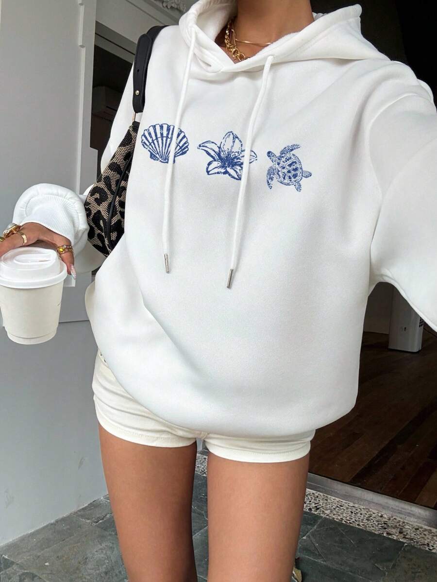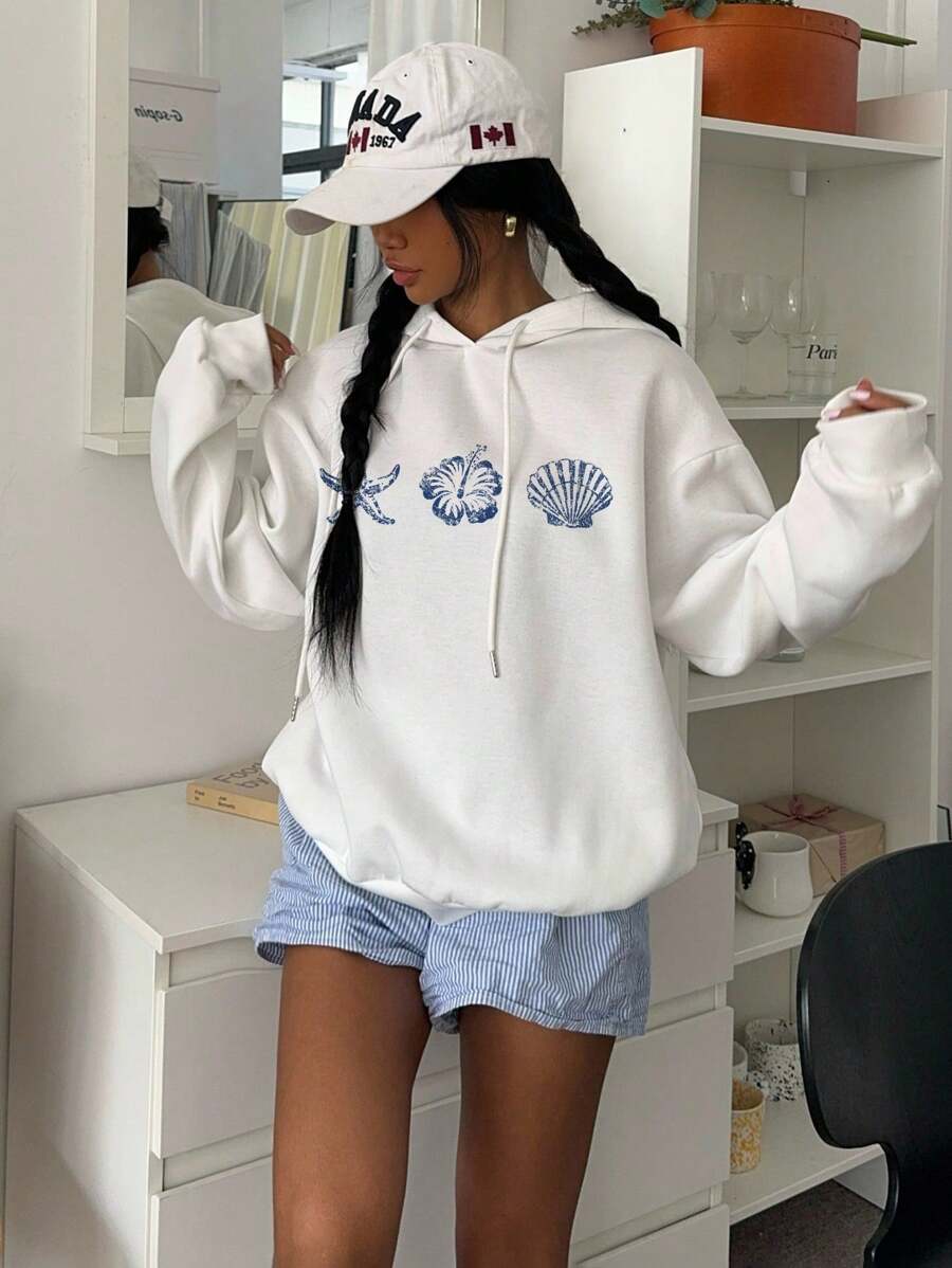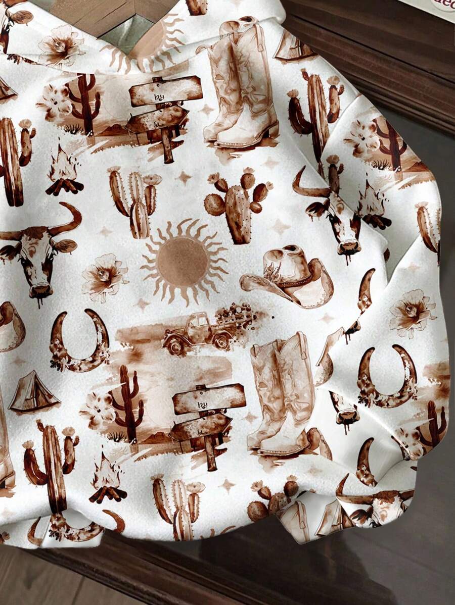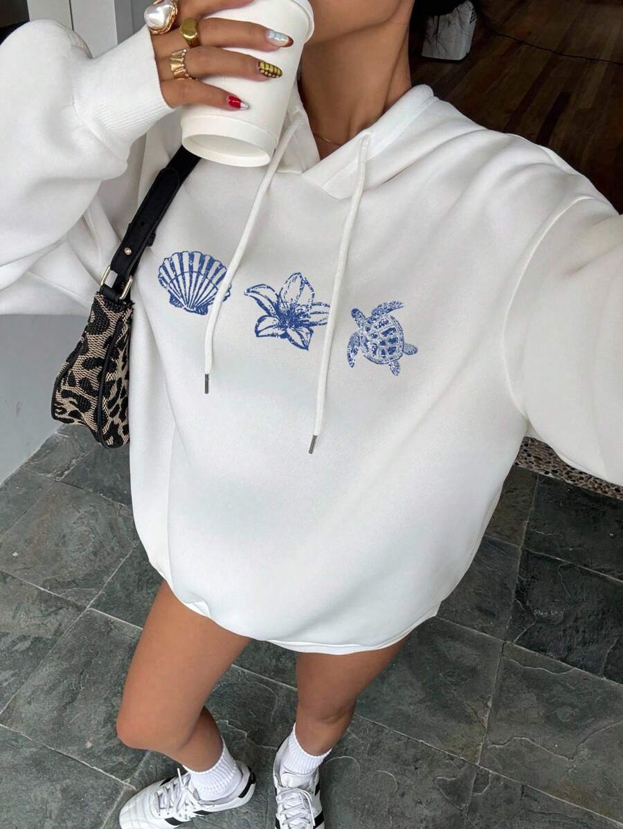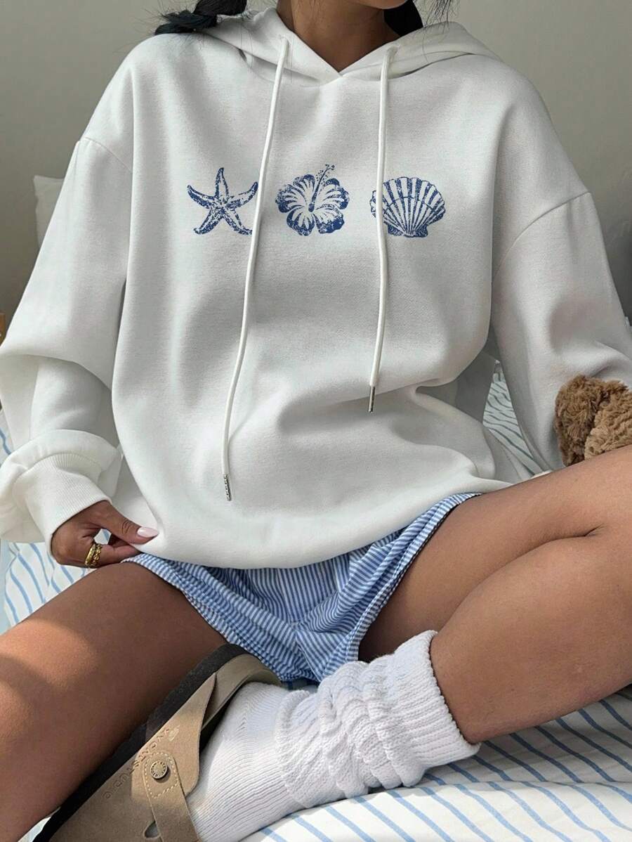 Attitoon sudadera con buzos con capucha de forro polar grueso y ajuste holgado con estampado de leopardo y estrella en blanco para mujer, talla grande