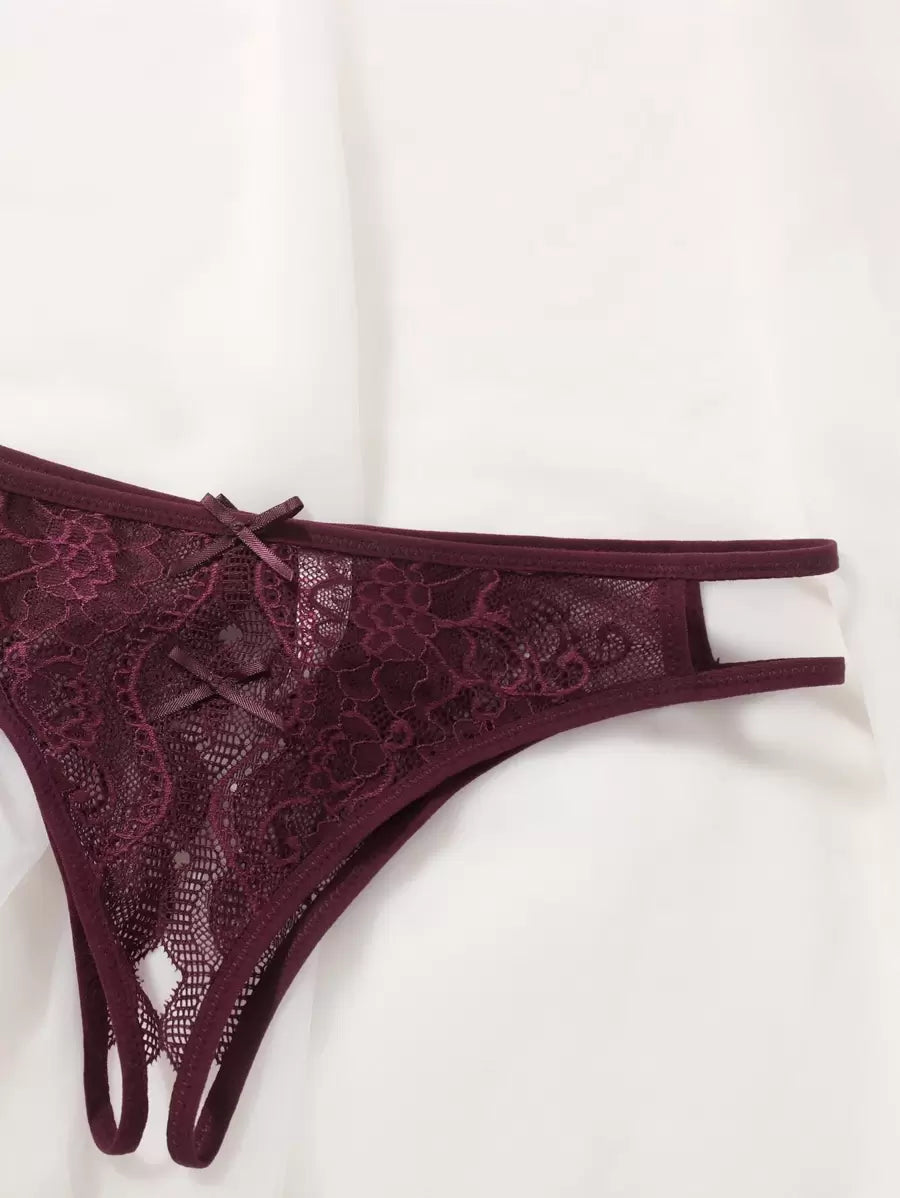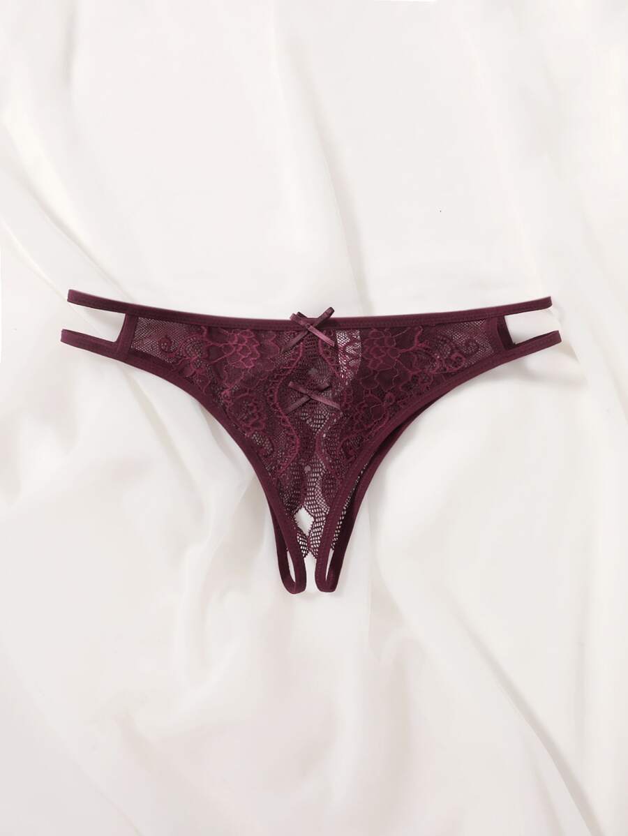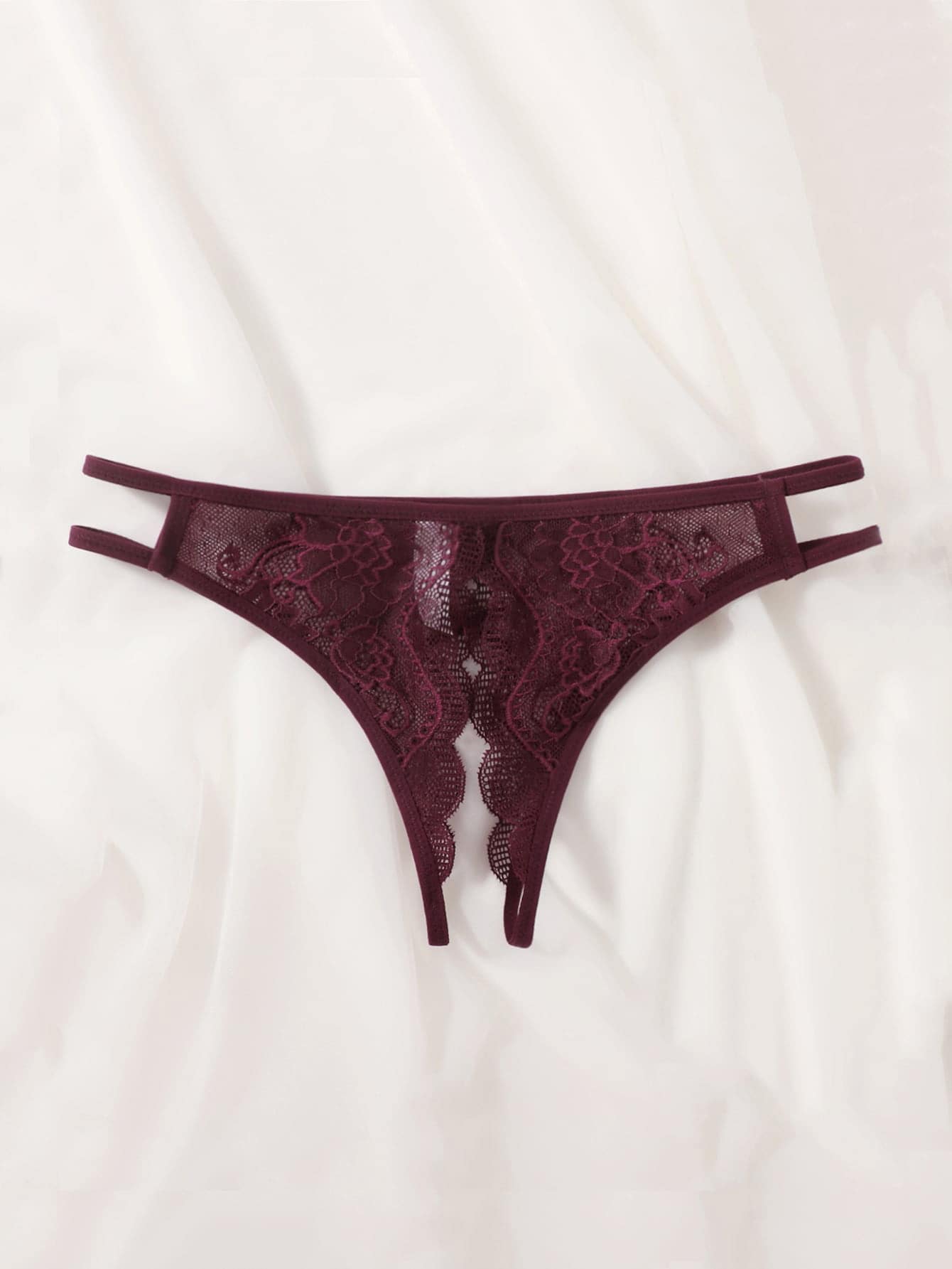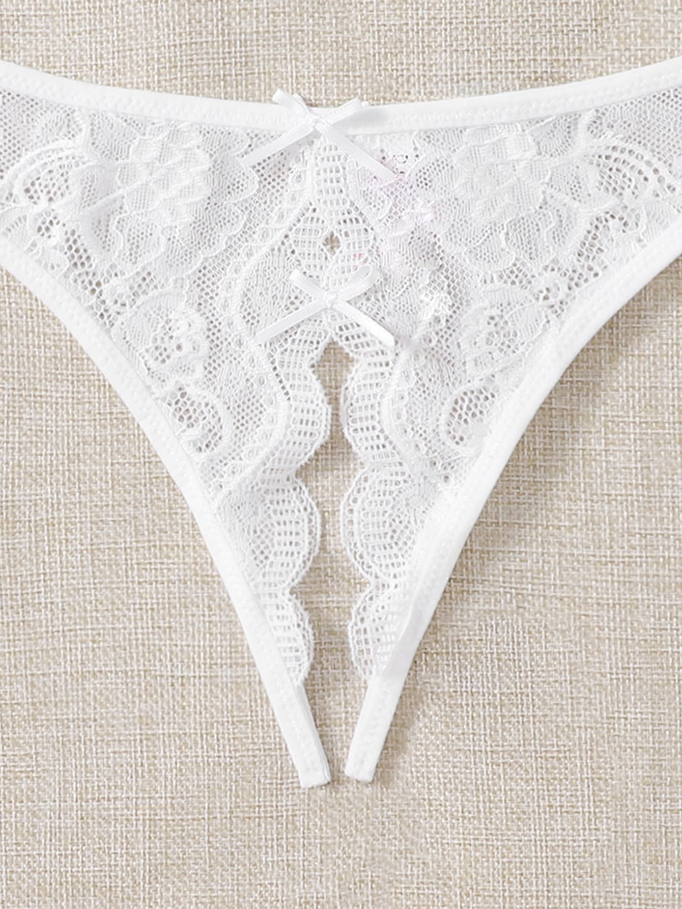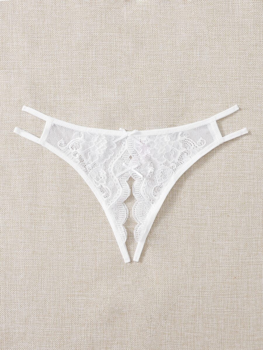 Lenceria en forma de pantie con encaje floral y abertura en la entrepierna