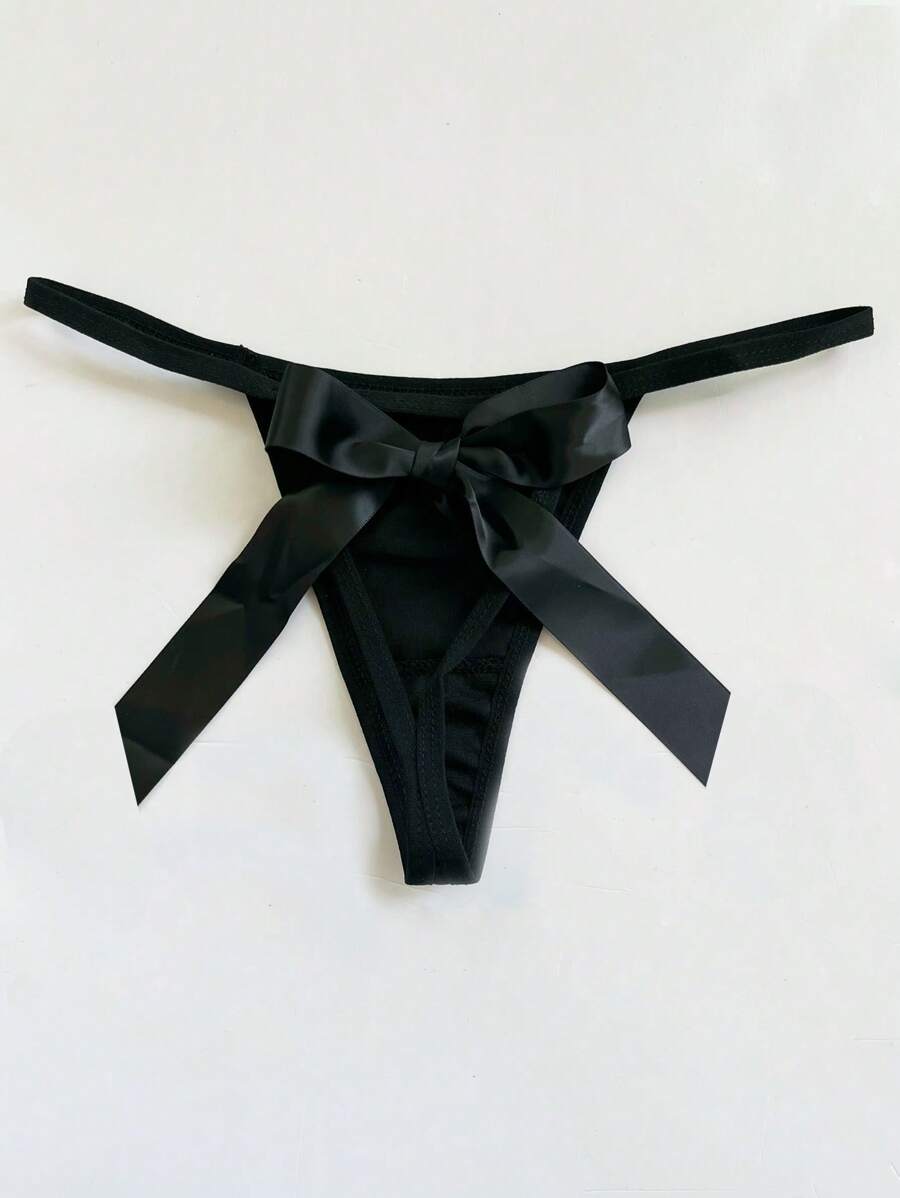 Lenceria de tanga sexy con lazo en la espalda de color liso
