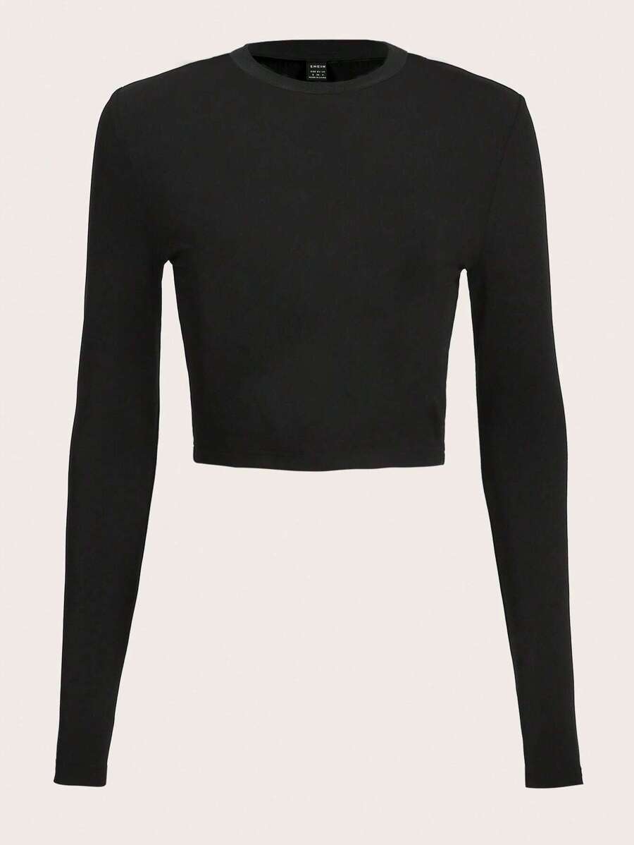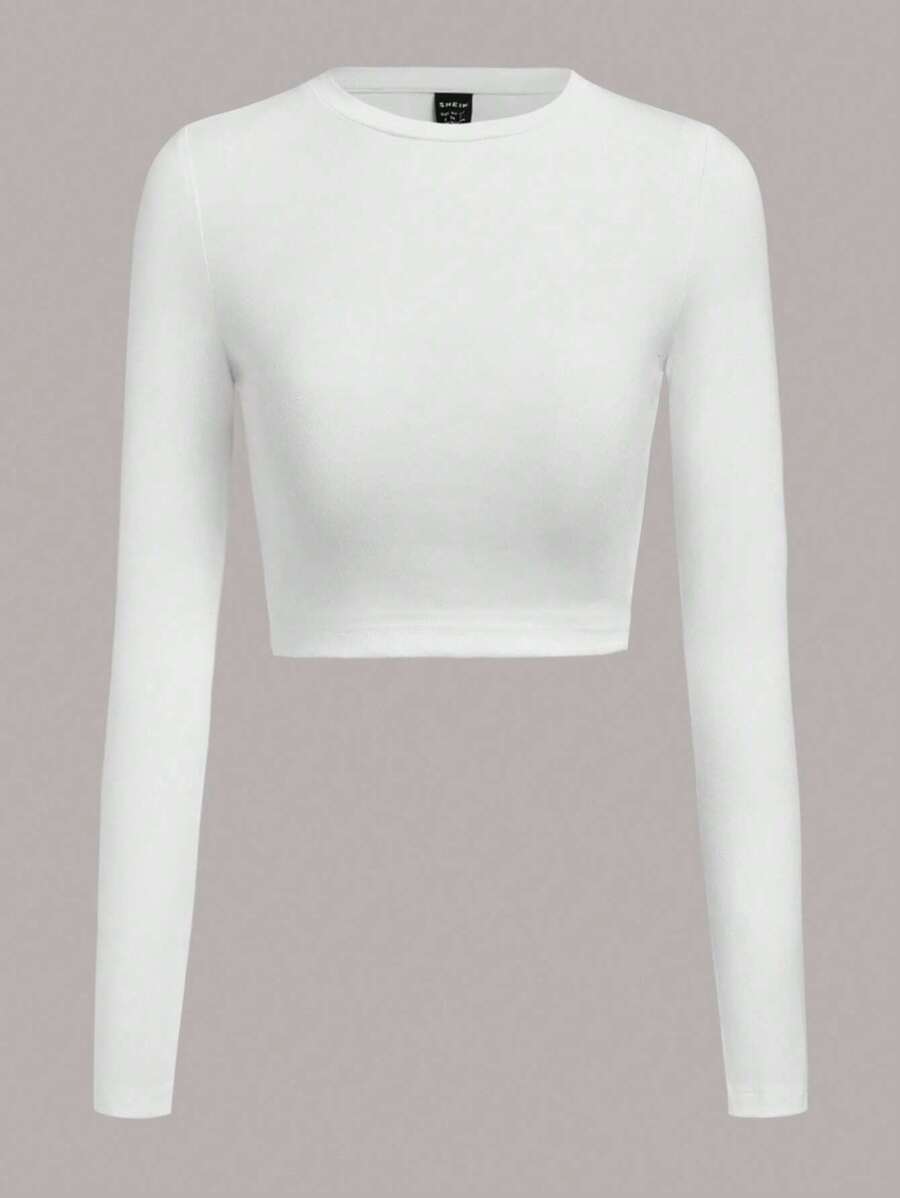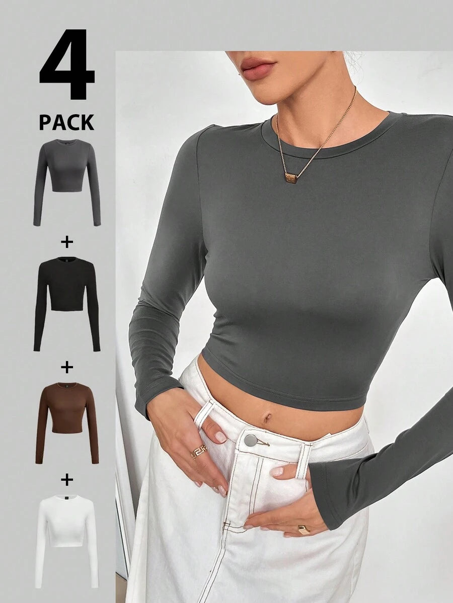 4 piezas/conjunto camiseta corta de manga larga con cuello redondo y estilo casual para mujer