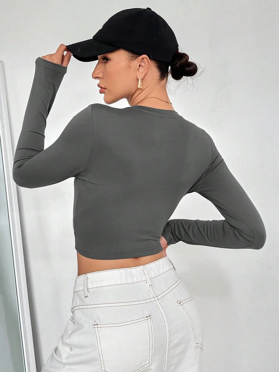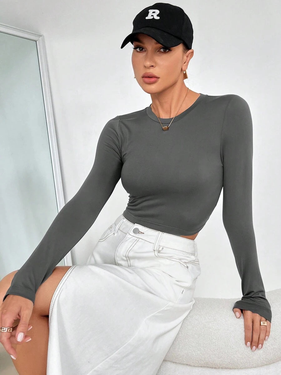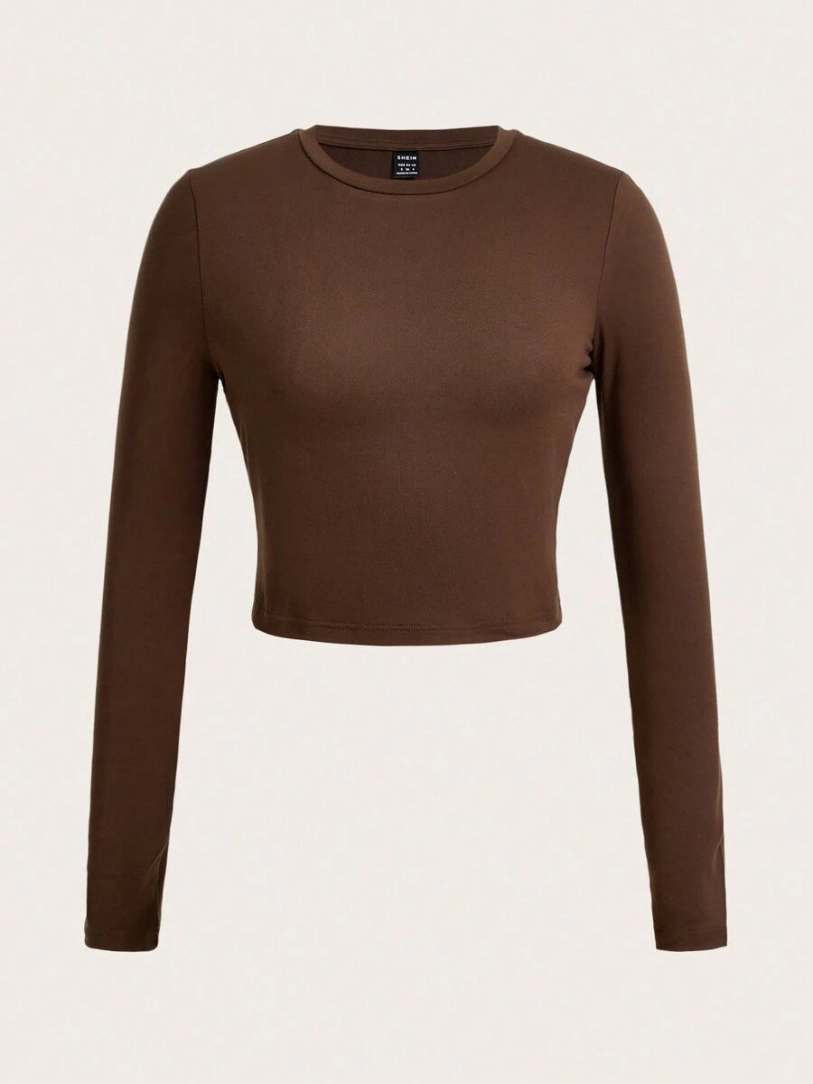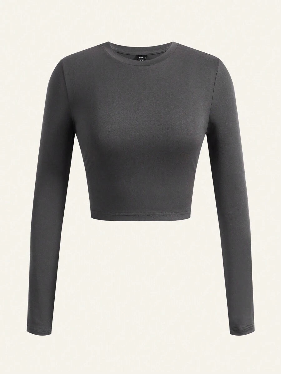 4 piezas/conjunto camiseta corta de manga larga con cuello redondo y estilo casual para mujer
