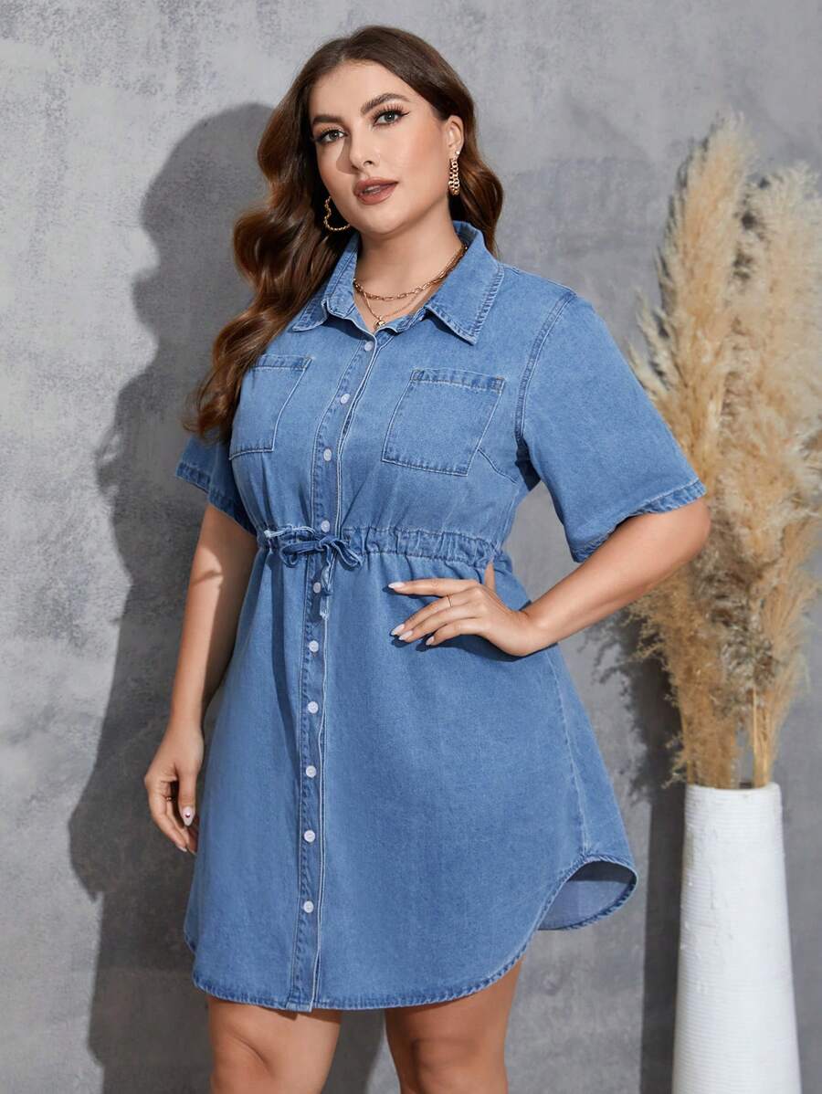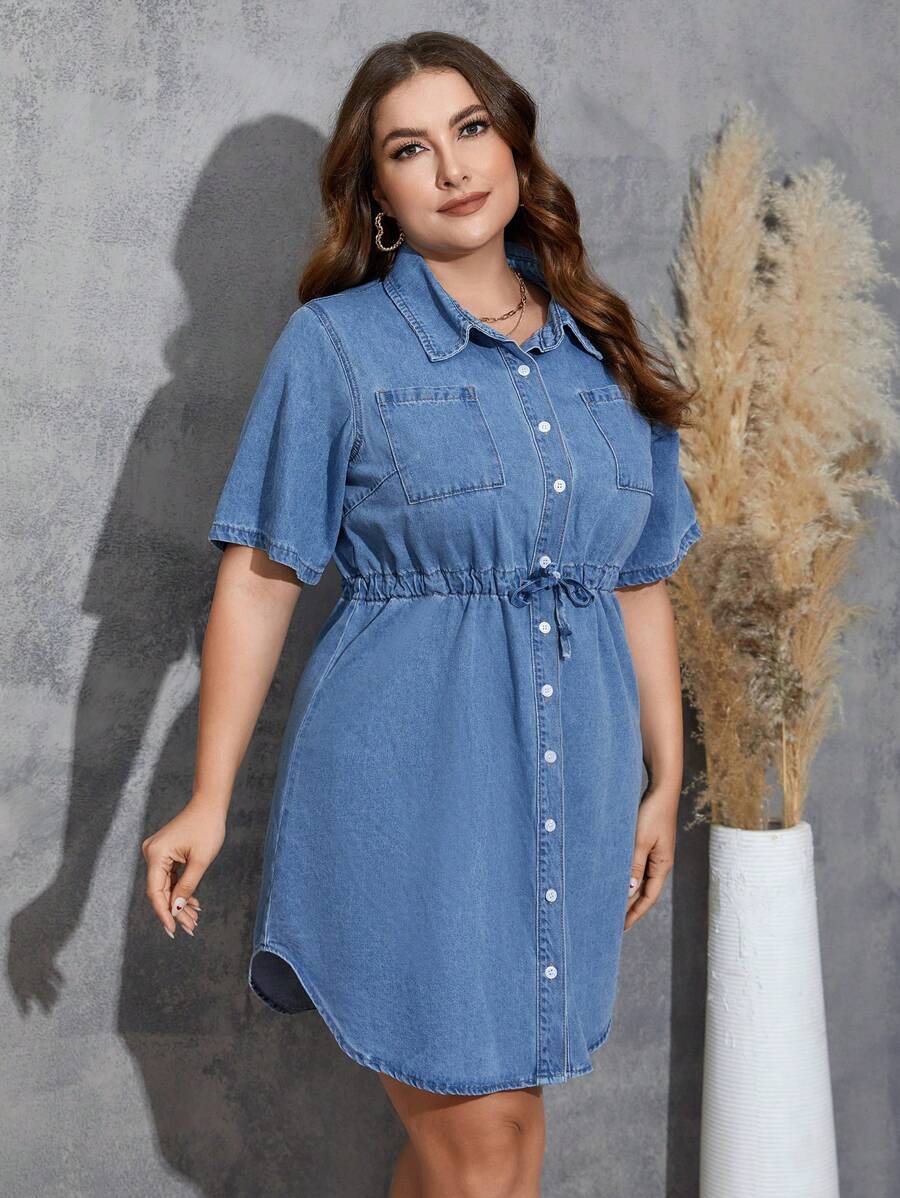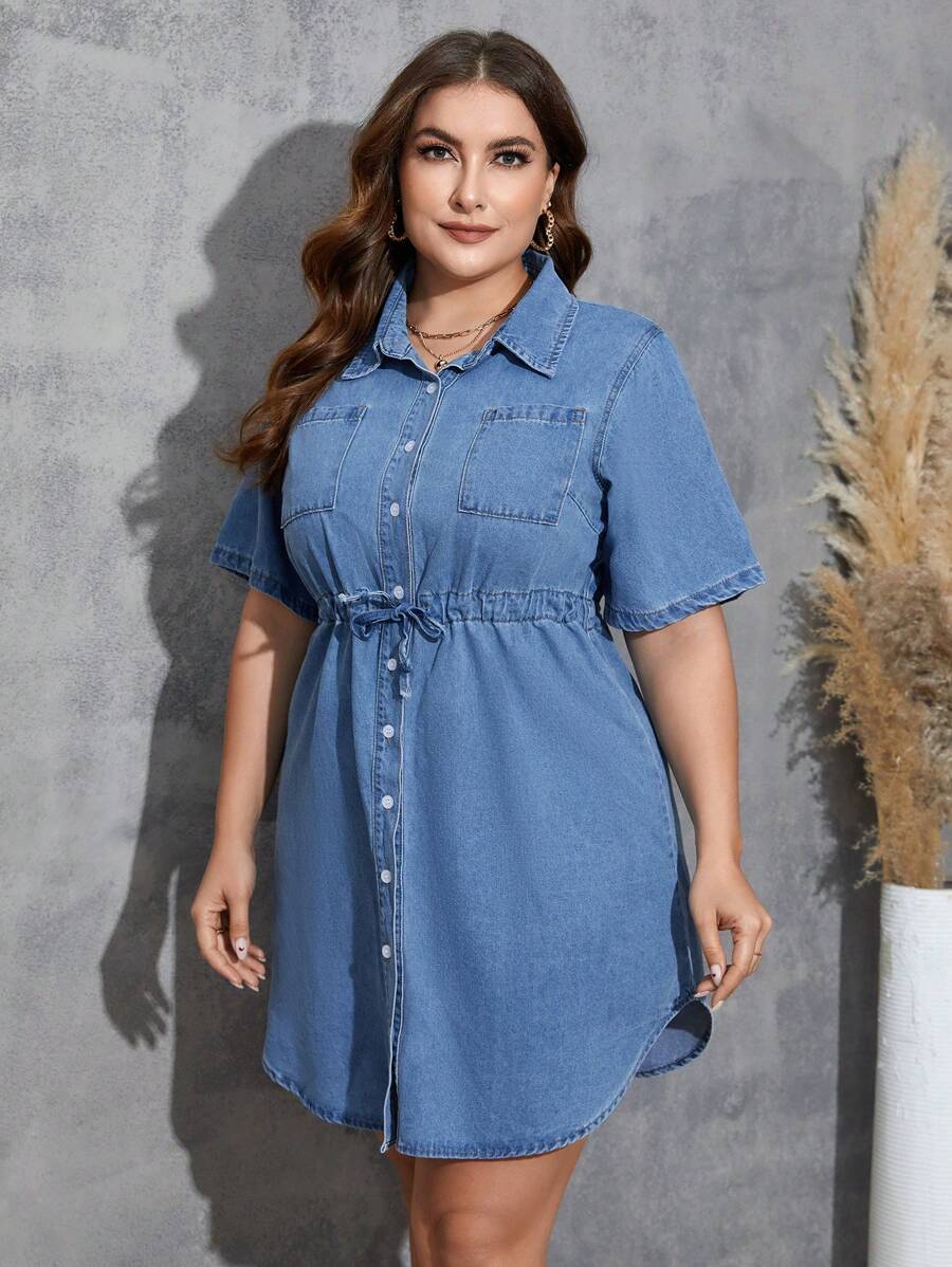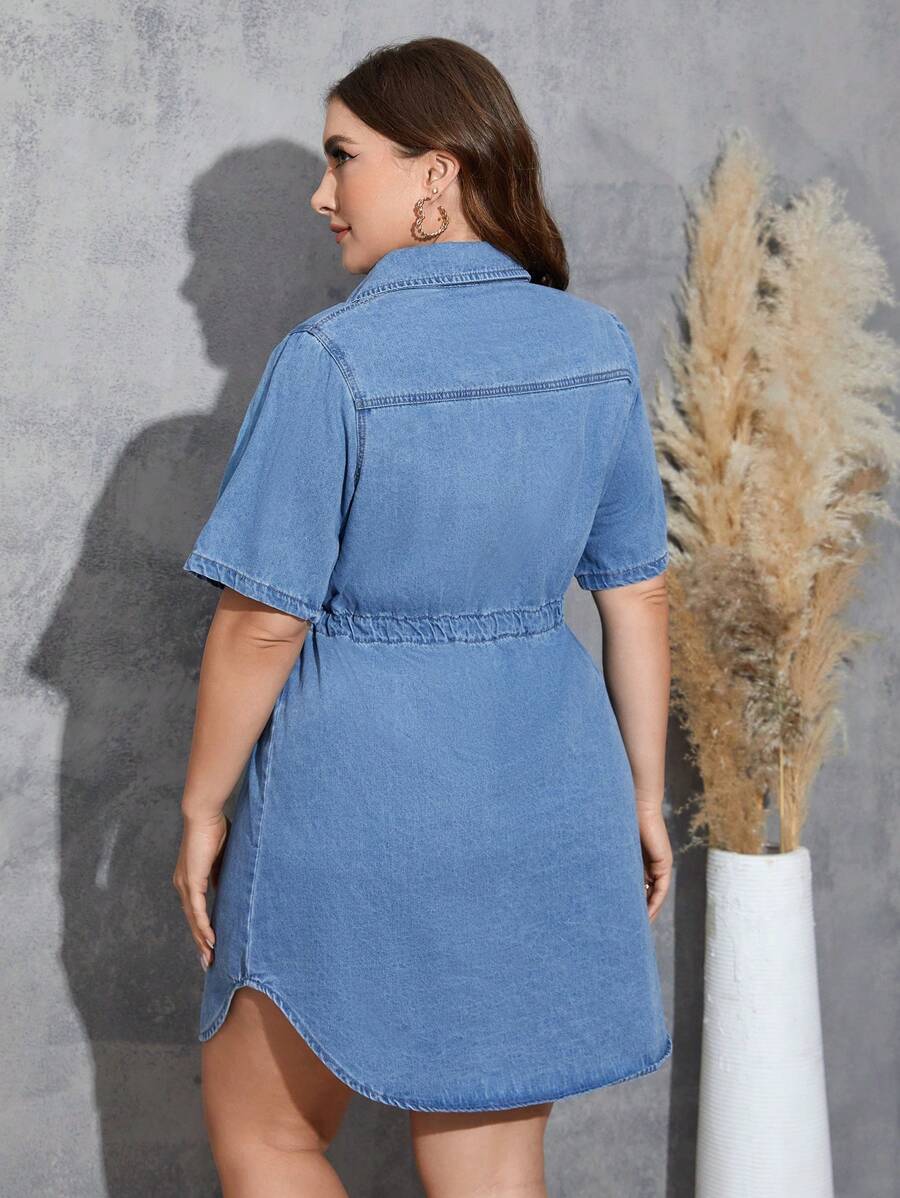 Vestido de camisa de mezclilla de talla grande sin elasticidad