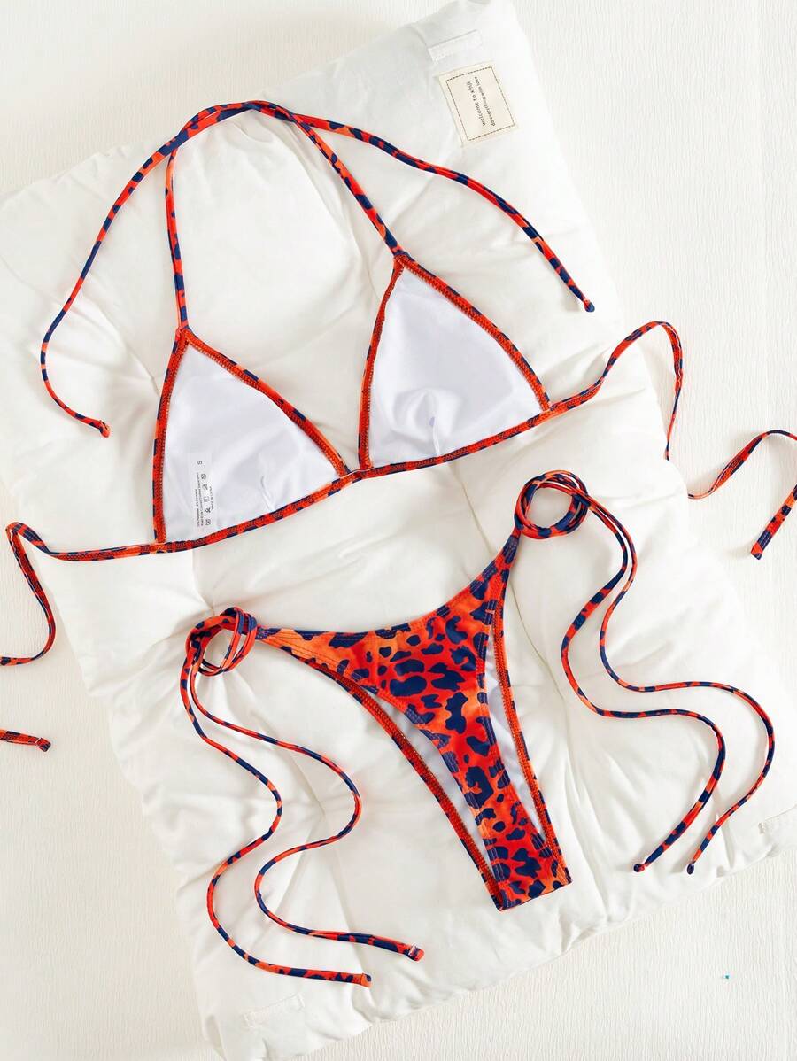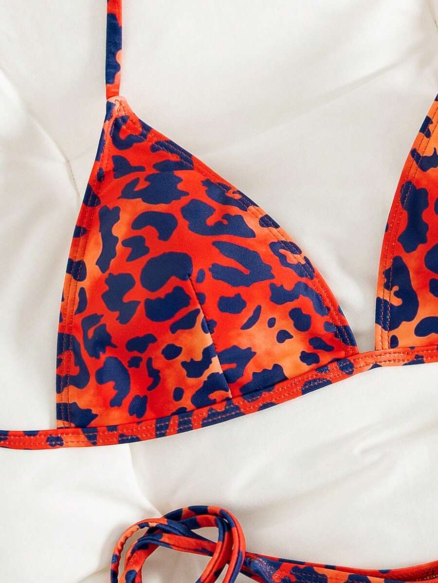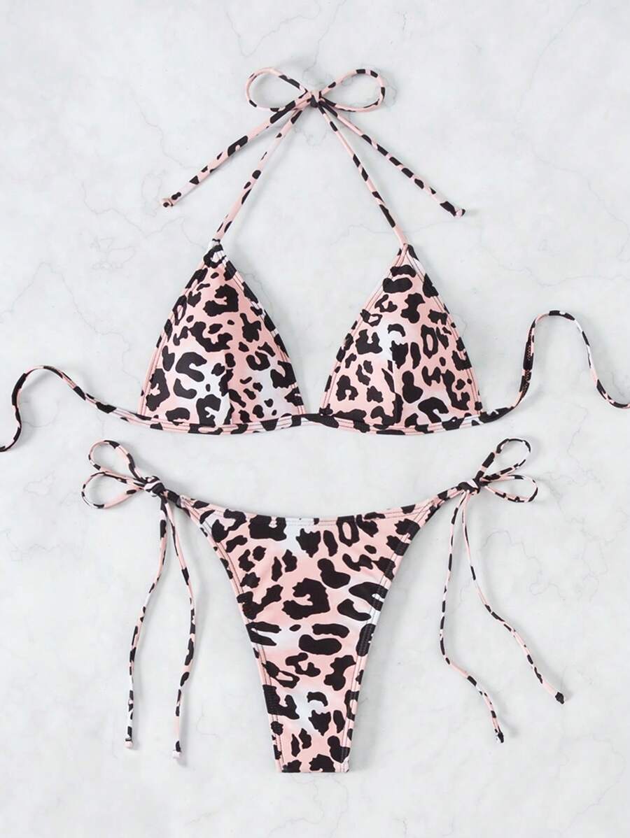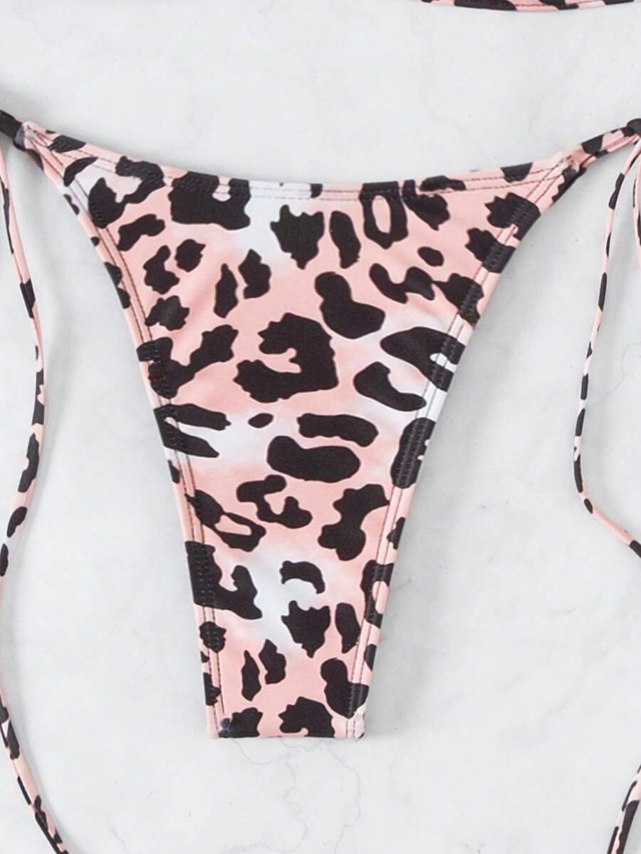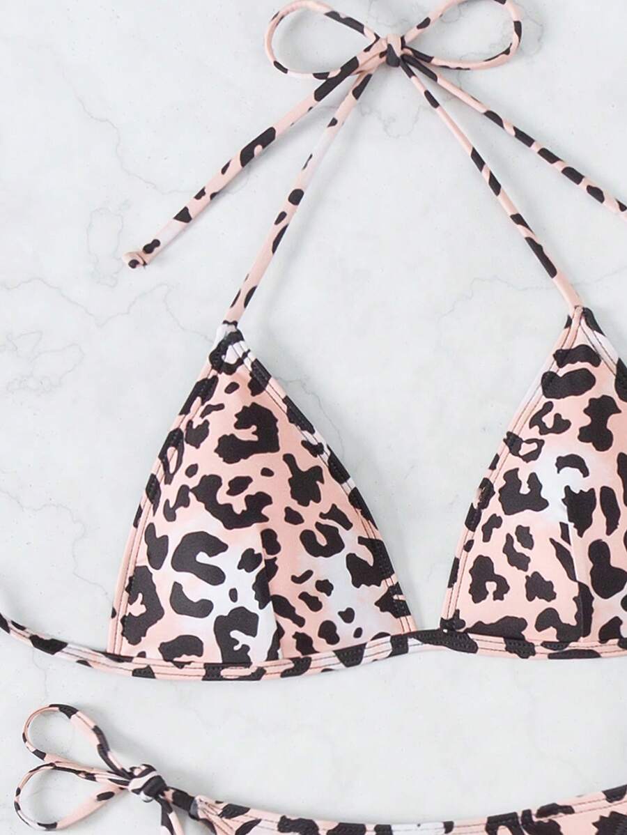 2 piezas conjunto de bikini sexy con estampado de leopardo para vacaciones en la playa, incluye tazas triangulares con estampado aleatorio de verano