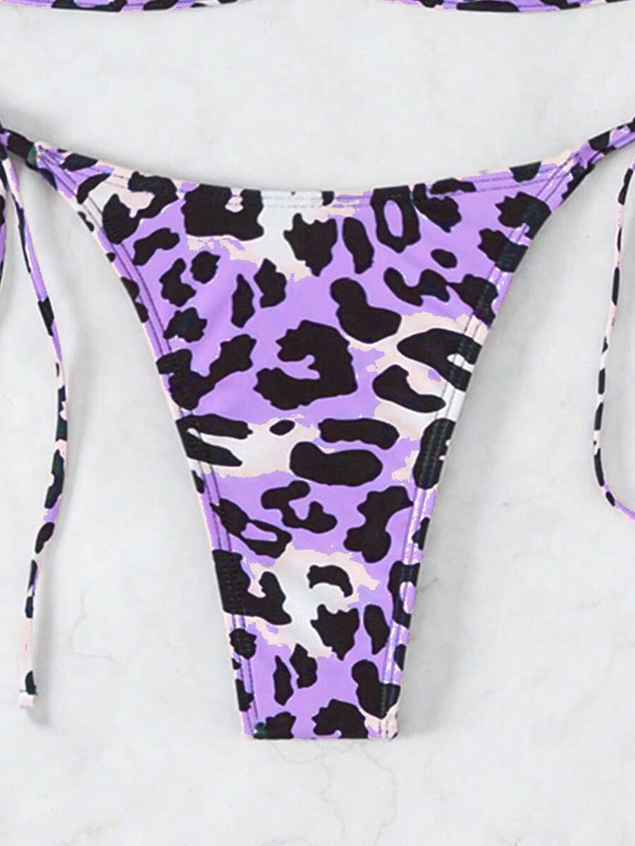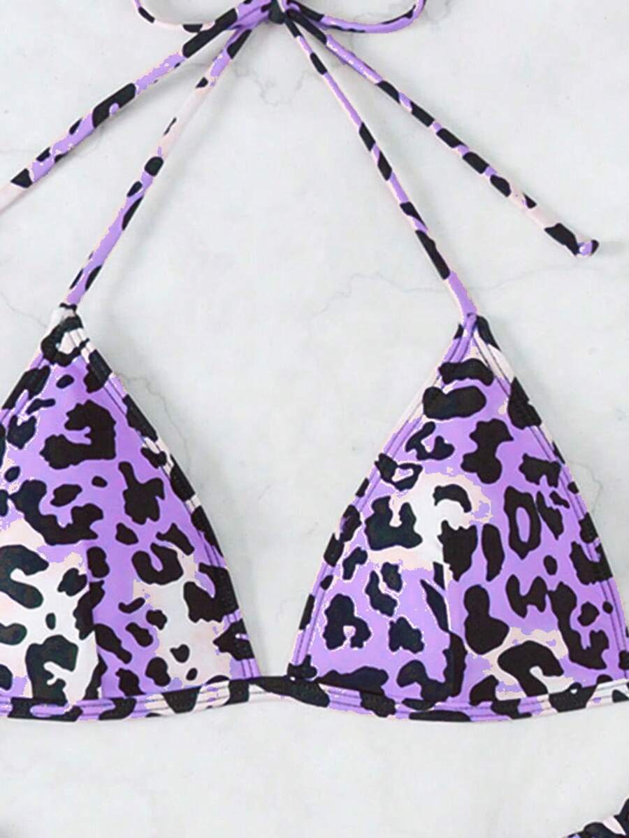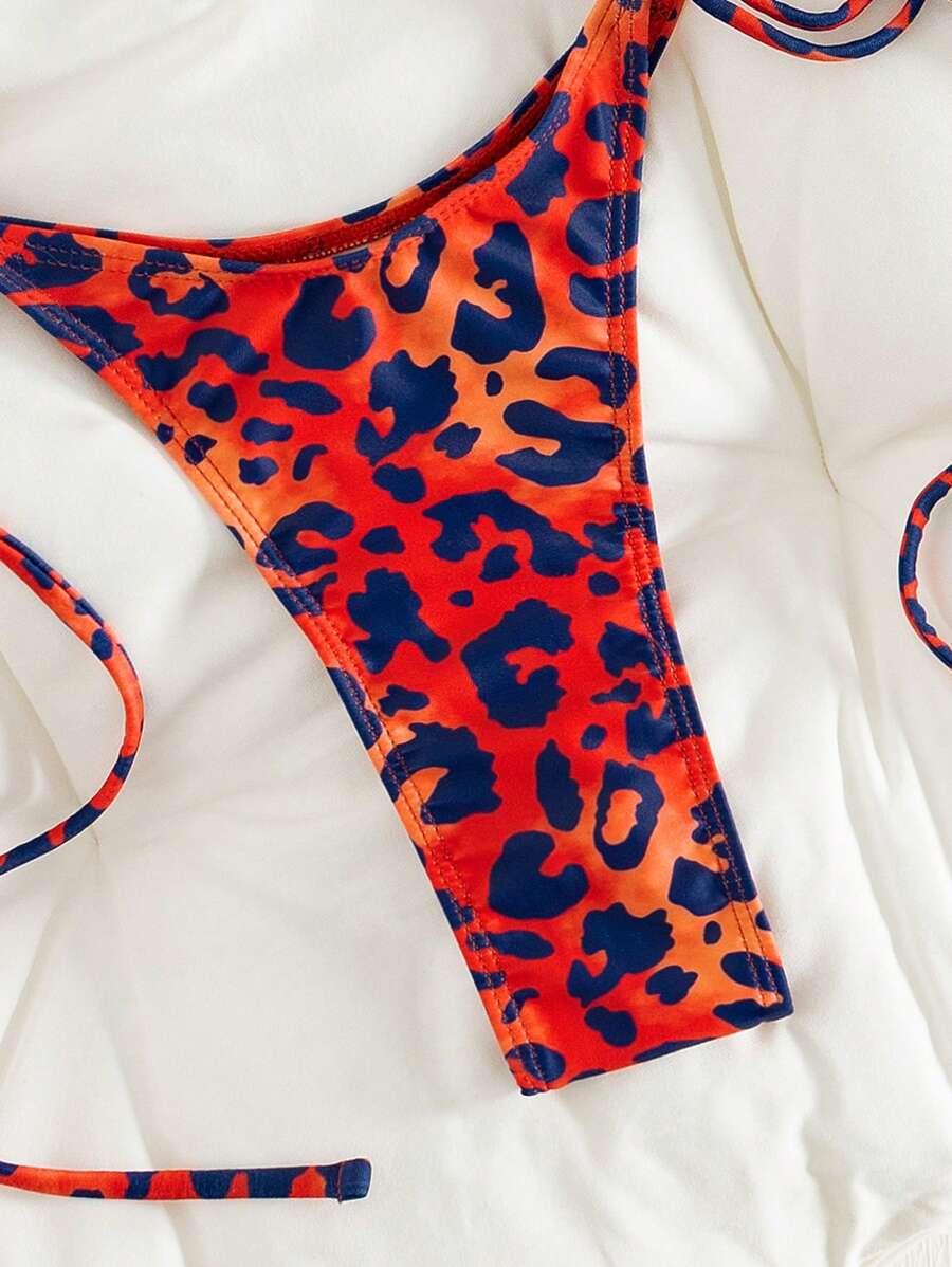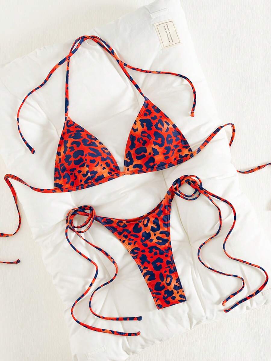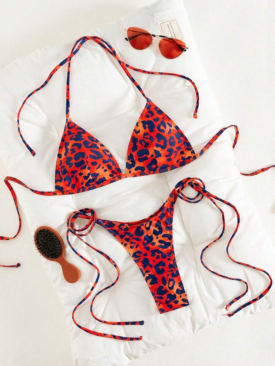 2 piezas conjunto de bikini sexy con estampado de leopardo para vacaciones en la playa, incluye tazas triangulares con estampado aleatorio de verano