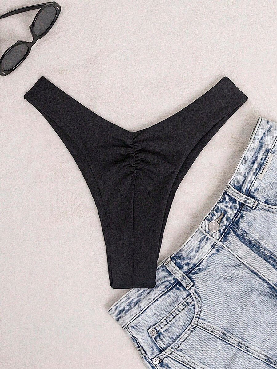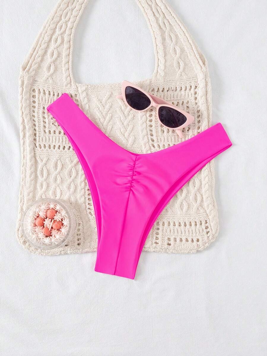 Bottom de bikini unicolor con fruncido para verano, playa, piscina