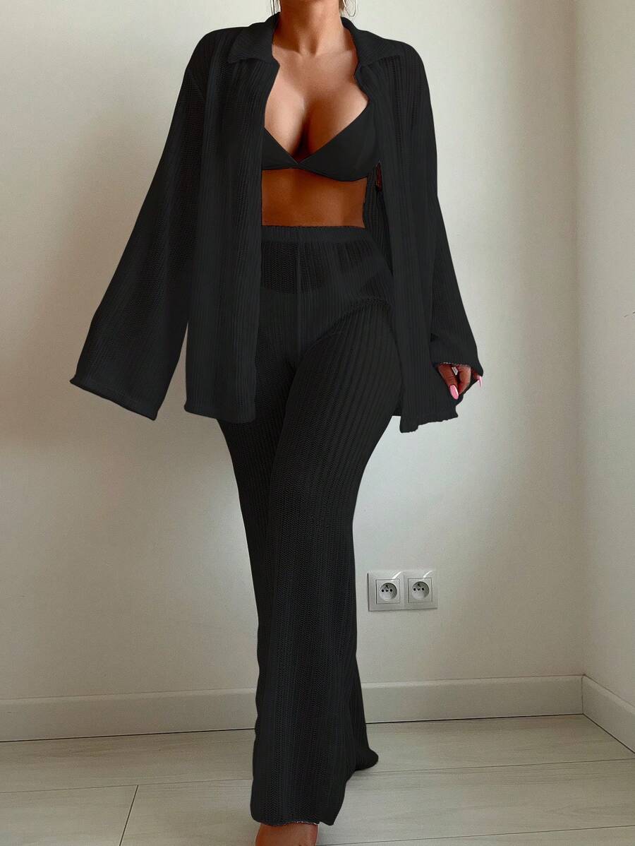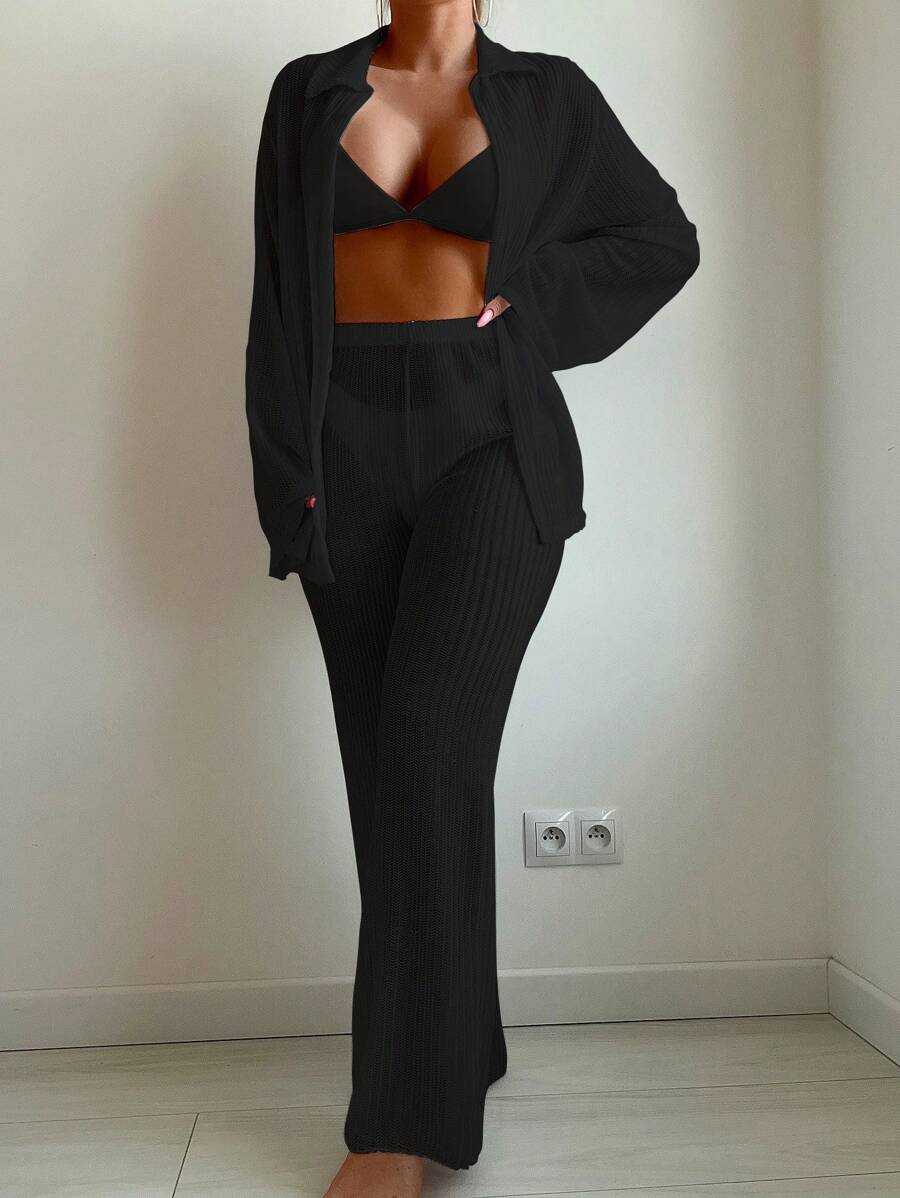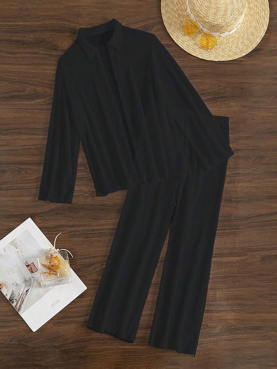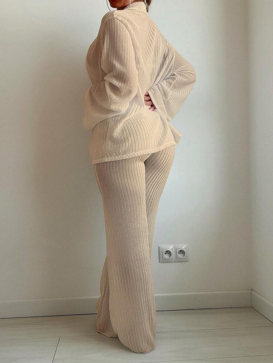2 piezas/set top de manga larga unicolor, conjunto de cubierta de pantalones largos