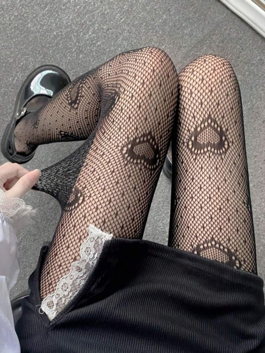 [1par] medias unicas y coloridas con malla de forma de corazon grande hueco para los fashionistas de y2k, medias sexys y lindas