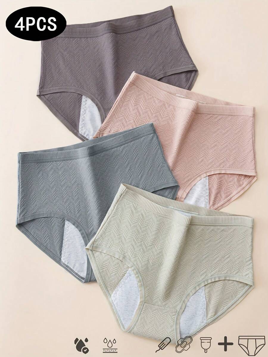 4 piezas pantaletas fisiologicas de mujer con diseno jacquard de triangulo, cintura alta, sin rastro, prevencion de fugas, absorcion de sudor y transpirables