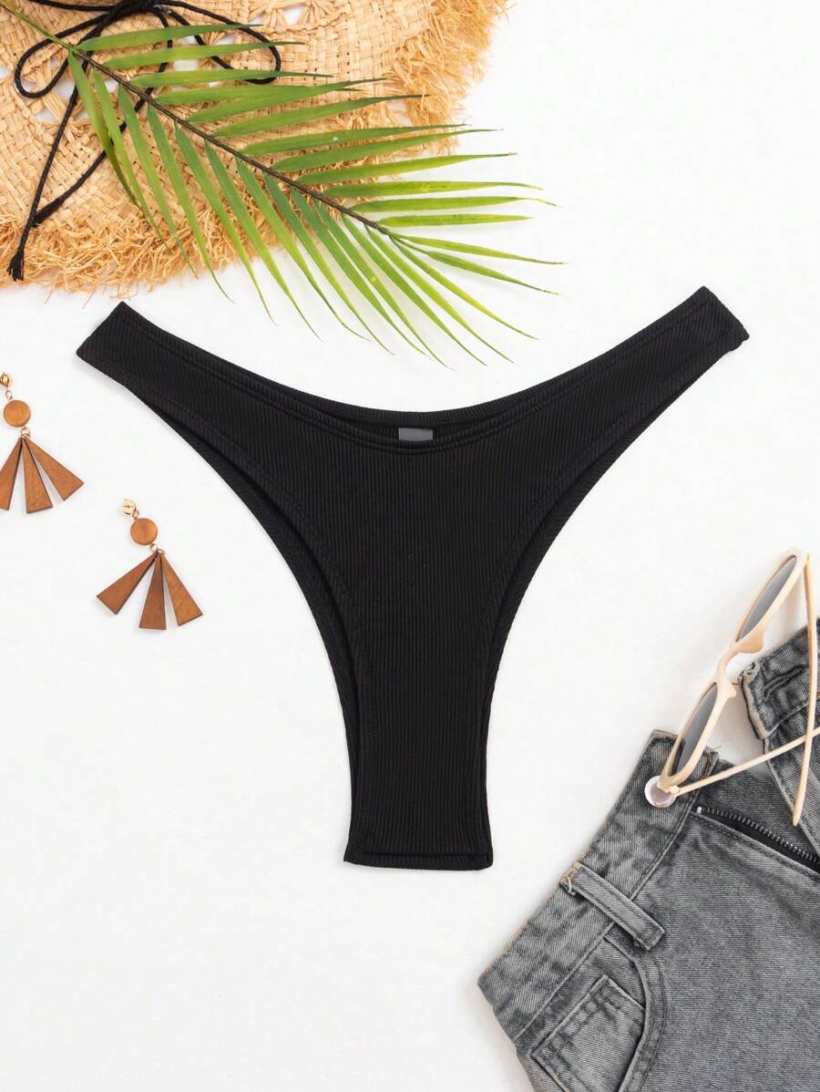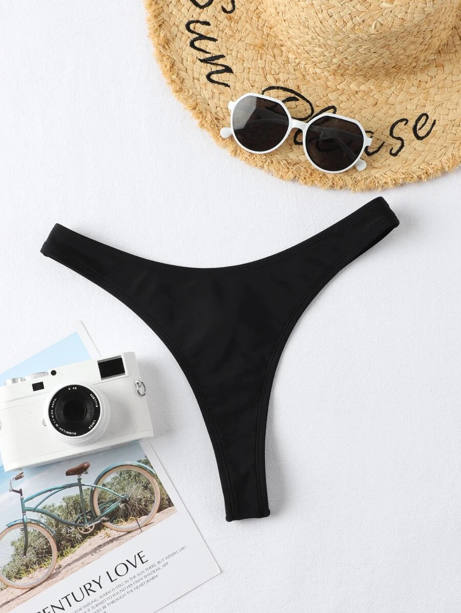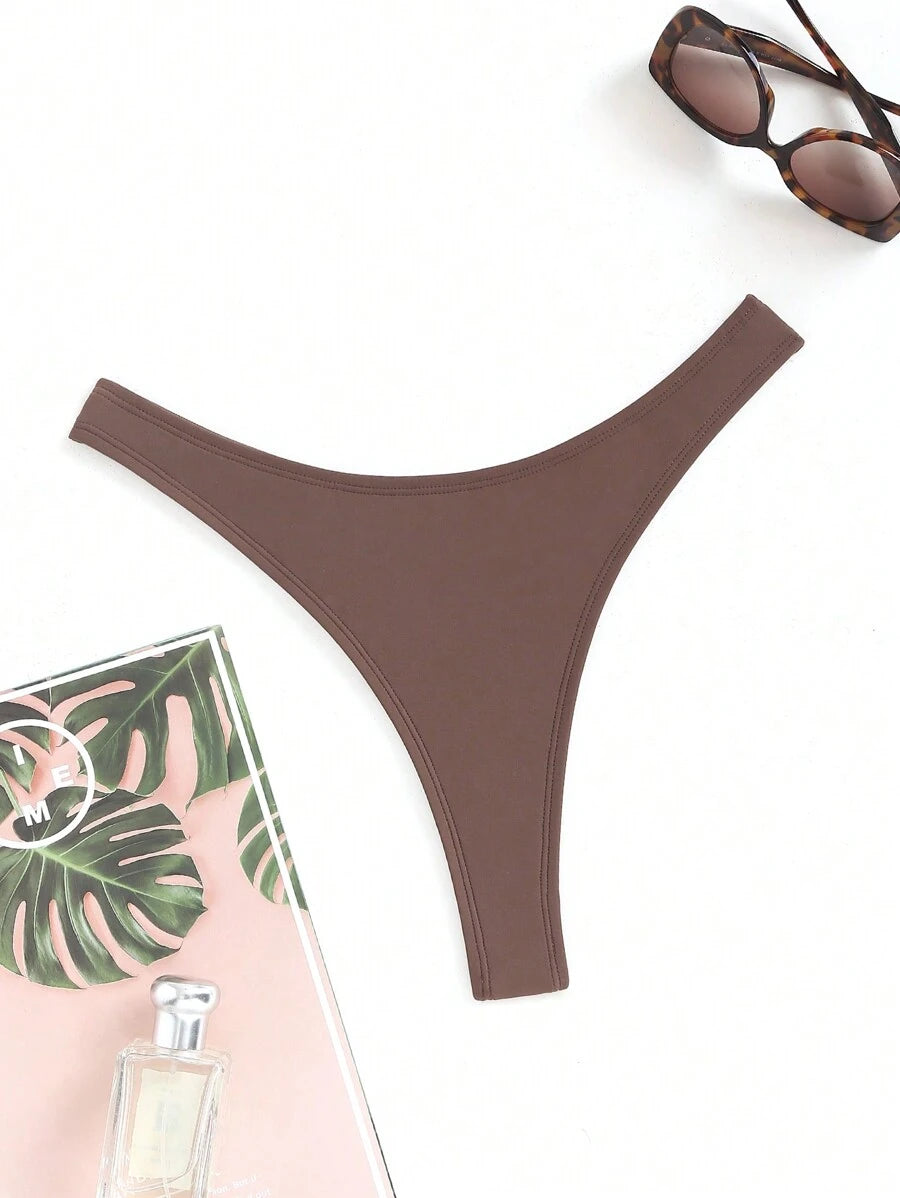 Bottom de bikini de tanga de unicolor para mujer para playa veraniega