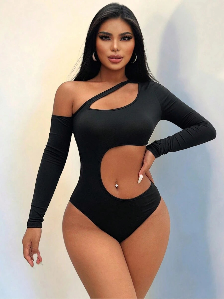Zolique body sexy negro asimetrico con cuello asimetrico y hueco