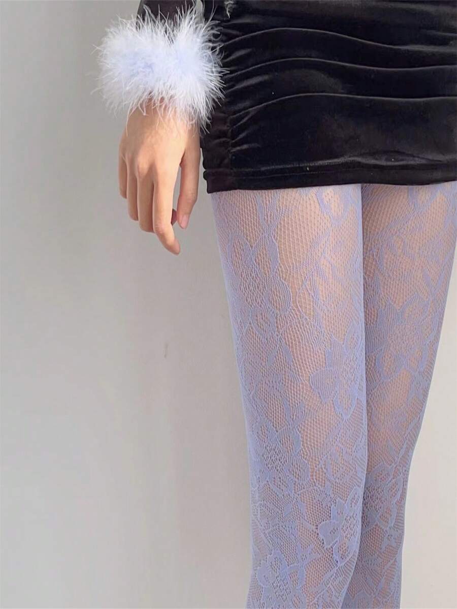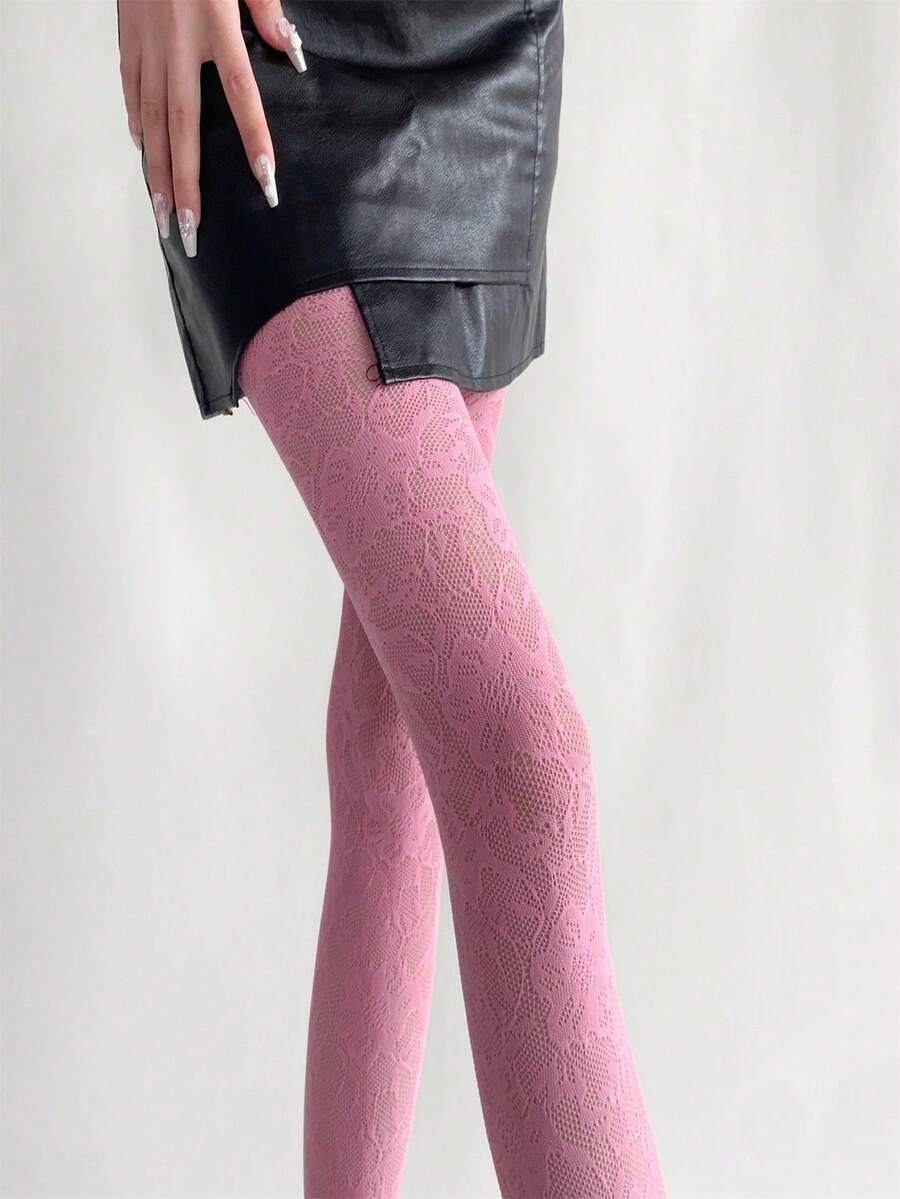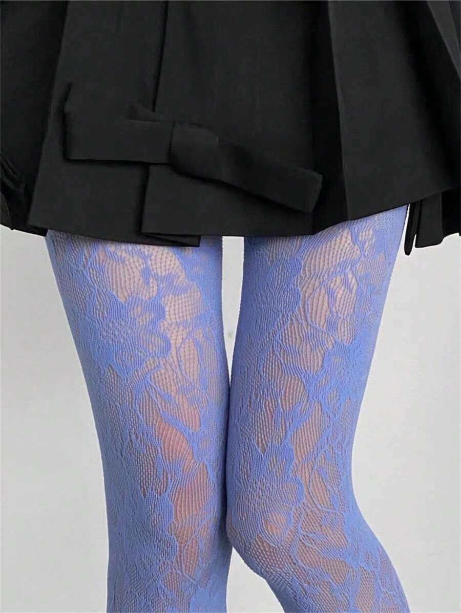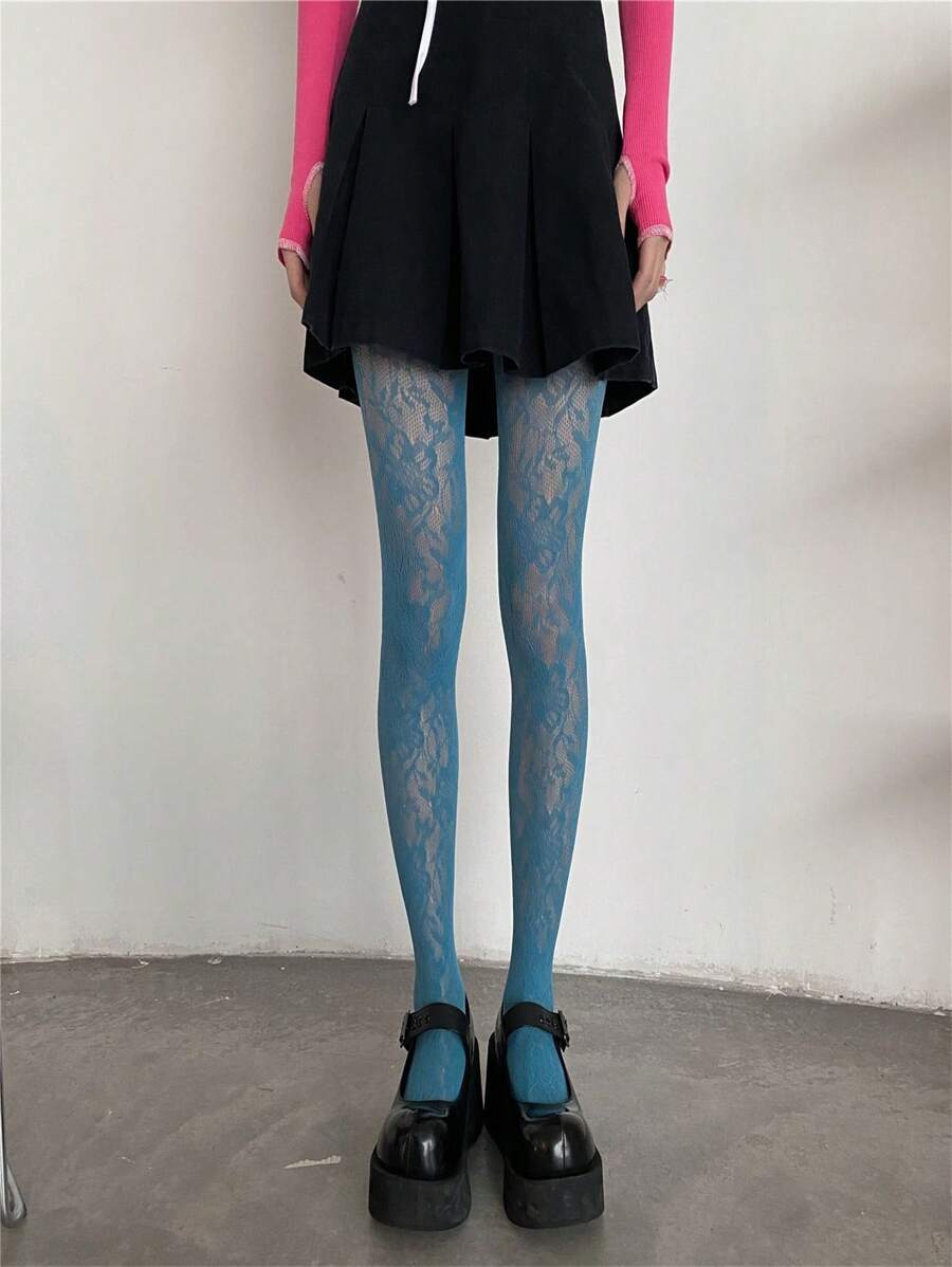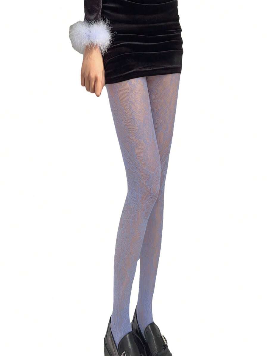 Medias de red coloridas para mujeres / ninas con patron floral en la parte inferior, red de malla jacquard hueca, estilo dulce y fresco