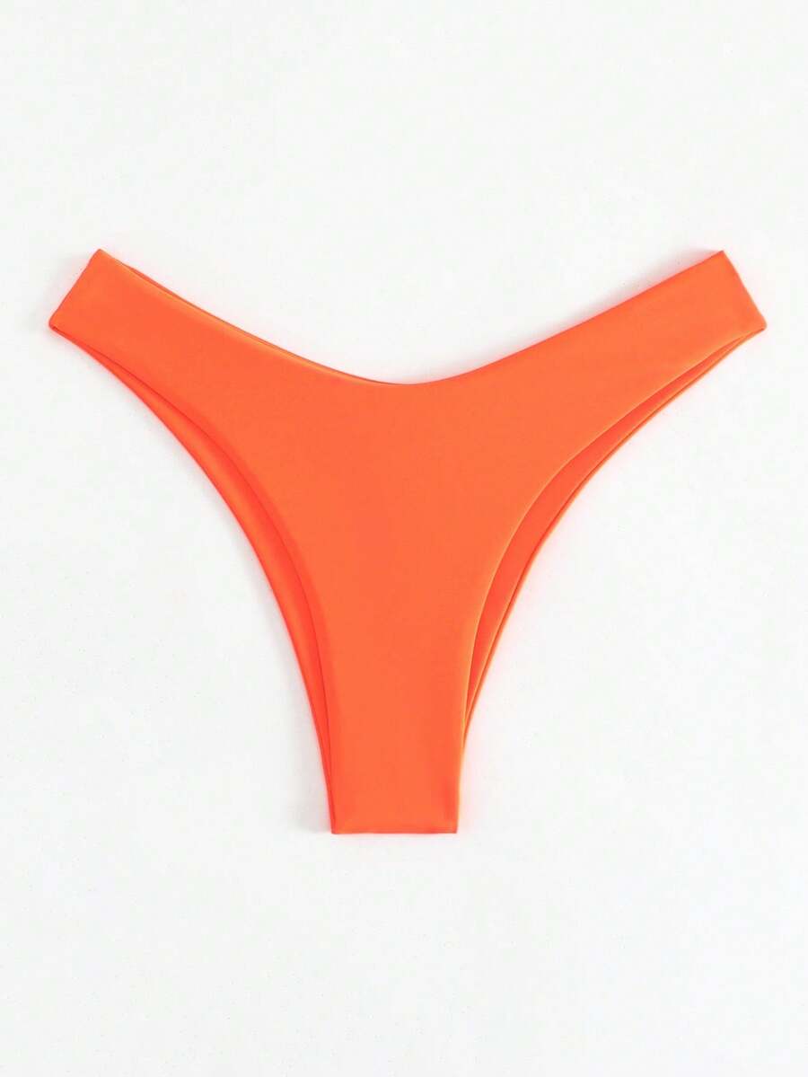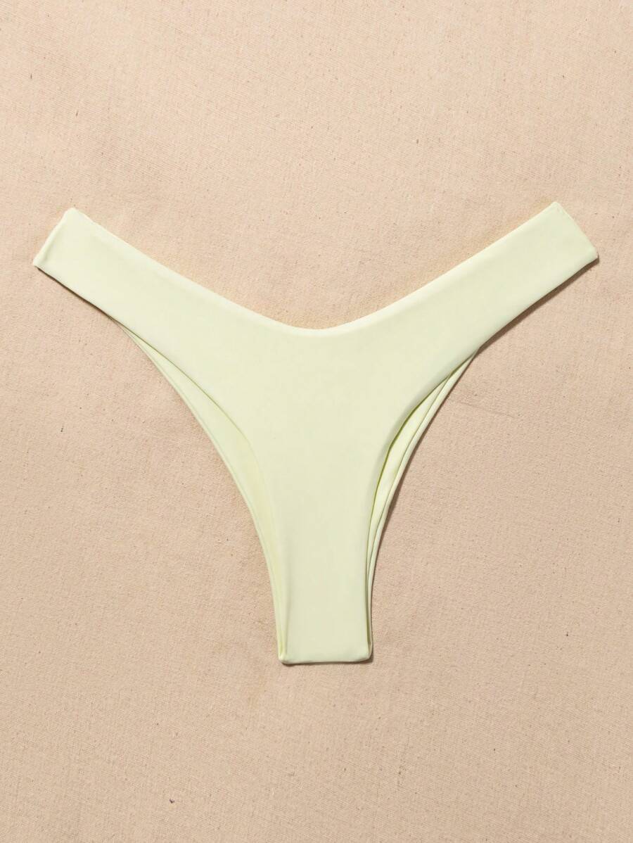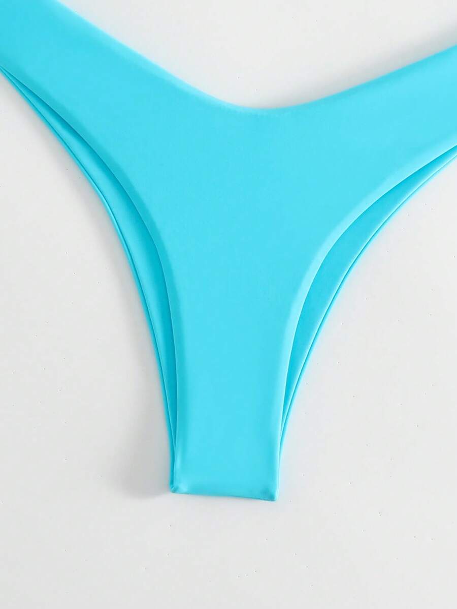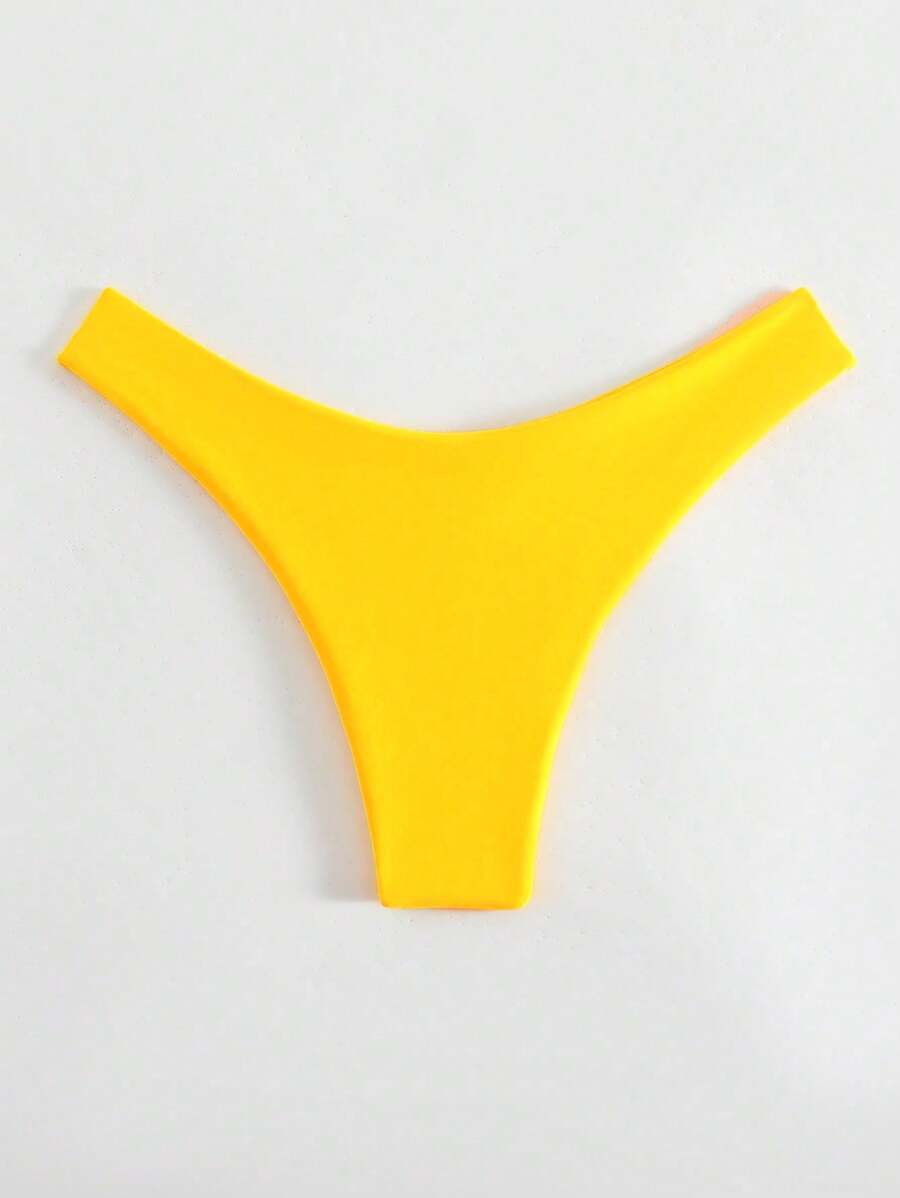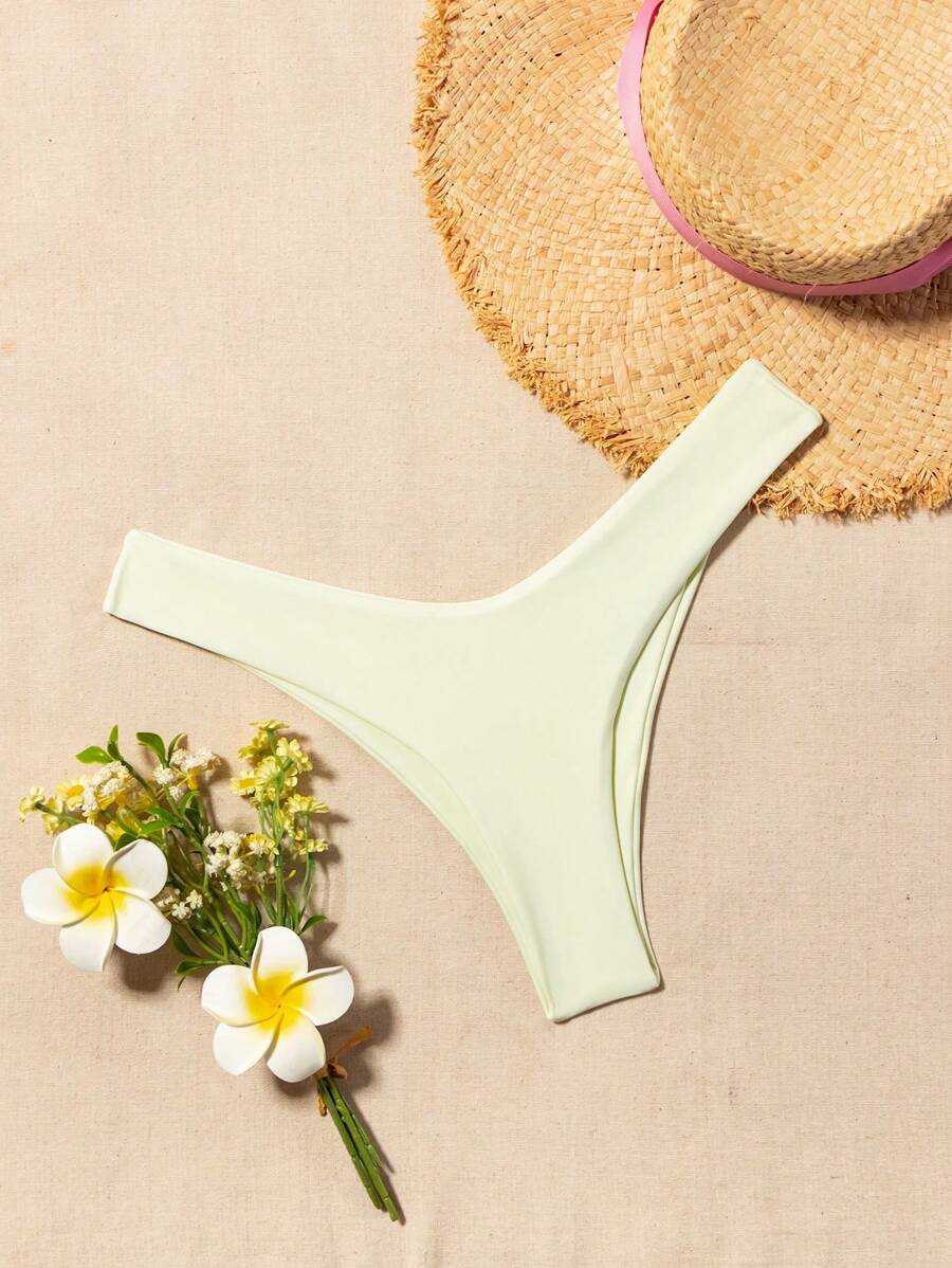 Mujeres fondo de bikini solido de corte alto simple para vacaciones de verano en la playa