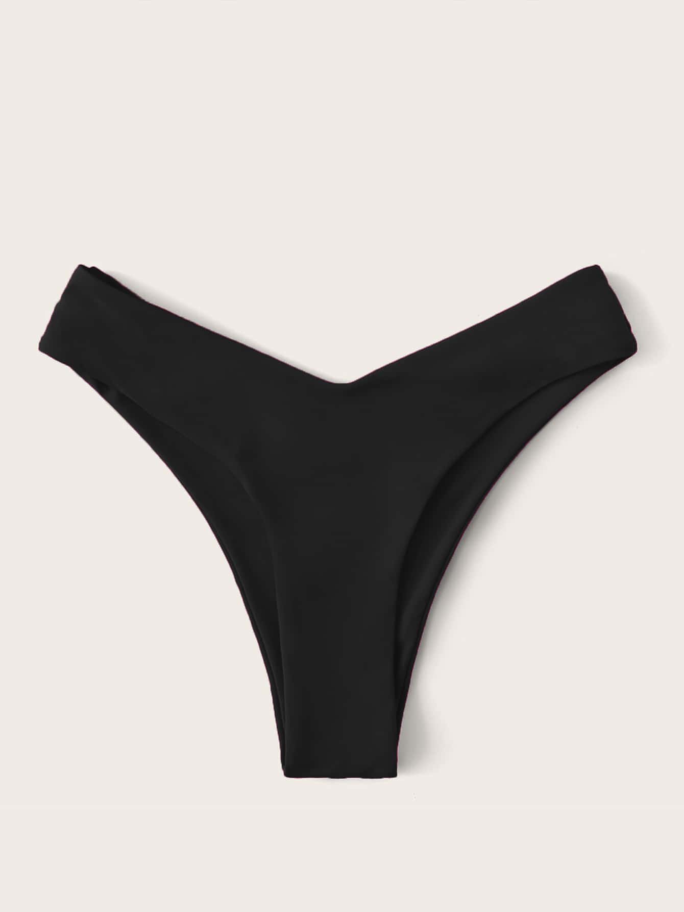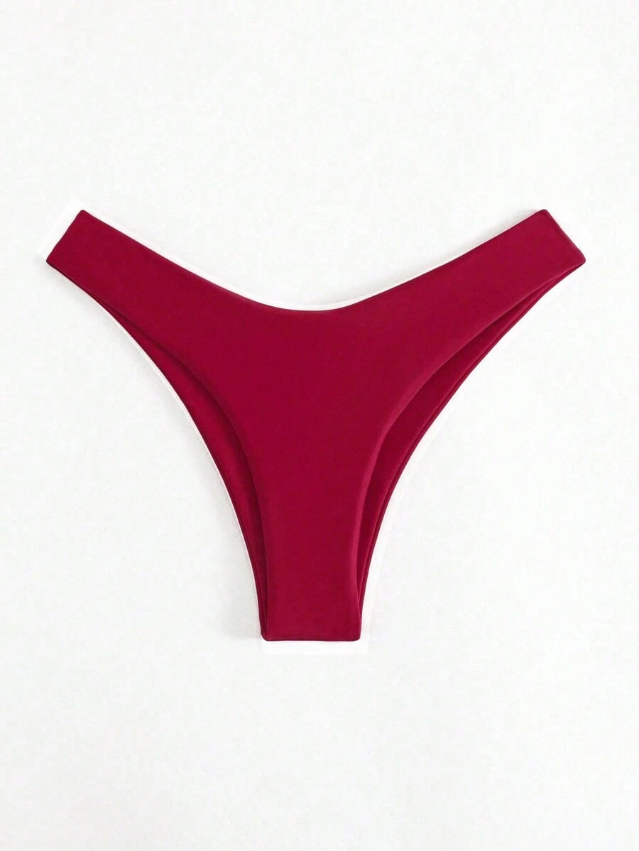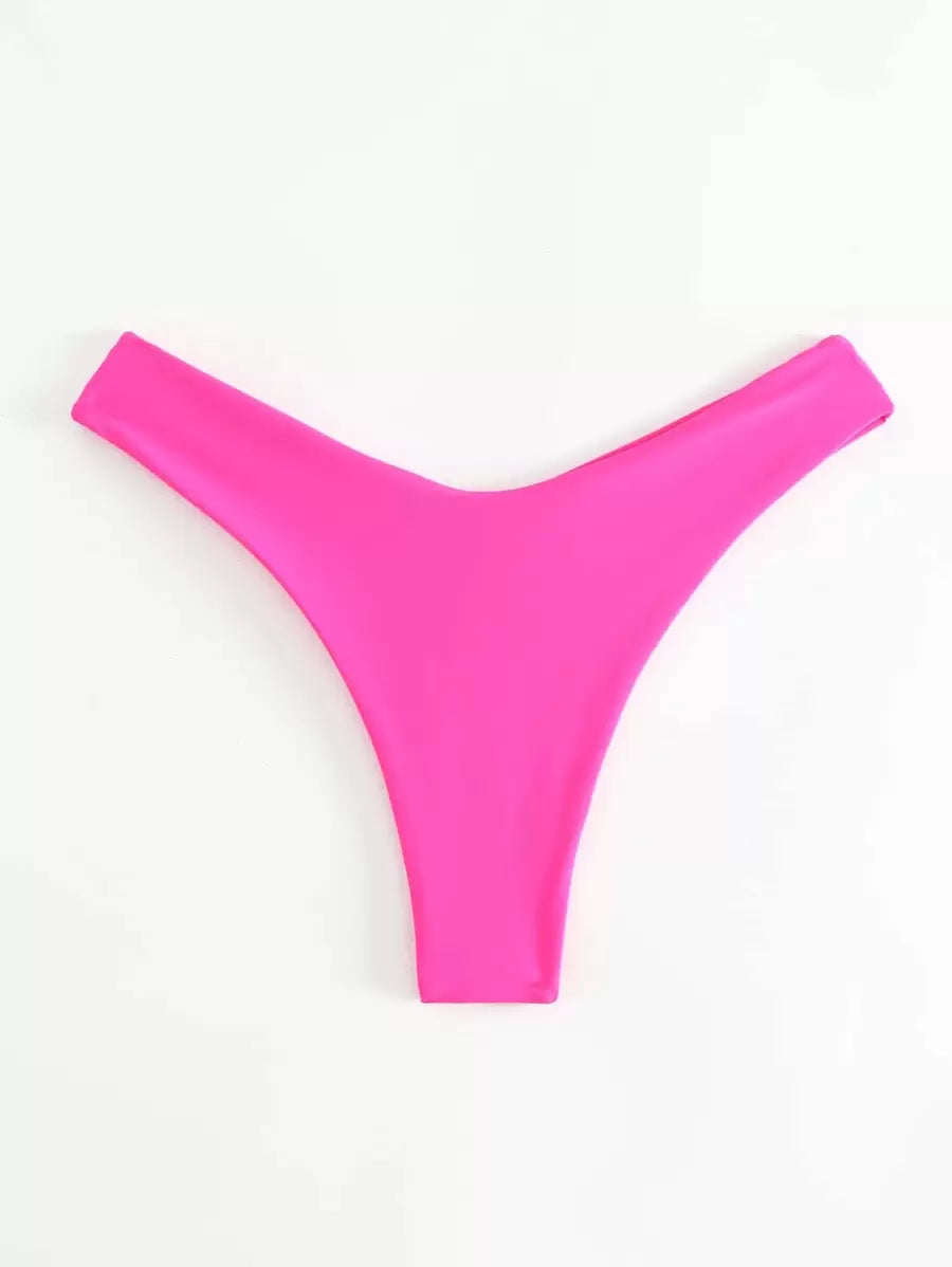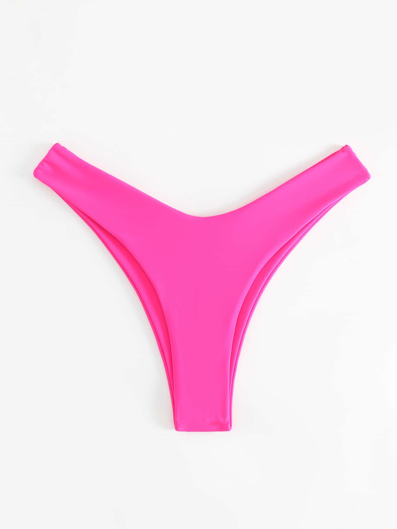 Mujeres fondo de bikini solido de corte alto simple para vacaciones de verano en la playa