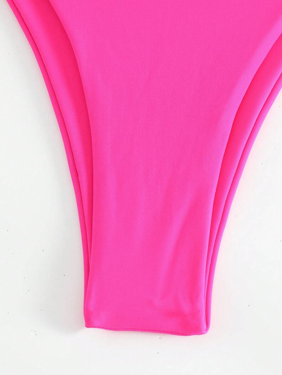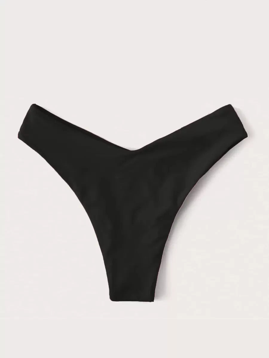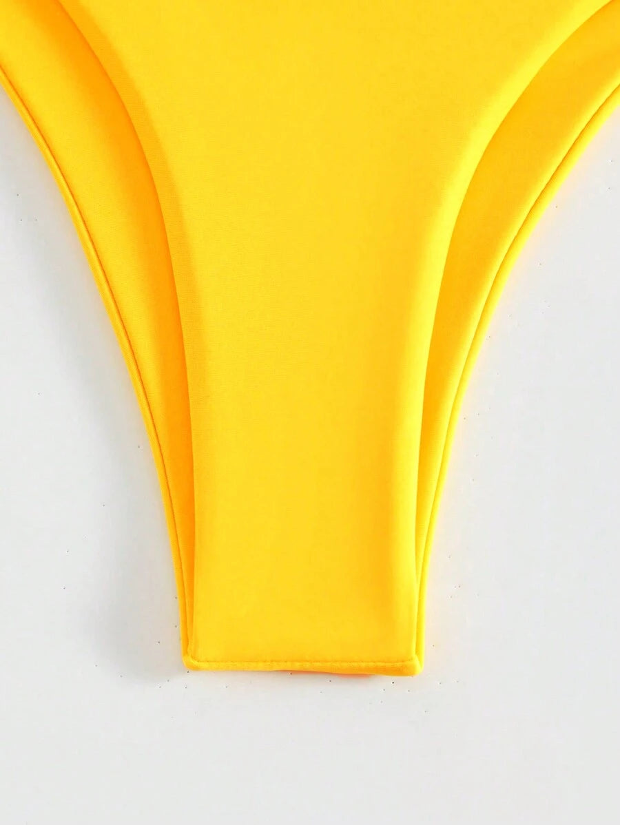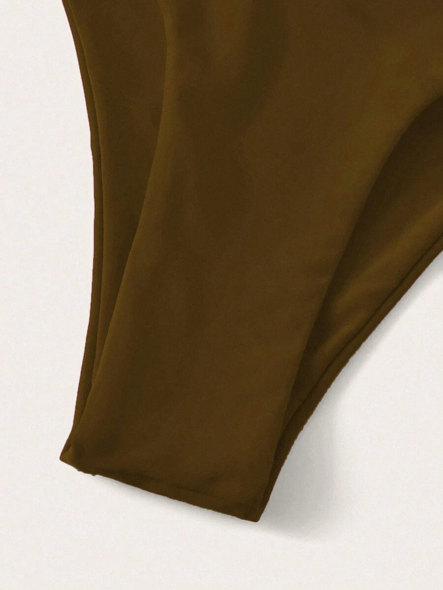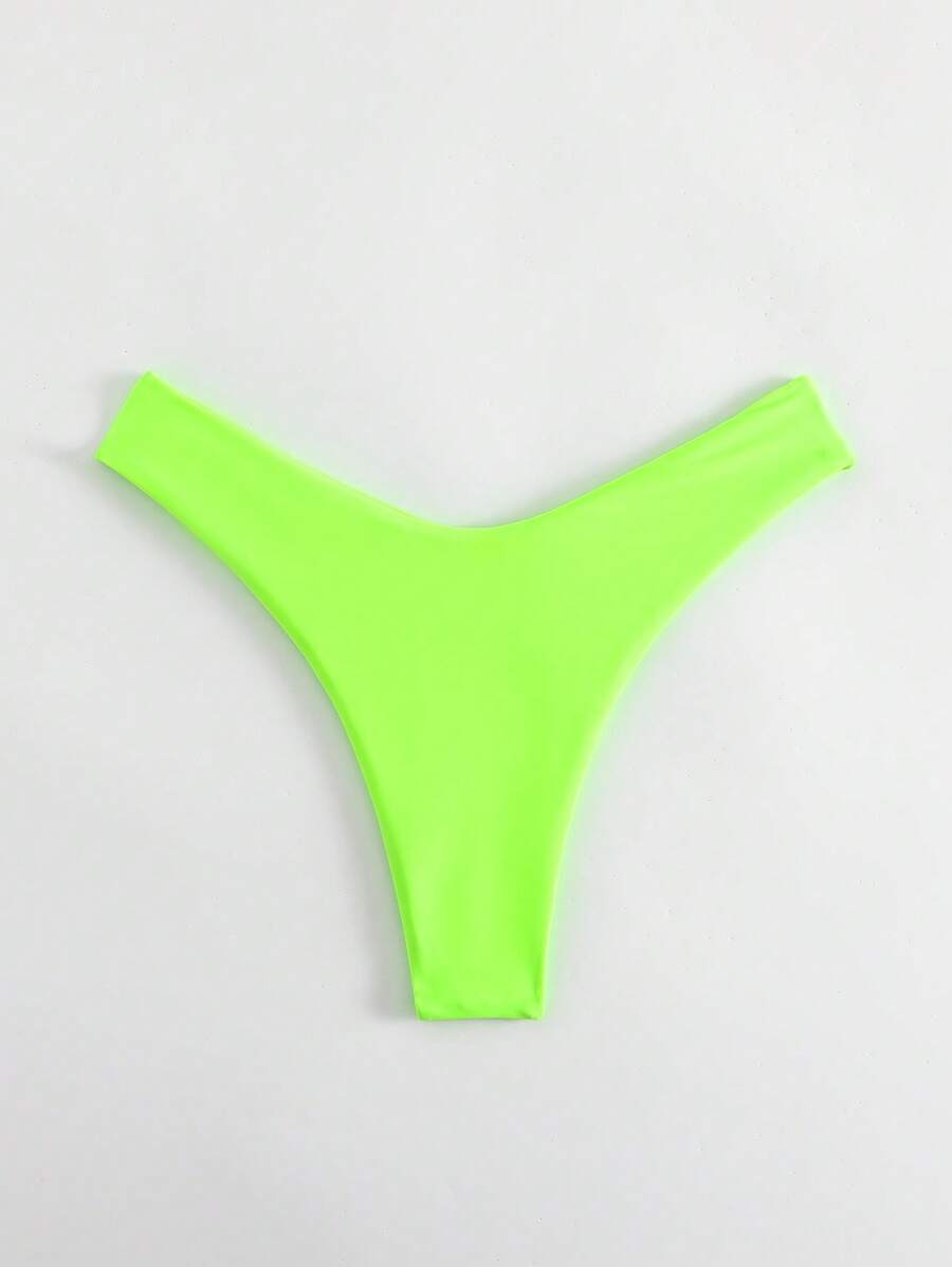 Mujeres fondo de bikini solido de corte alto simple para vacaciones de verano en la playa