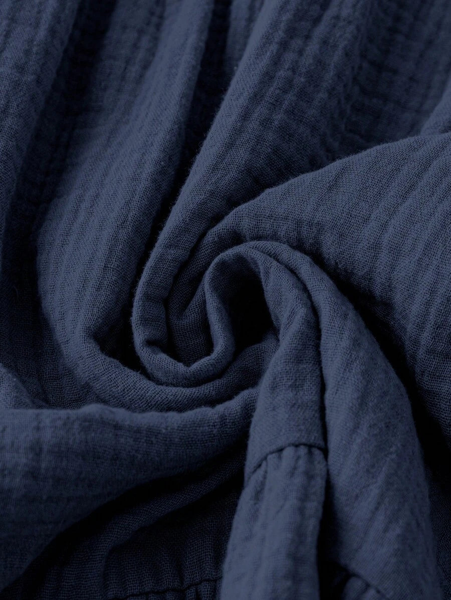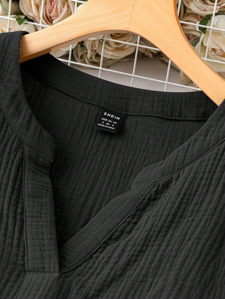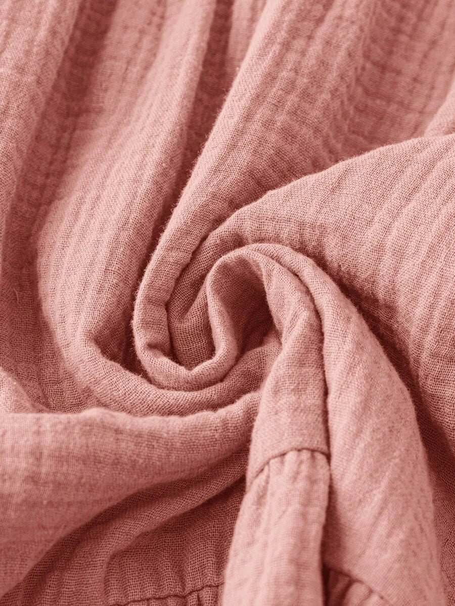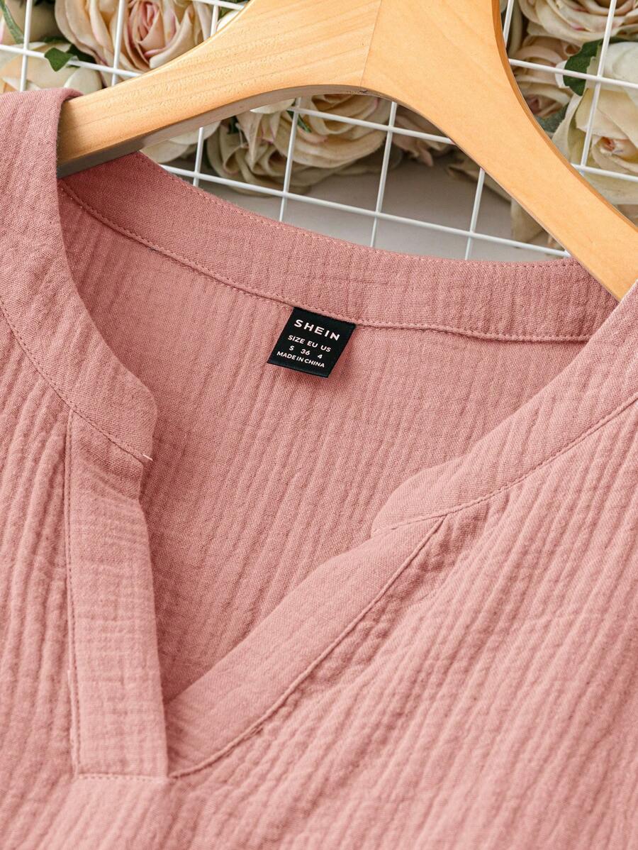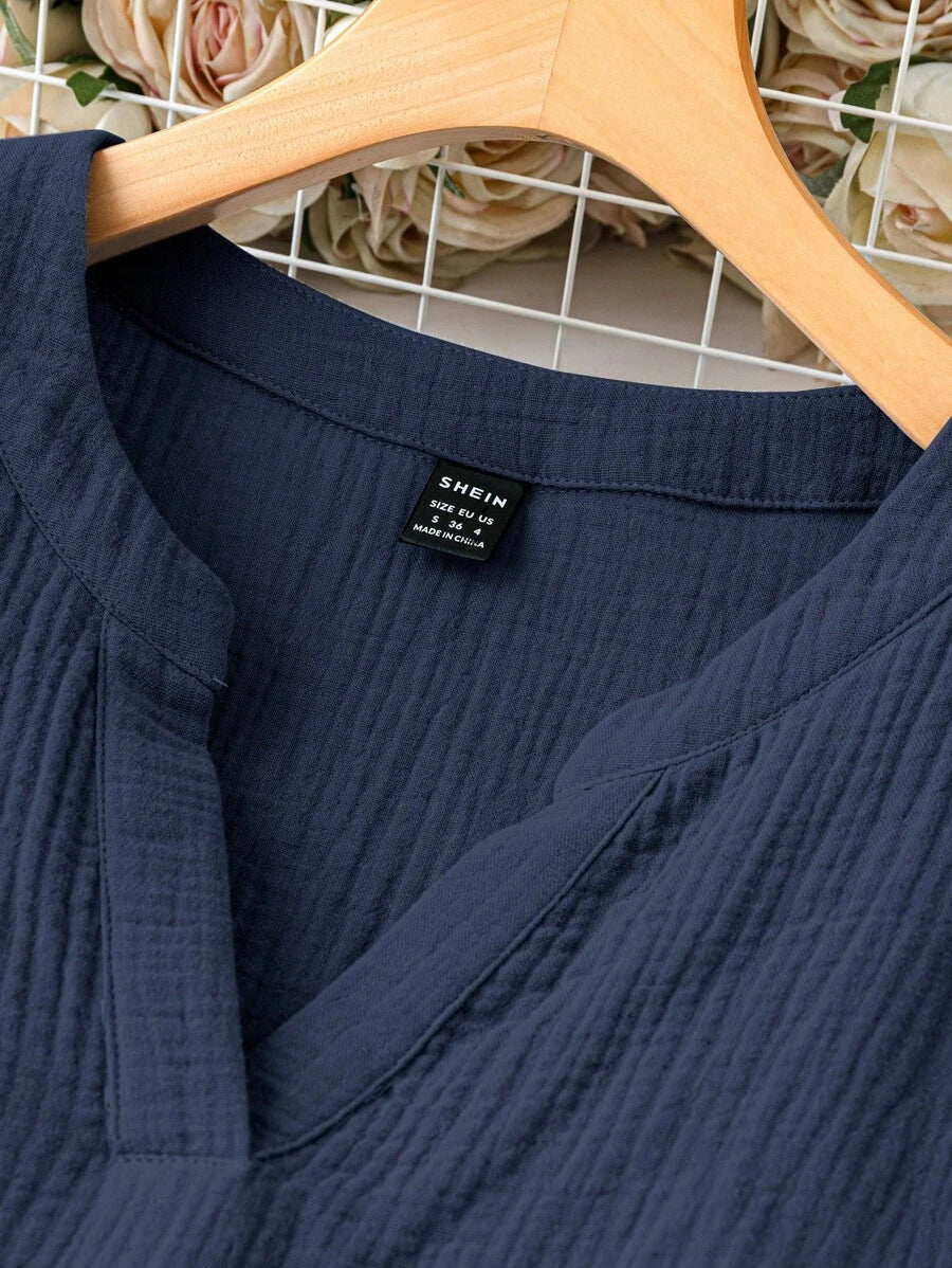 Vestido de muneca de bebe de manga corta y ala de murcielago con volantes, escote de pico con muescas y unicolor para mujer en verano