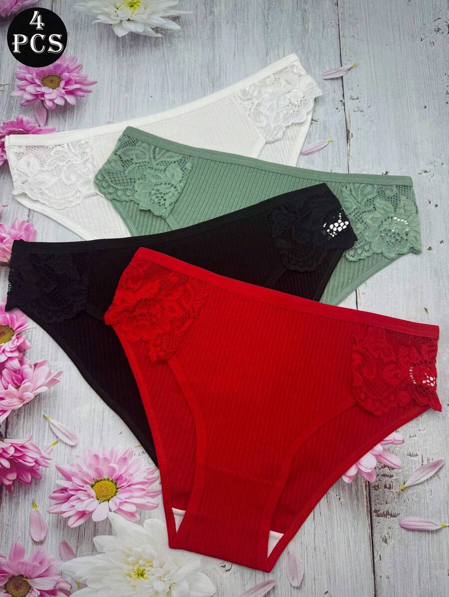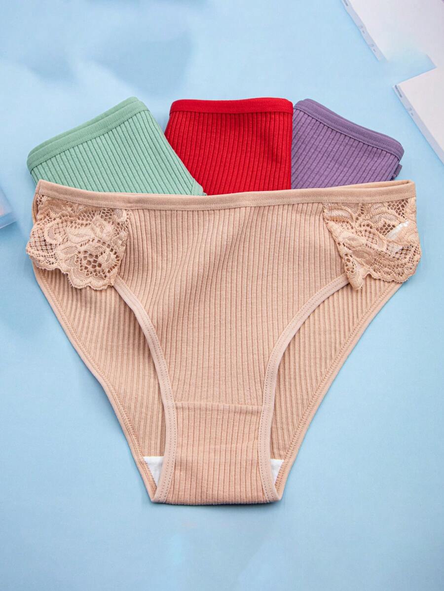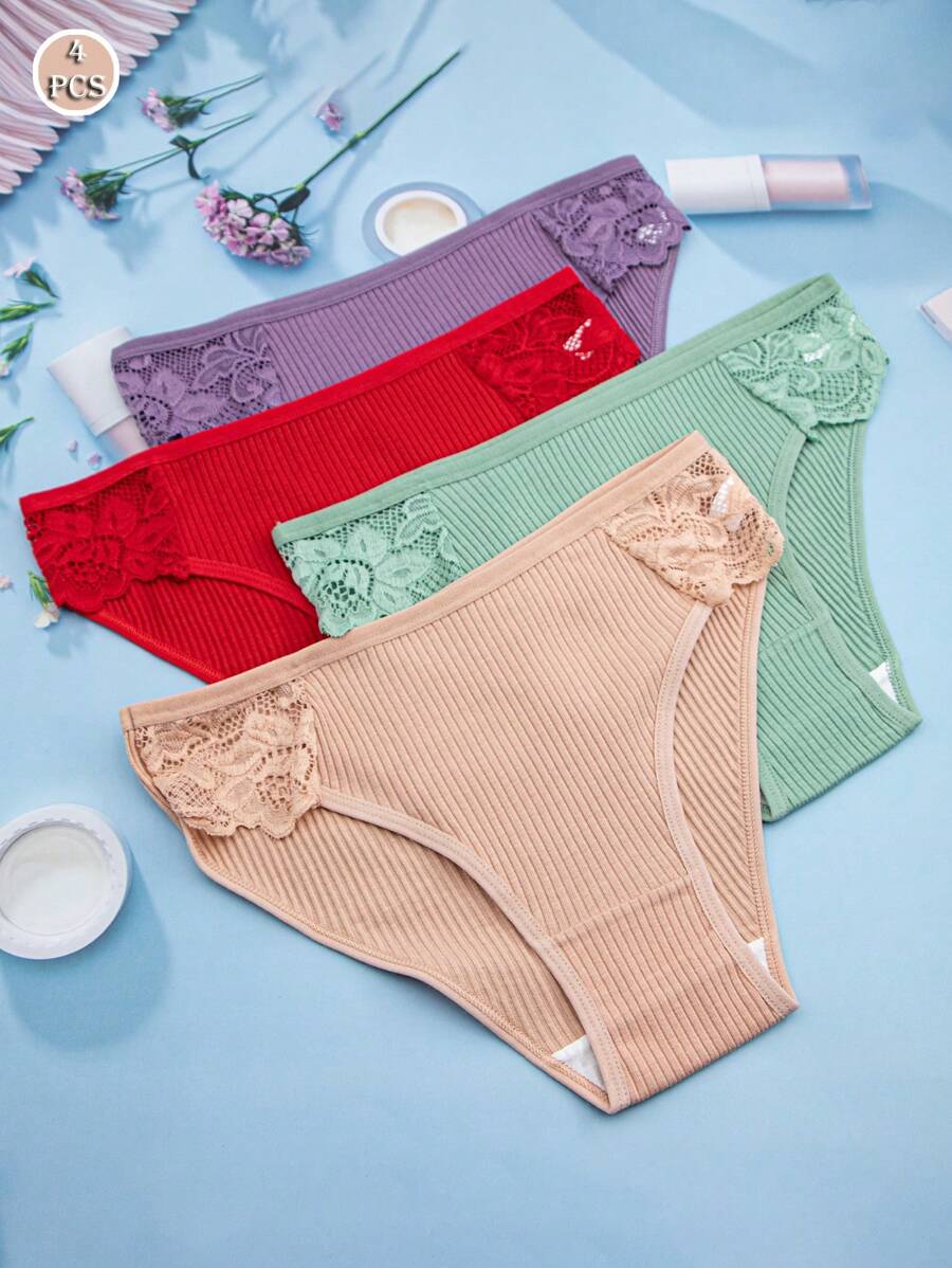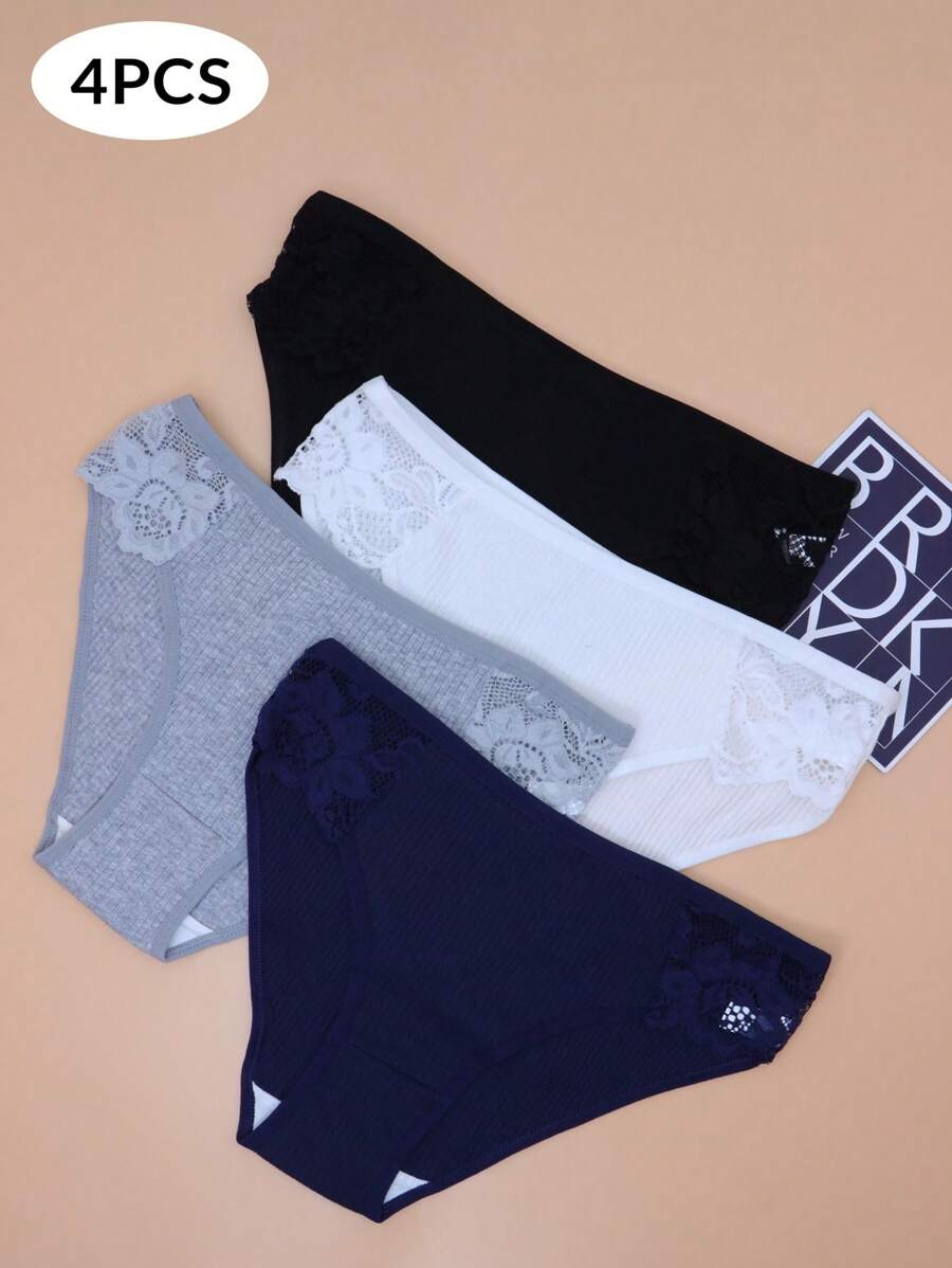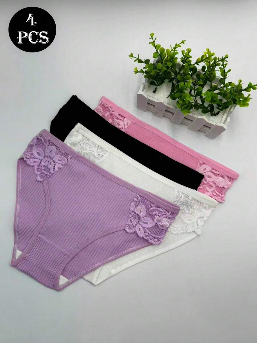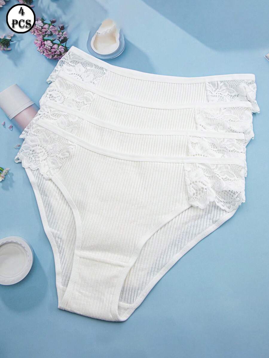 4 piezas bragas transpirables de algodon puro con ribete de encaje