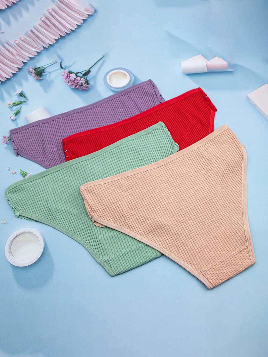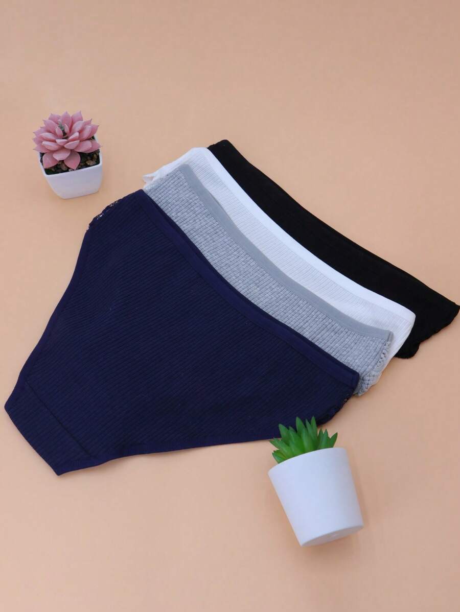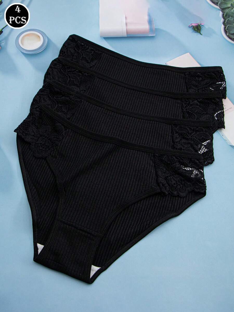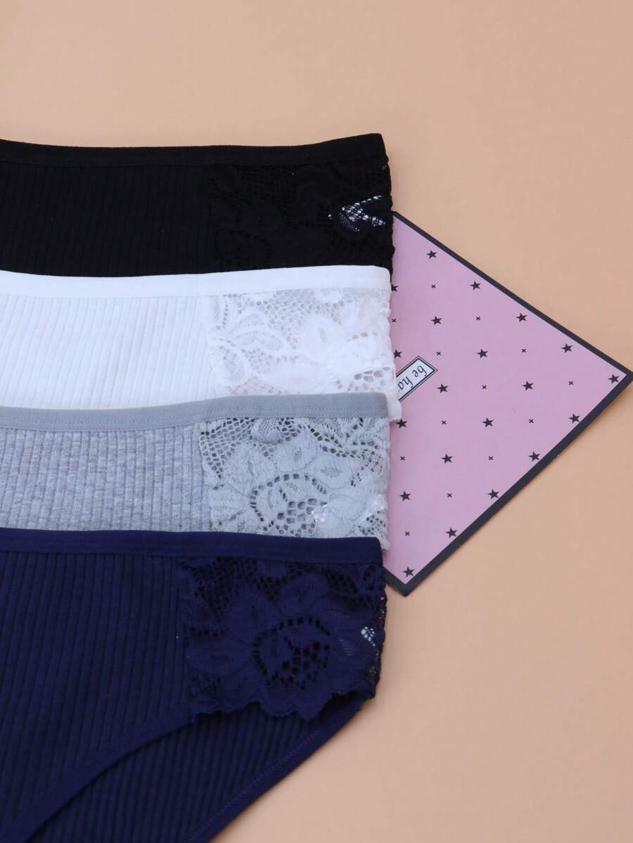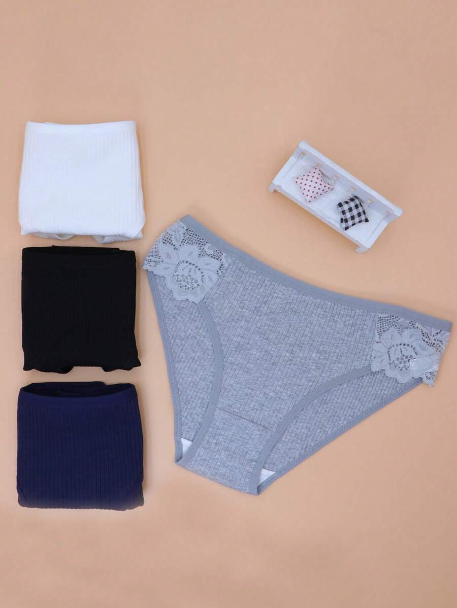 4 piezas bragas transpirables de algodon puro con ribete de encaje