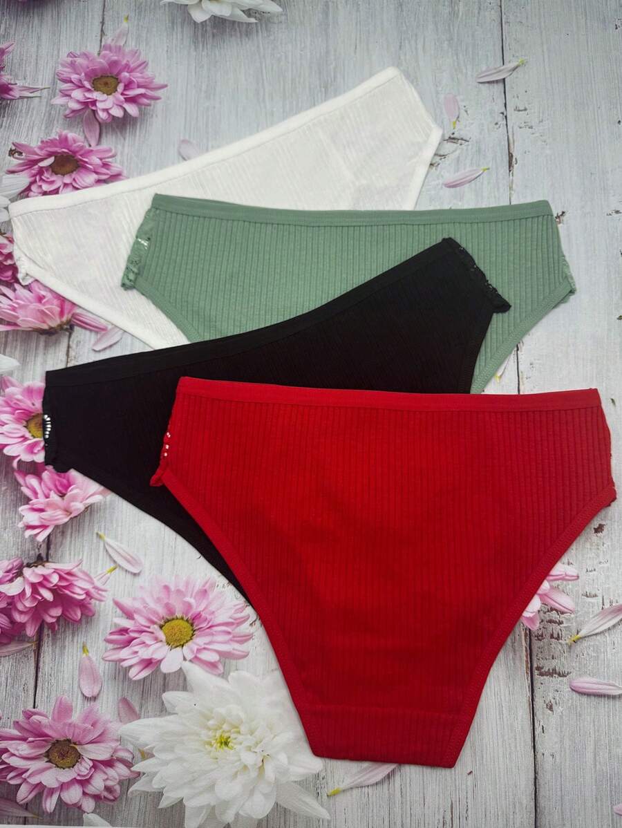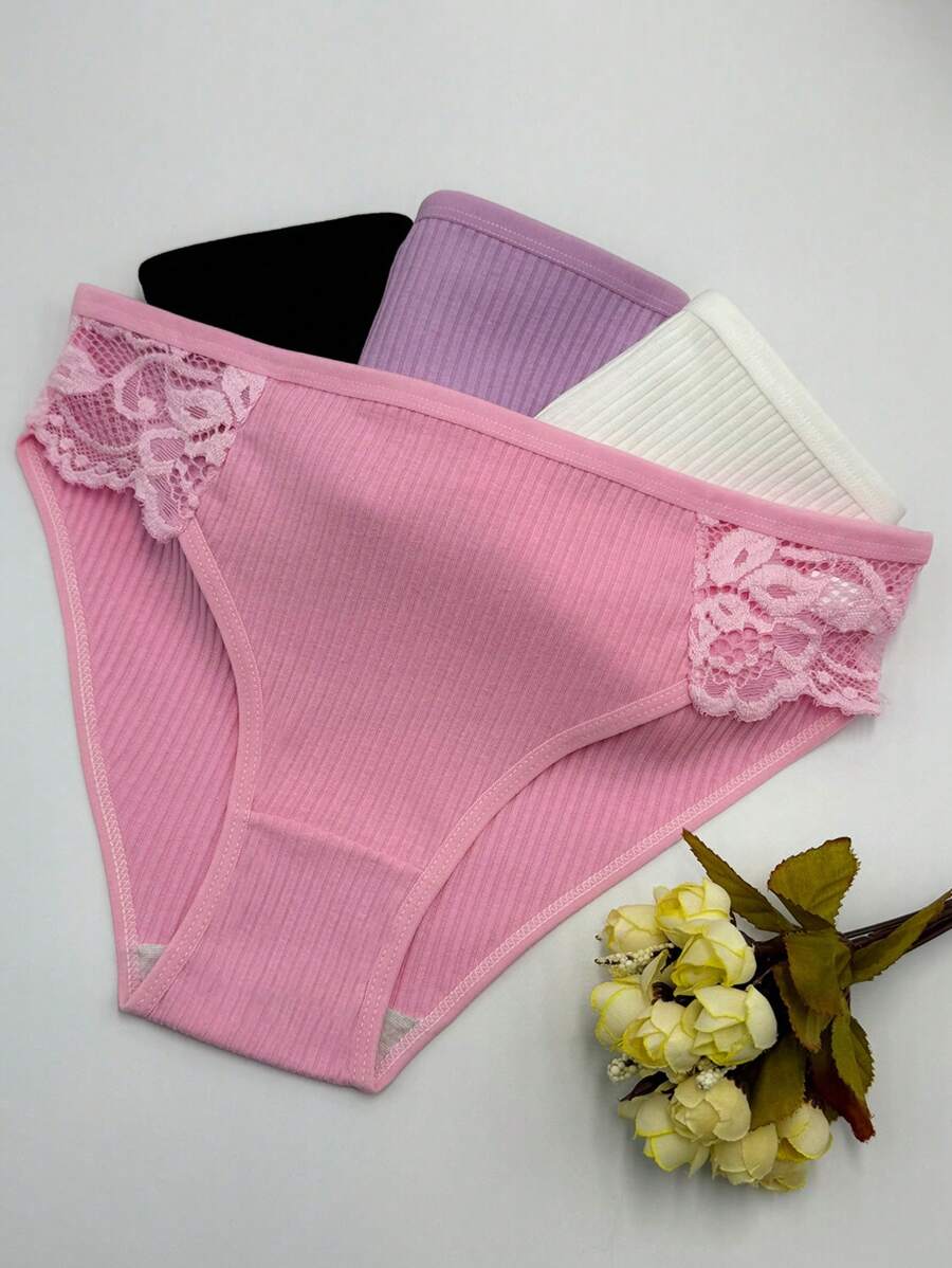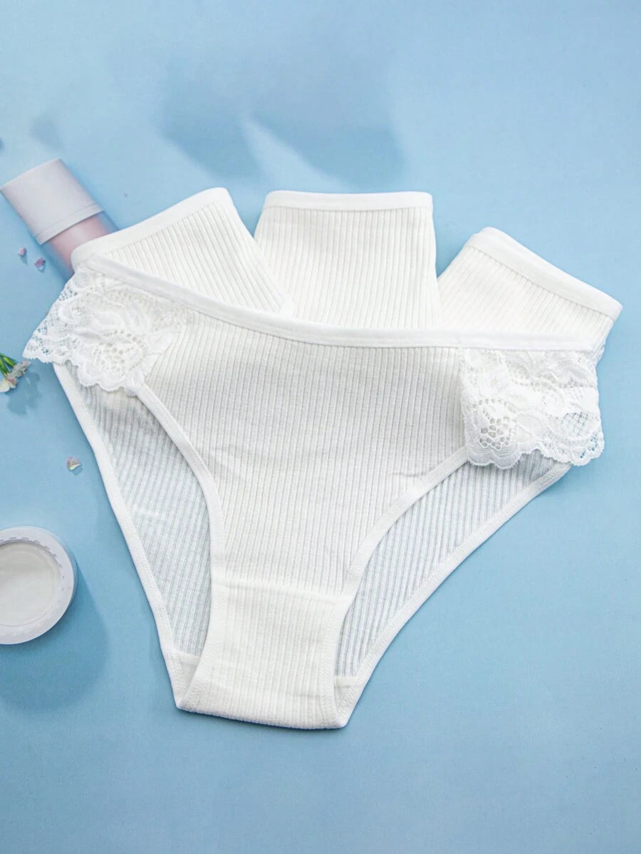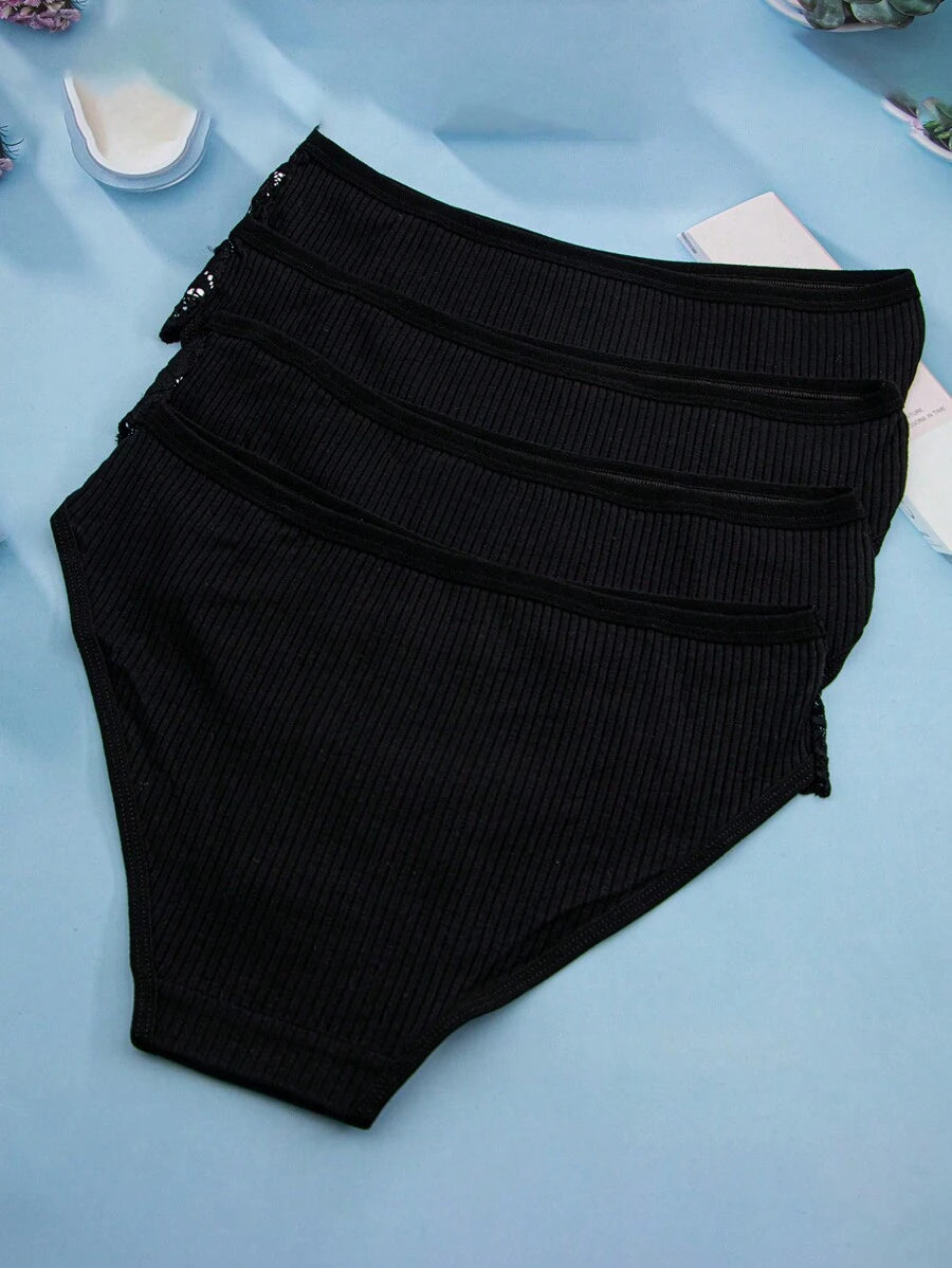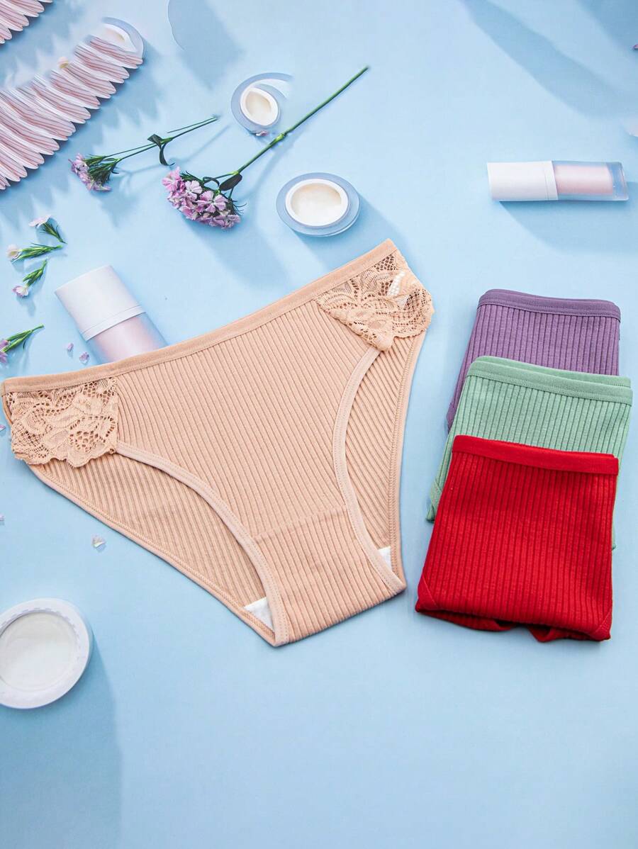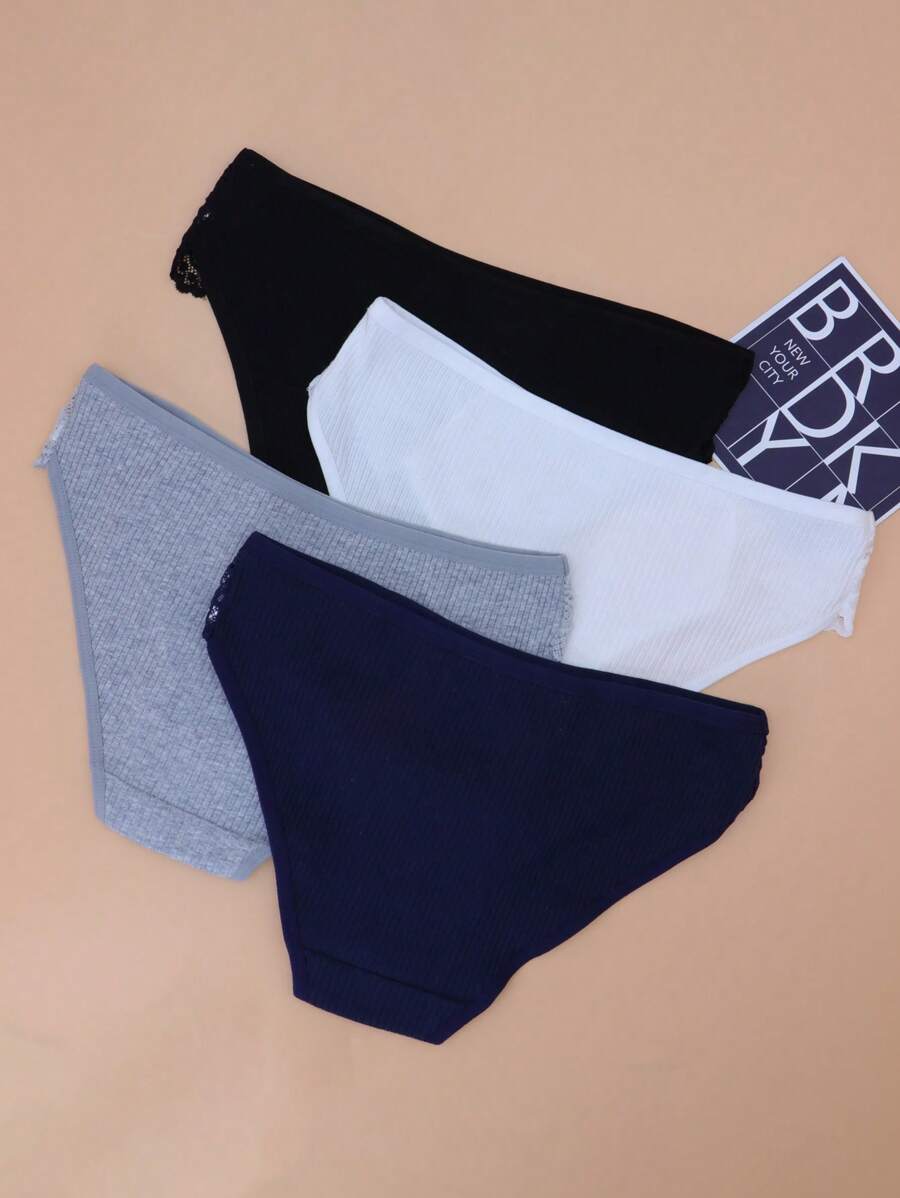 4 piezas bragas transpirables de algodon puro con ribete de encaje